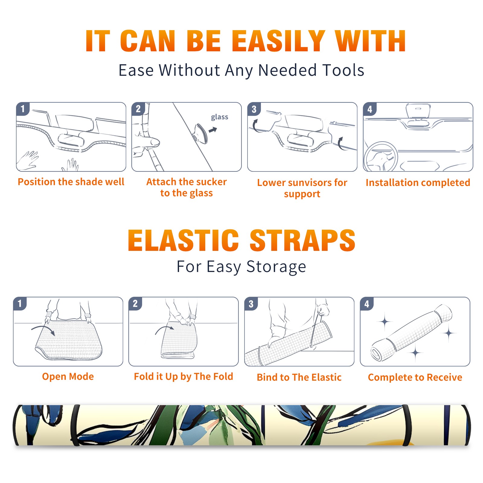 • </b>ZXIVGOQFR Foldable Premium Car Windshield Sunshade is your great solution to reduce your car’s interior temperature dramatically! This is definitely a must-have item for your summer travel! </b> <br> </b>Size: 63"L x 33.5"W </b> <br> </b>Blocking Uv Rays & Heat Insulation</b><br> Our vehicle sunshade provides effective UV, sun, and summer heat protection .Maintains dashboards by preventing fading and cracking <br> </b>Easy-To-Store Folding Design Makes Storage Convenient </b><br> ZXIVGOQFR car sunshades come with removable suction cups and elastic bands that you can install easily and quickly, and the removable suction cups will not leave any marks on your windows when removed. Within seconds, windshield visor can be installed and removed. When not in use,the front windshield can be easily and effectively placed on the door pocket or the dashboard, which is beautiful and does not take up space in the car.<br> <br> </b>PUT UP A 'PROTECTIVE UMBRELLA' FOR YOUR BELOVED CAR!</b>