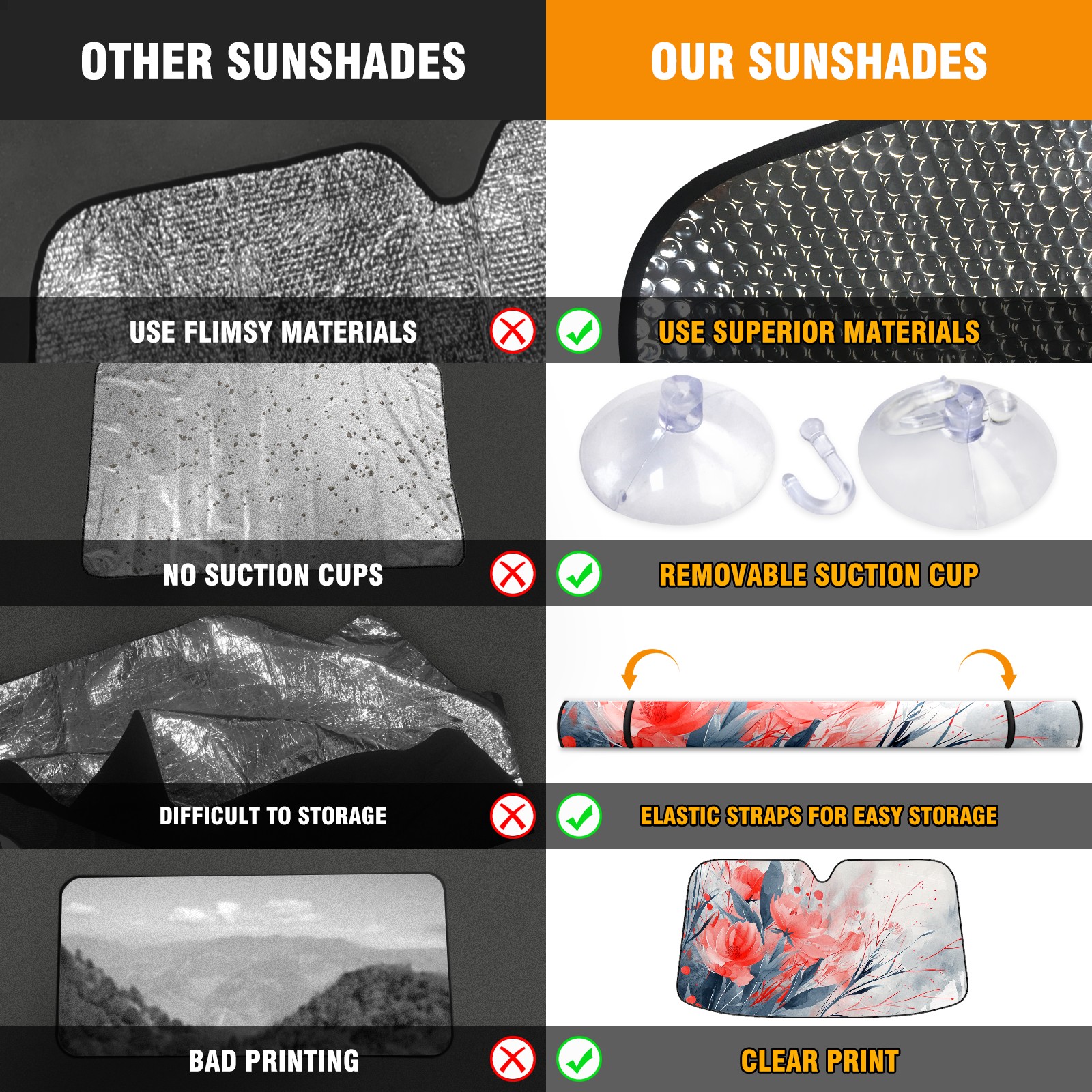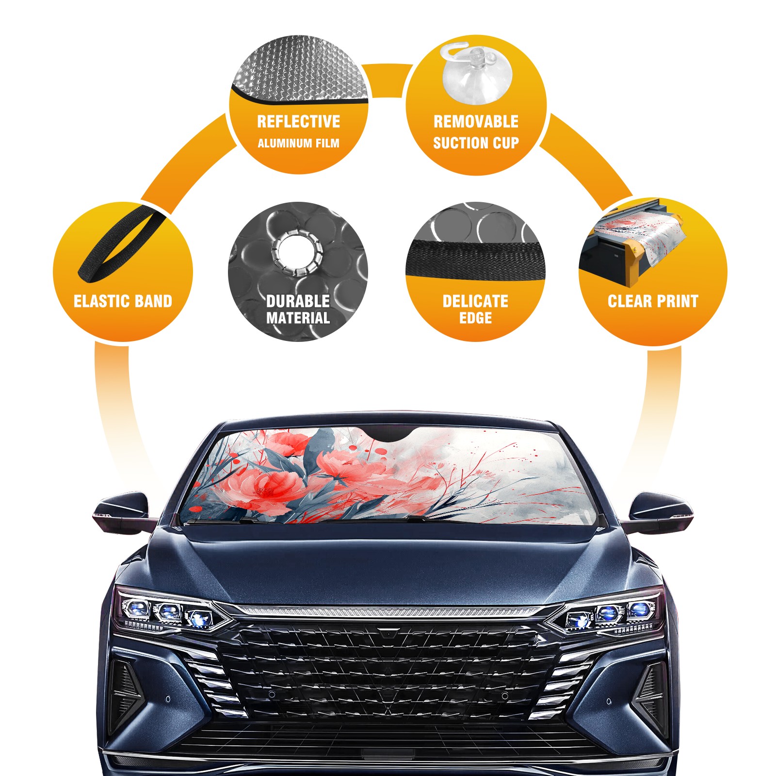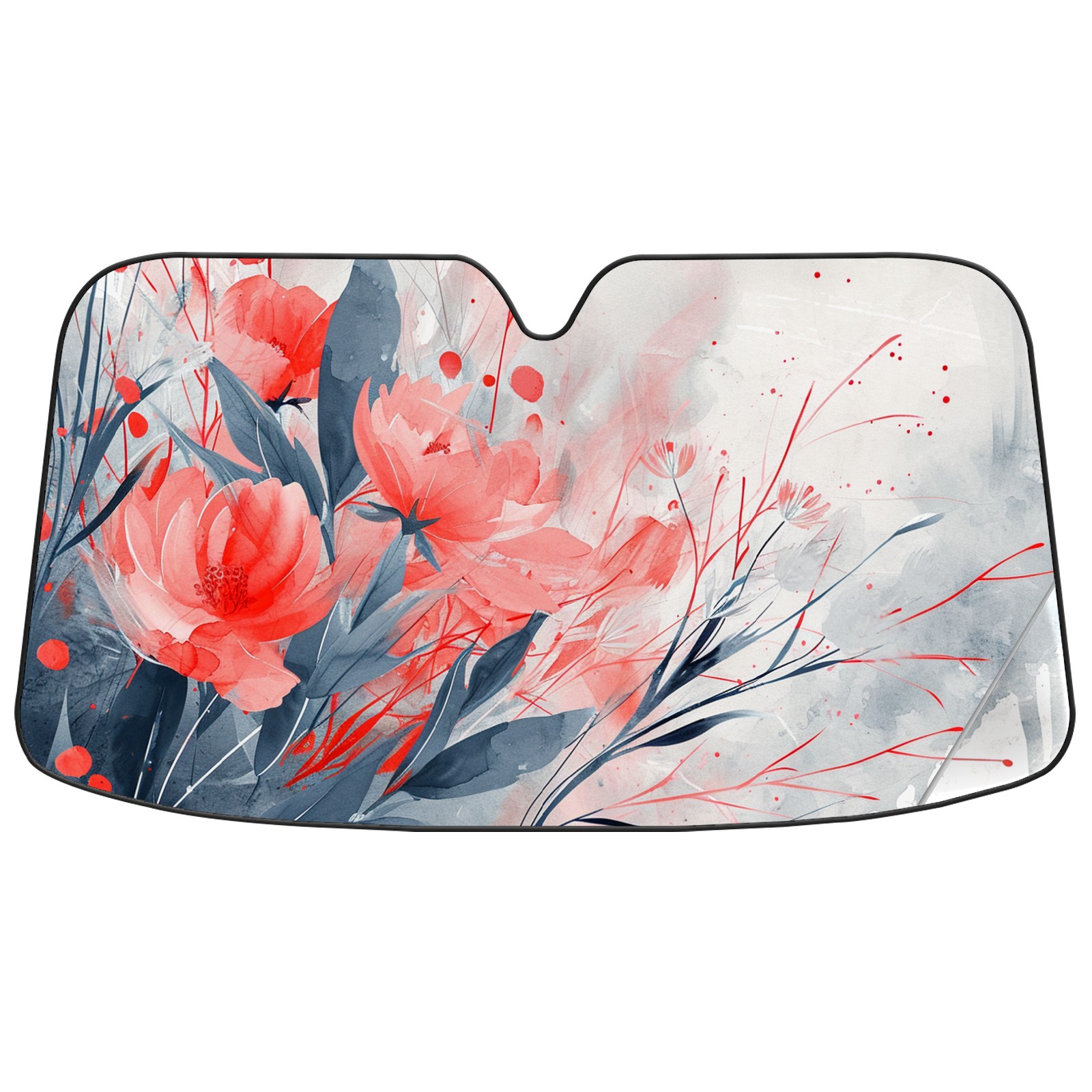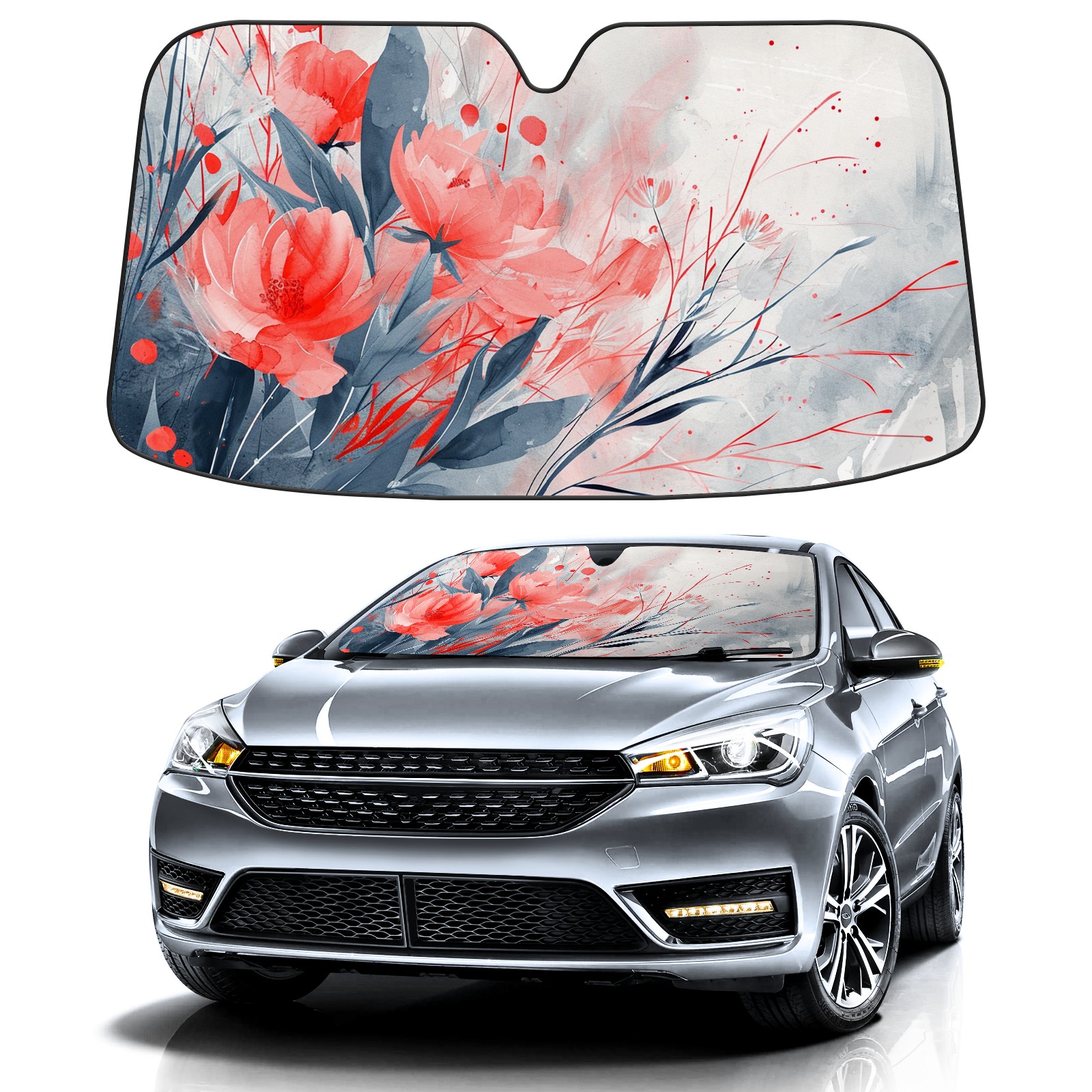 Car Windshield Sun Shade for Front Window Floral Bouquet 3 Foldable Vehicle Windshield Car Sun Visor Covers Automotive Window Protector Car Privacy Sun Blocker