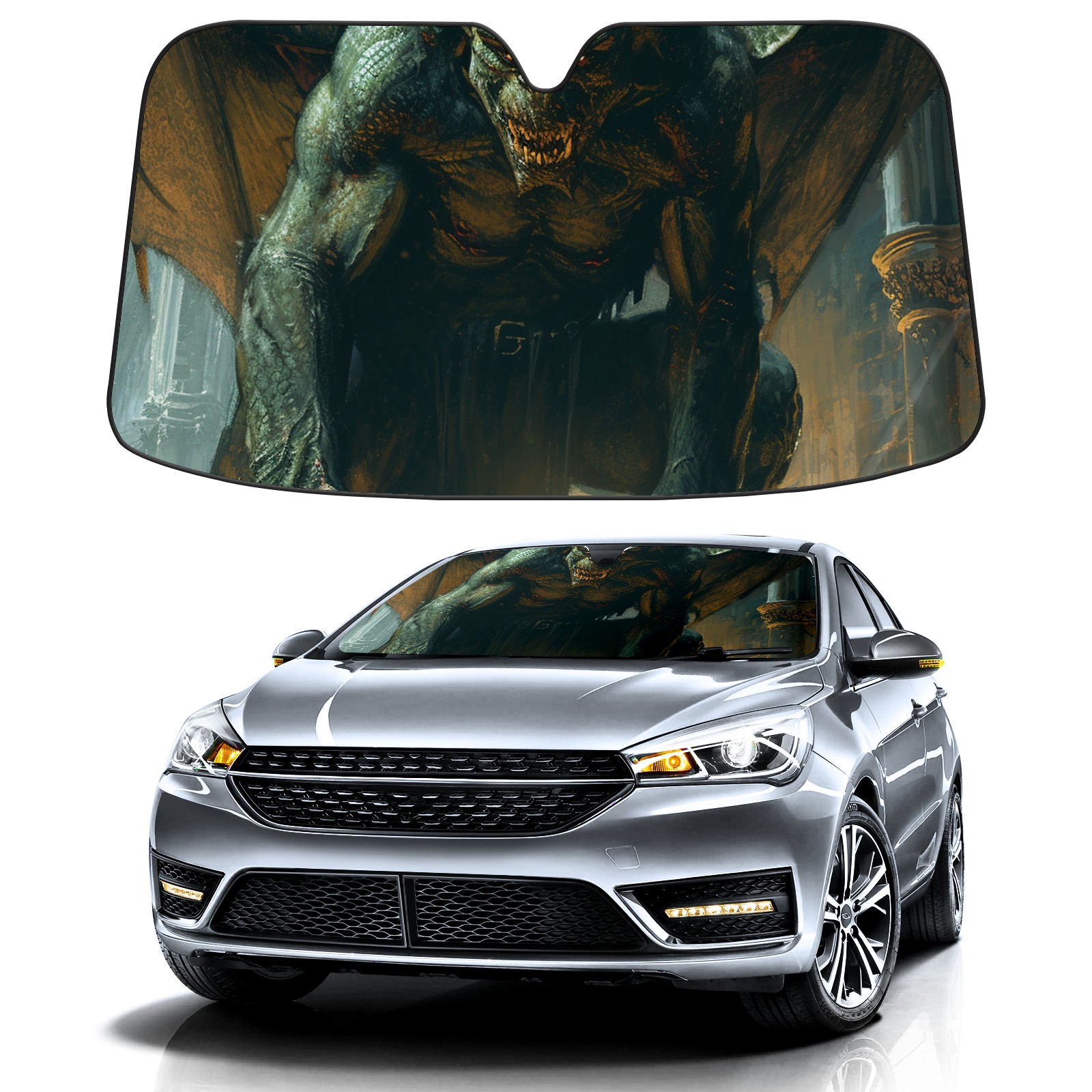 Car Windshield Sun Shade for Front Window Crypt Gargoyle 4 Foldable Vehicle Windshield Car Sun Visor Covers Automotive Window Protector Car Privacy Sun Blocker