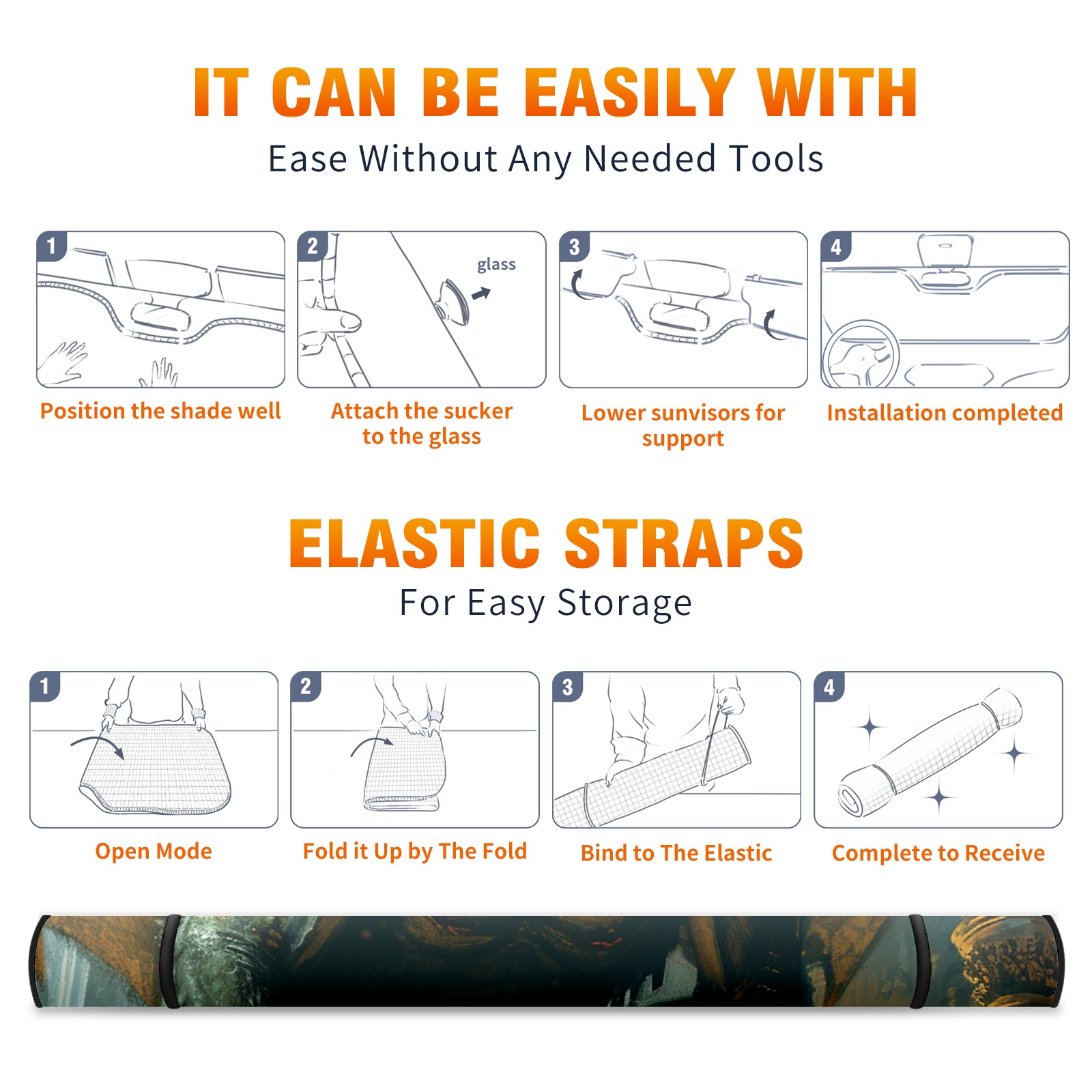 • </b>ZXIVGOQFR Foldable Premium Car Windshield Sunshade is your great solution to reduce your car’s interior temperature dramatically! This is definitely a must-have item for your summer travel! </b> <br> </b>Size: 63"L x 33.5"W </b> <br> </b>Blocking Uv Rays & Heat Insulation</b><br> Our vehicle sunshade provides effective UV, sun, and summer heat protection .Maintains dashboards by preventing fading and cracking <br> </b>Easy-To-Store Folding Design Makes Storage Convenient </b><br> ZXIVGOQFR car sunshades come with removable suction cups and elastic bands that you can install easily and quickly, and the removable suction cups will not leave any marks on your windows when removed. Within seconds, windshield visor can be installed and removed. When not in use,the front windshield can be easily and effectively placed on the door pocket or the dashboard, which is beautiful and does not take up space in the car.<br> <br> </b>PUT UP A 'PROTECTIVE UMBRELLA' FOR YOUR BELOVED CAR!</b>