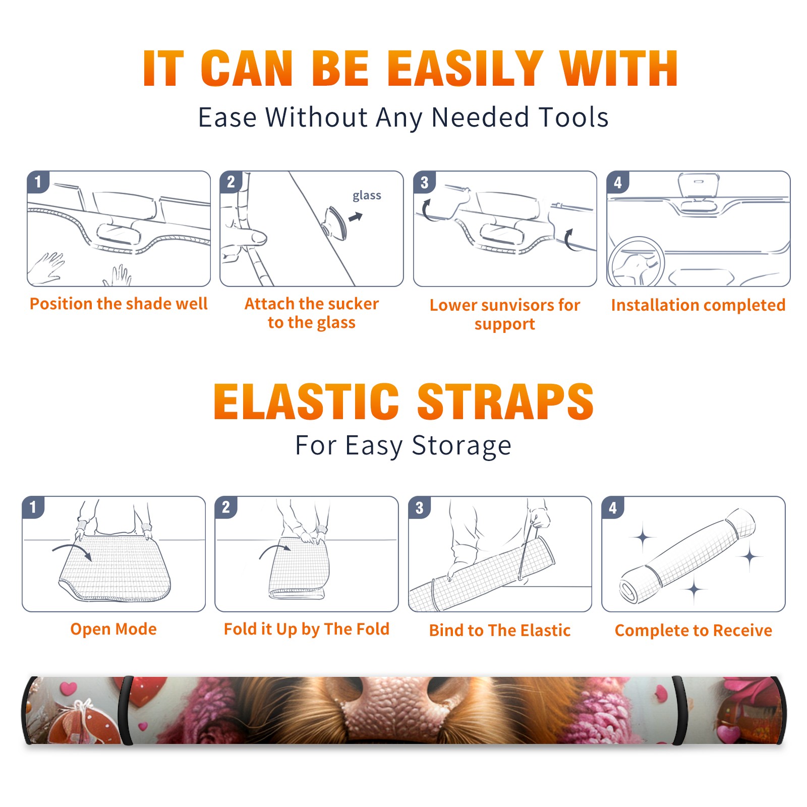 • </b>ZXIVGOQFR Foldable Premium Car Windshield Sunshade is your great solution to reduce your car’s interior temperature dramatically! This is definitely a must-have item for your summer travel! </b> <br> </b>Size: 63"L x 33.5"W </b> <br> </b>Blocking Uv Rays & Heat Insulation</b><br> Our vehicle sunshade provides effective UV, sun, and summer heat protection .Maintains dashboards by preventing fading and cracking <br> </b>Easy-To-Store Folding Design Makes Storage Convenient </b><br> ZXIVGOQFR car sunshades come with removable suction cups and elastic bands that you can install easily and quickly, and the removable suction cups will not leave any marks on your windows when removed. Within seconds, windshield visor can be installed and removed. When not in use,the front windshield can be easily and effectively placed on the door pocket or the dashboard, which is beautiful and does not take up space in the car.<br> <br> </b>PUT UP A 'PROTECTIVE UMBRELLA' FOR YOUR BELOVED CAR!</b>