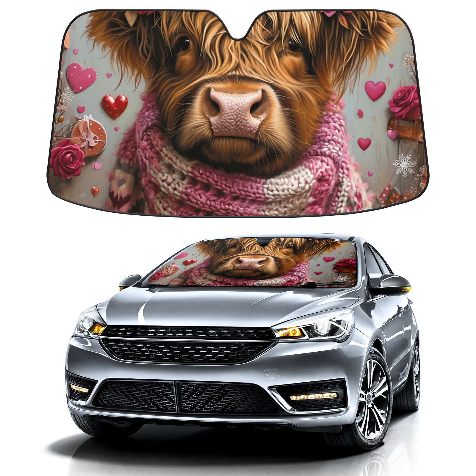 Car Windshield Sun Shade for Front Window Cow With A Fluffy 23 Foldable Vehicle Windshield Car Sun Visor Covers Automotive Window Protector Car Privacy Sun Blocker
