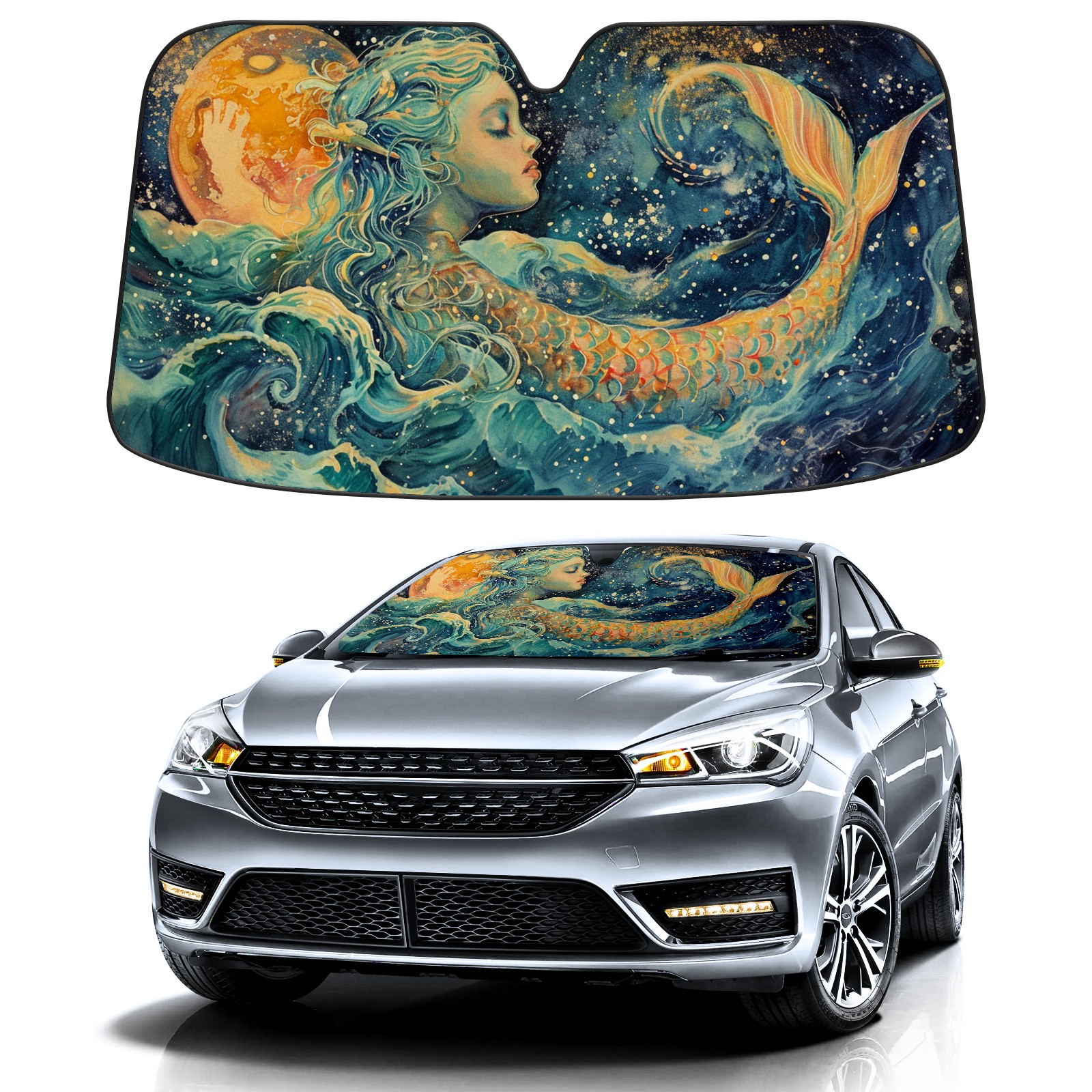 Car Windshield Sun Shade for Front Window Celestial Fairy Tale 4 Foldable Vehicle Windshield Car Sun Visor Covers Automotive Window Protector Car Privacy Sun Blocker