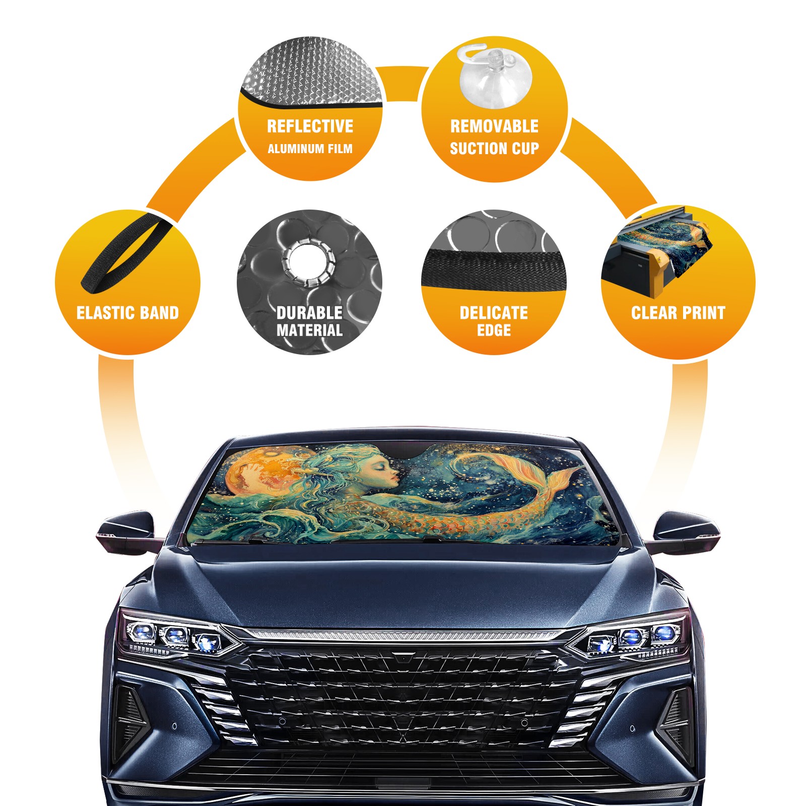 </b>ZXIVGOQFR Foldable Premium Car Windshield Sunshade is your great solution to reduce your car’s interior temperature dramatically! This is definitely a must-have item for your summer travel! </b> <br> </b>Size: 63"L x 33.5"W </b> <br> </b>Blocking Uv Rays & Heat Insulation</b><br> Our vehicle sunshade provides effective UV, sun, and summer heat protection .Maintains dashboards by preventing fading and cracking <br> </b>Easy-To-Store Folding Design Makes Storage Convenient </b><br> ZXIVGOQFR car sunshades come with removable suction cups and elastic bands that you can install easily and quickly, and the removable suction cups will not leave any marks on your windows when removed. Within seconds, windshield visor can be installed and removed. When not in use,the front windshield can be easily and effectively placed on the door pocket or the dashboard, which is beautiful and does not take up space in the car.<br> <br> </b>PUT UP A 'PROTECTIVE UMBRELLA' FOR YOUR BELOVED CAR!</b>