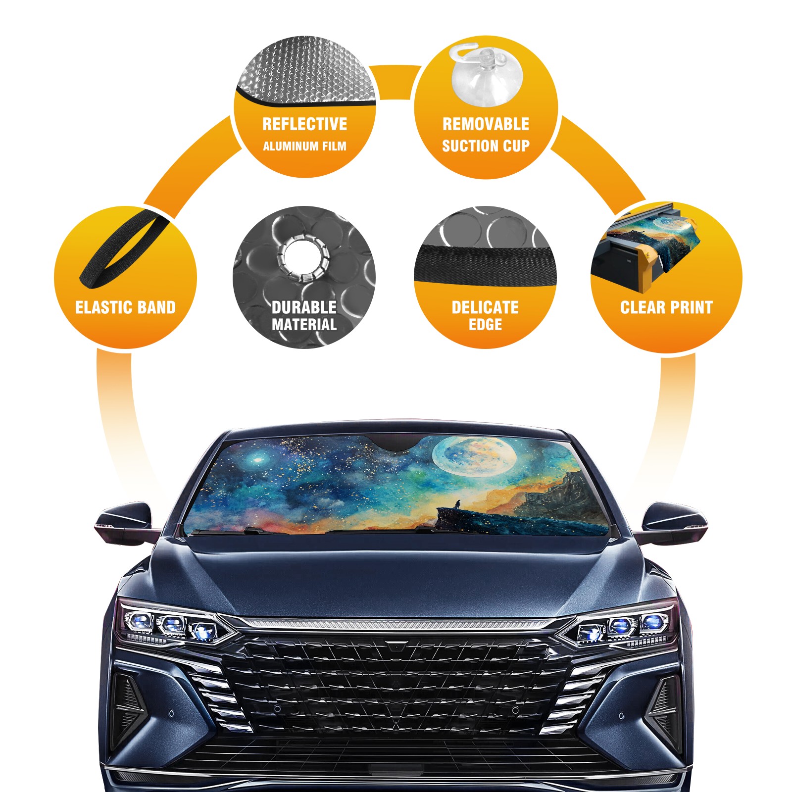 Car Windshield Sun Shade for Front Window Celestial Fairy Tale 2 Foldable Vehicle Windshield Car Sun Visor Covers Automotive Window Protector Car Privacy Sun Blocker