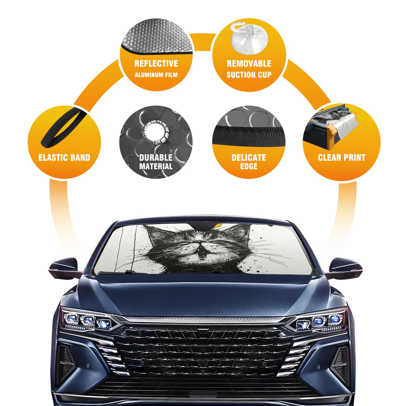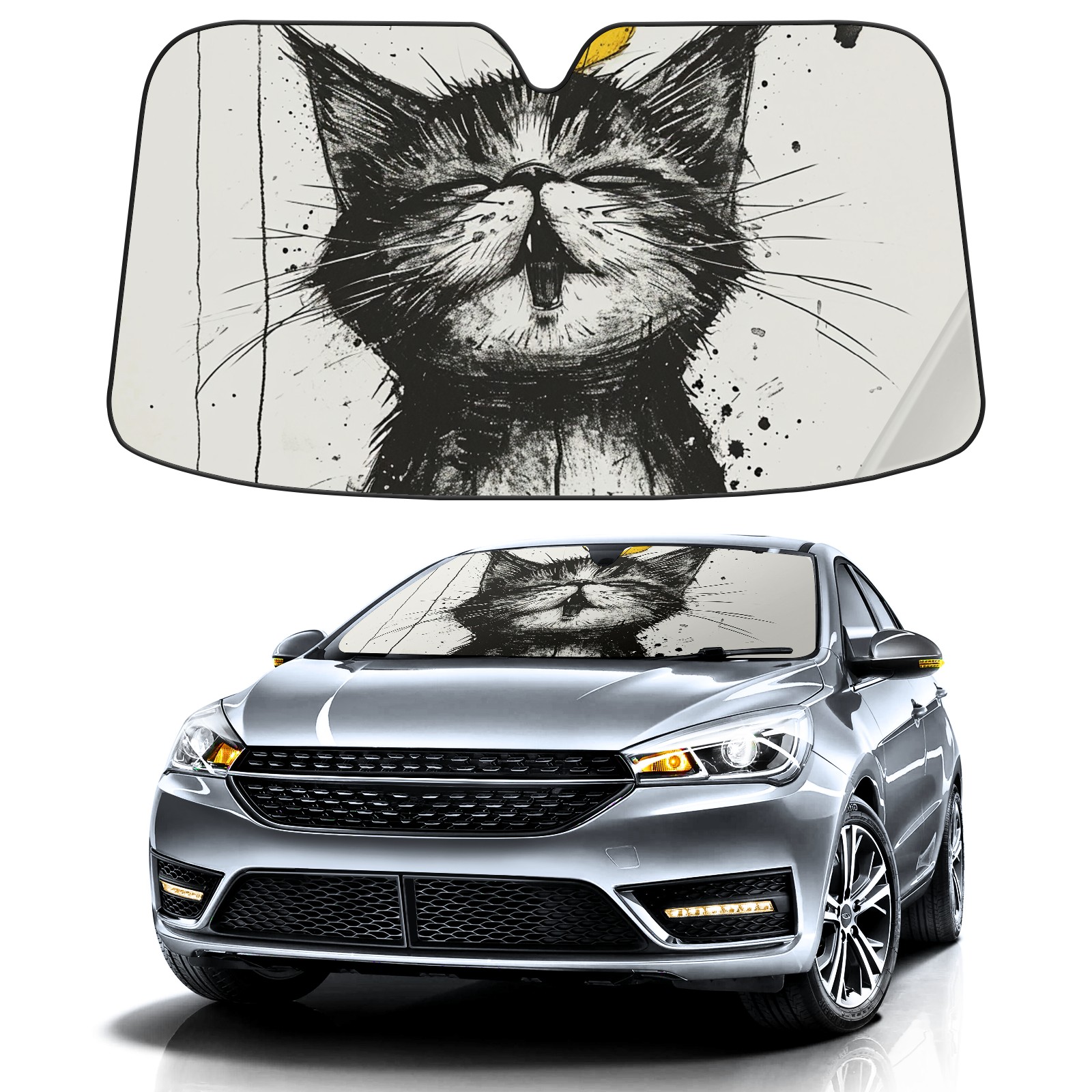 Car Windshield Sun Shade for Front Window Cat With Canary 4 Foldable Vehicle Windshield Car Sun Visor Covers Automotive Window Protector Car Privacy Sun Blocker