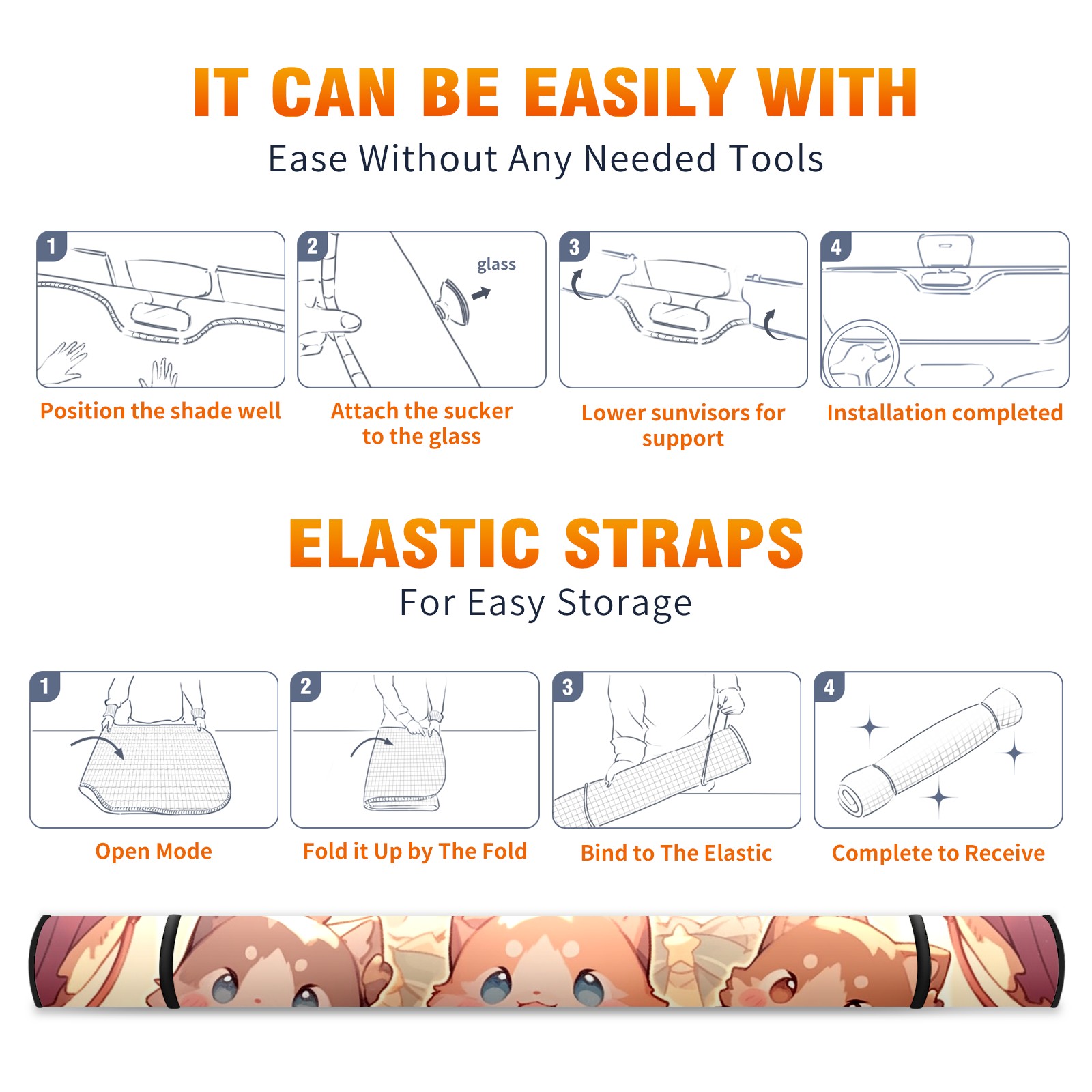 • </b>ZXIVGOQFR Foldable Premium Car Windshield Sunshade is your great solution to reduce your car’s interior temperature dramatically! This is definitely a must-have item for your summer travel! </b> <br> </b>Size: 63"L x 33.5"W </b> <br> </b>Blocking Uv Rays & Heat Insulation</b><br> Our vehicle sunshade provides effective UV, sun, and summer heat protection .Maintains dashboards by preventing fading and cracking <br> </b>Easy-To-Store Folding Design Makes Storage Convenient </b><br> ZXIVGOQFR car sunshades come with removable suction cups and elastic bands that you can install easily and quickly, and the removable suction cups will not leave any marks on your windows when removed. Within seconds, windshield visor can be installed and removed. When not in use,the front windshield can be easily and effectively placed on the door pocket or the dashboard, which is beautiful and does not take up space in the car.<br> <br> </b>PUT UP A 'PROTECTIVE UMBRELLA' FOR YOUR BELOVED CAR!</b>