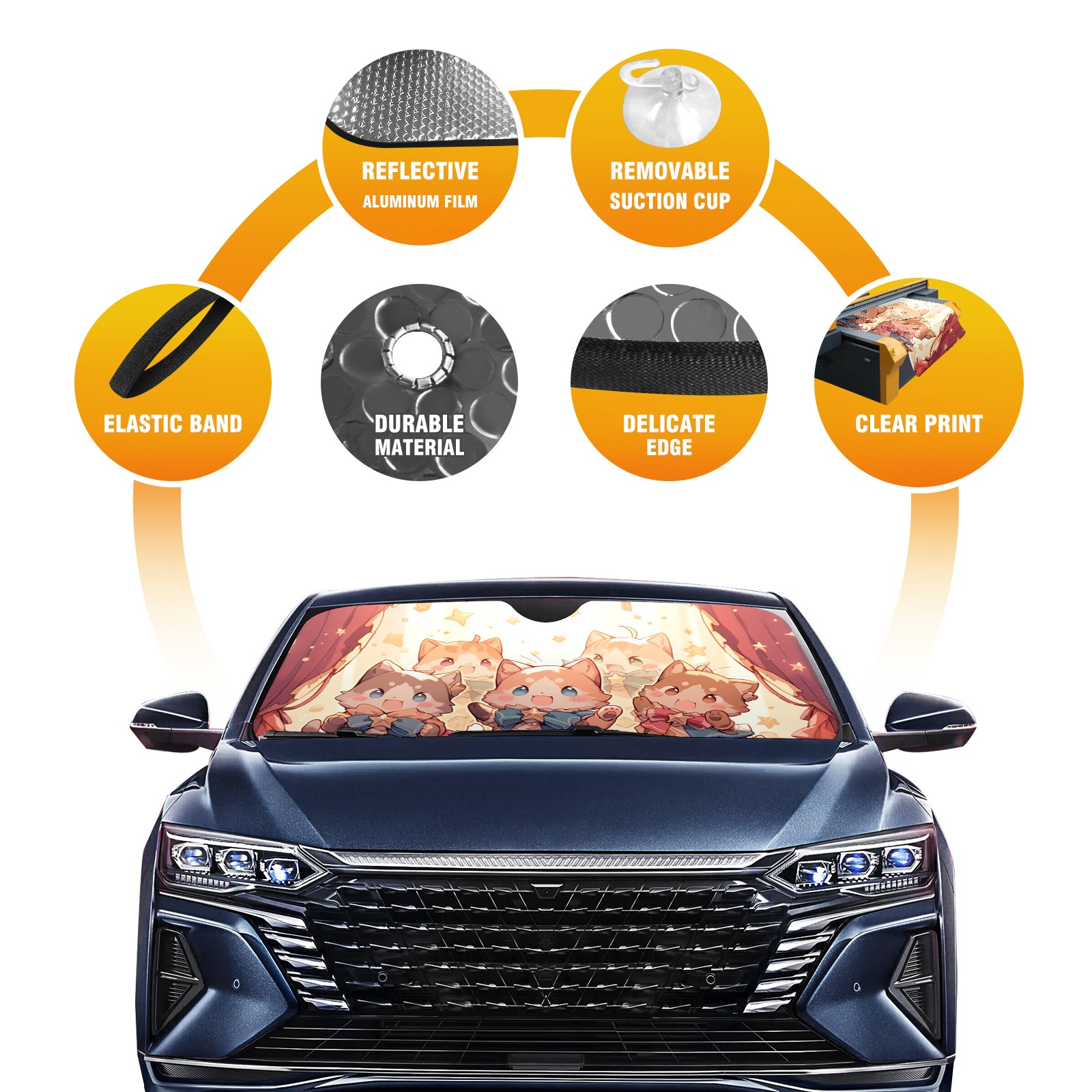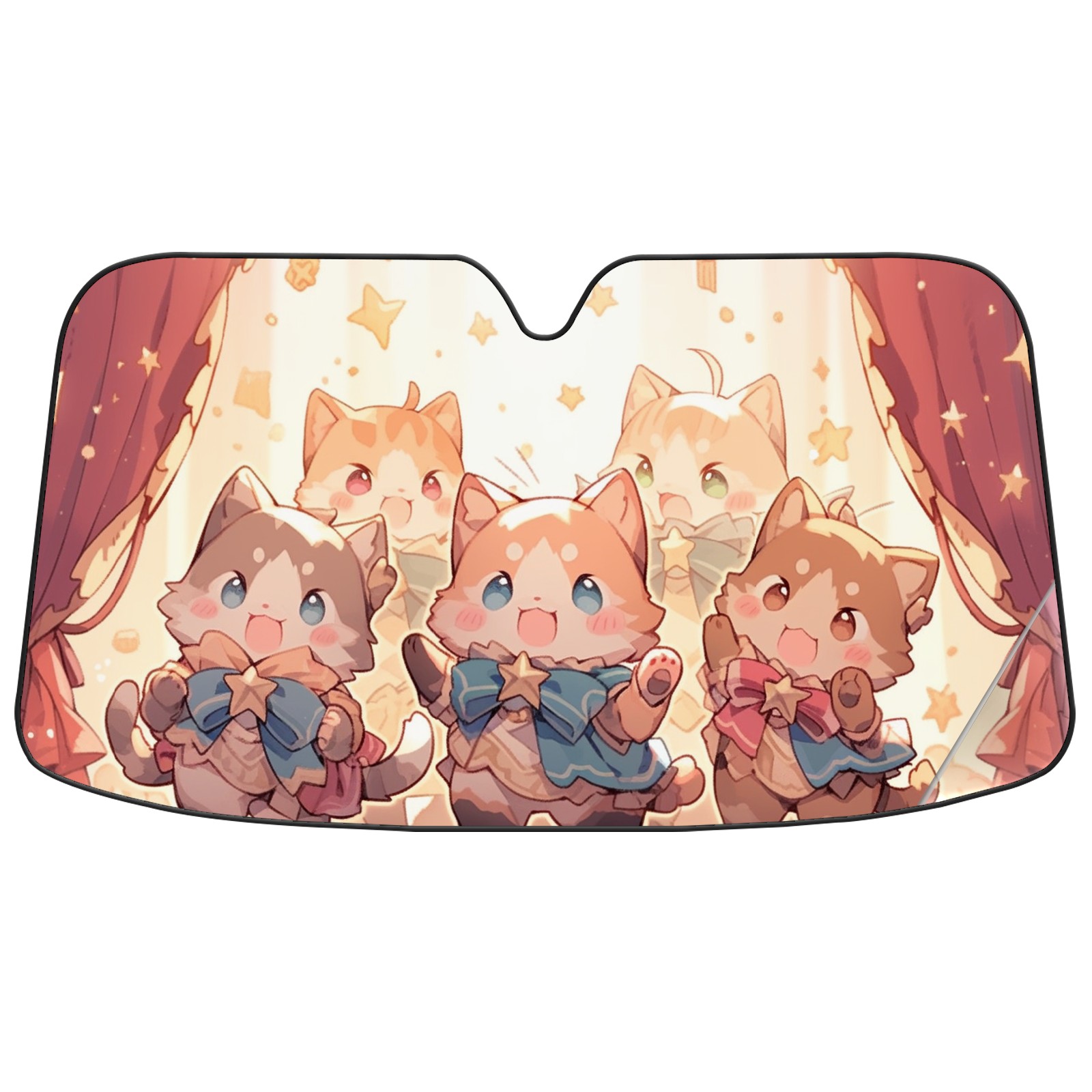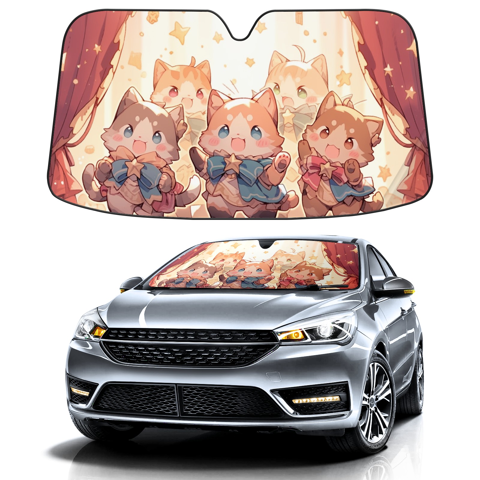 Car Windshield Sun Shade for Front Window Cat Stage 4 Foldable Vehicle Windshield Car Sun Visor Covers Automotive Window Protector Car Privacy Sun Blocker