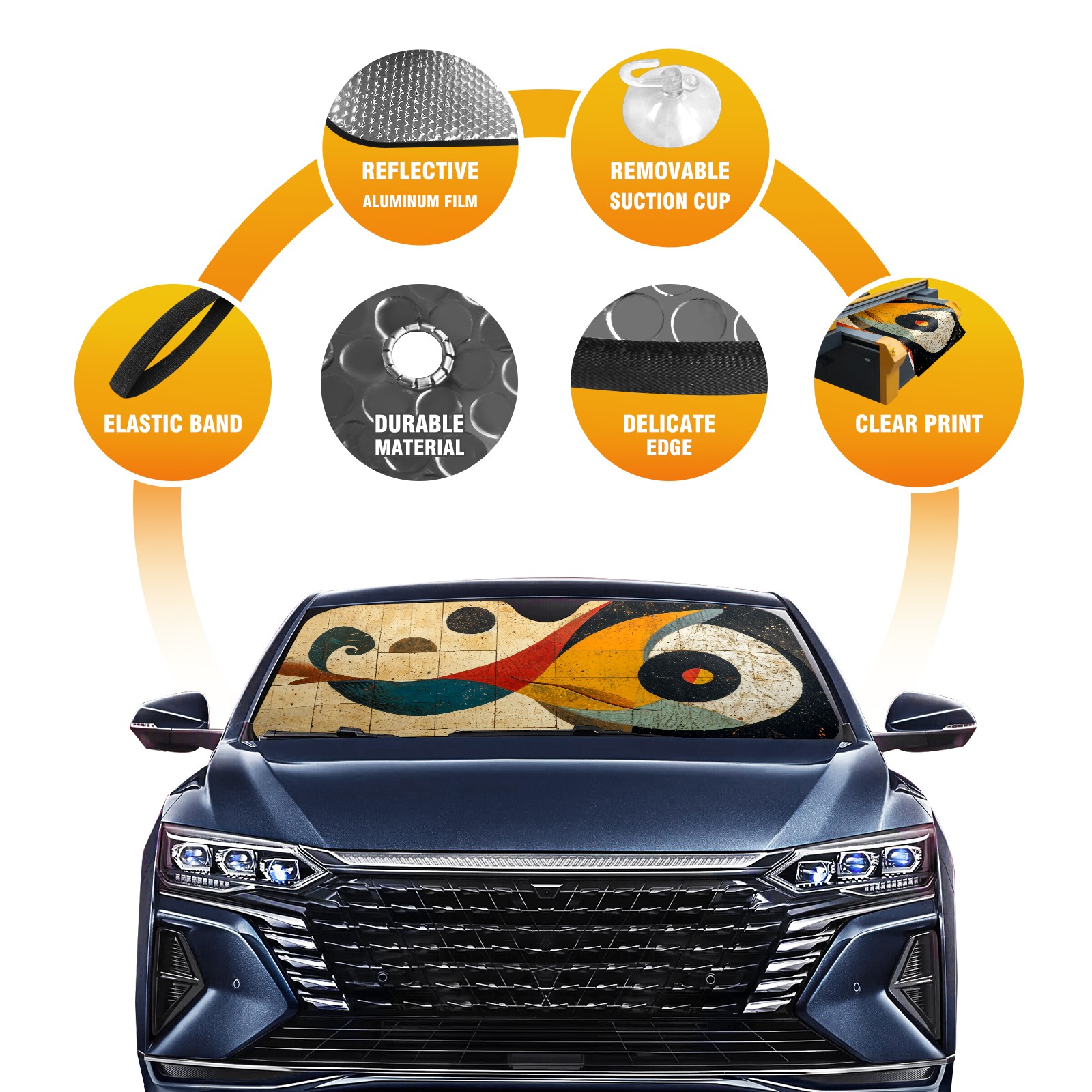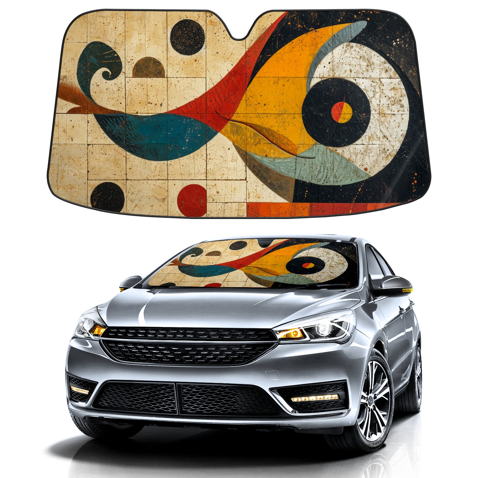 Car Windshield Sun Shade for Front Window Abstract Shapes 5 Foldable Vehicle Windshield Car Sun Visor Covers Automotive Window Protector Car Privacy Sun Blocker