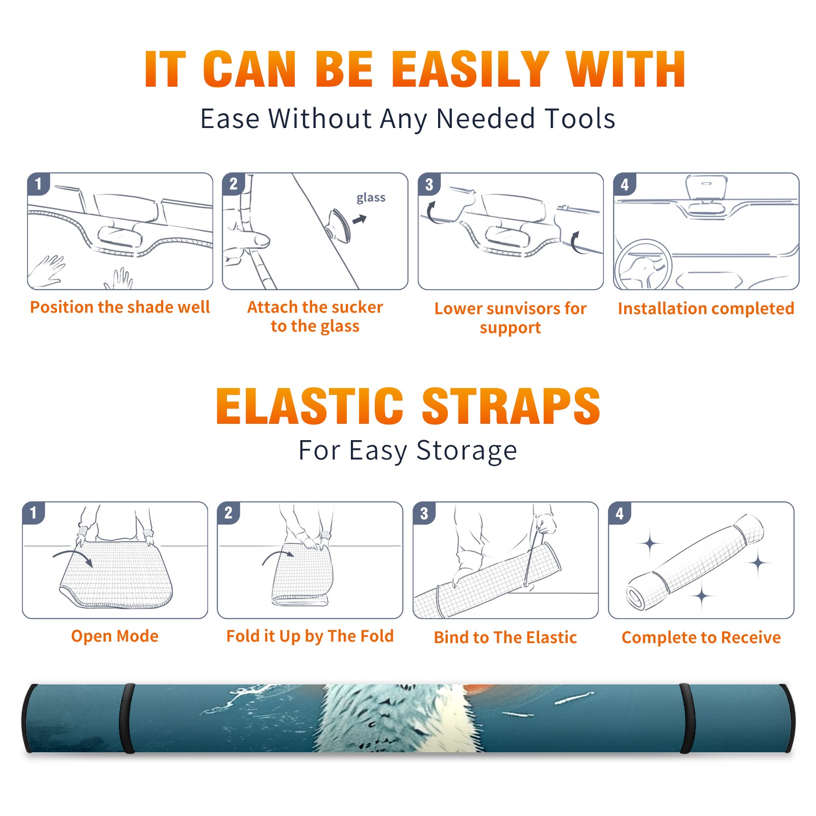 • </b>ZXIVGOQFR Foldable Premium Car Windshield Sunshade is your great solution to reduce your car’s interior temperature dramatically! This is definitely a must-have item for your summer travel! </b> <br> </b>Size: 63"L x 33.5"W </b> <br> </b>Blocking Uv Rays & Heat Insulation</b><br> Our vehicle sunshade provides effective UV, sun, and summer heat protection .Maintains dashboards by preventing fading and cracking <br> </b>Easy-To-Store Folding Design Makes Storage Convenient </b><br> ZXIVGOQFR car sunshades come with removable suction cups and elastic bands that you can install easily and quickly, and the removable suction cups will not leave any marks on your windows when removed. Within seconds, windshield visor can be installed and removed. When not in use,the front windshield can be easily and effectively placed on the door pocket or the dashboard, which is beautiful and does not take up space in the car.<br> <br> </b>PUT UP A 'PROTECTIVE UMBRELLA' FOR YOUR BELOVED CAR!</b>