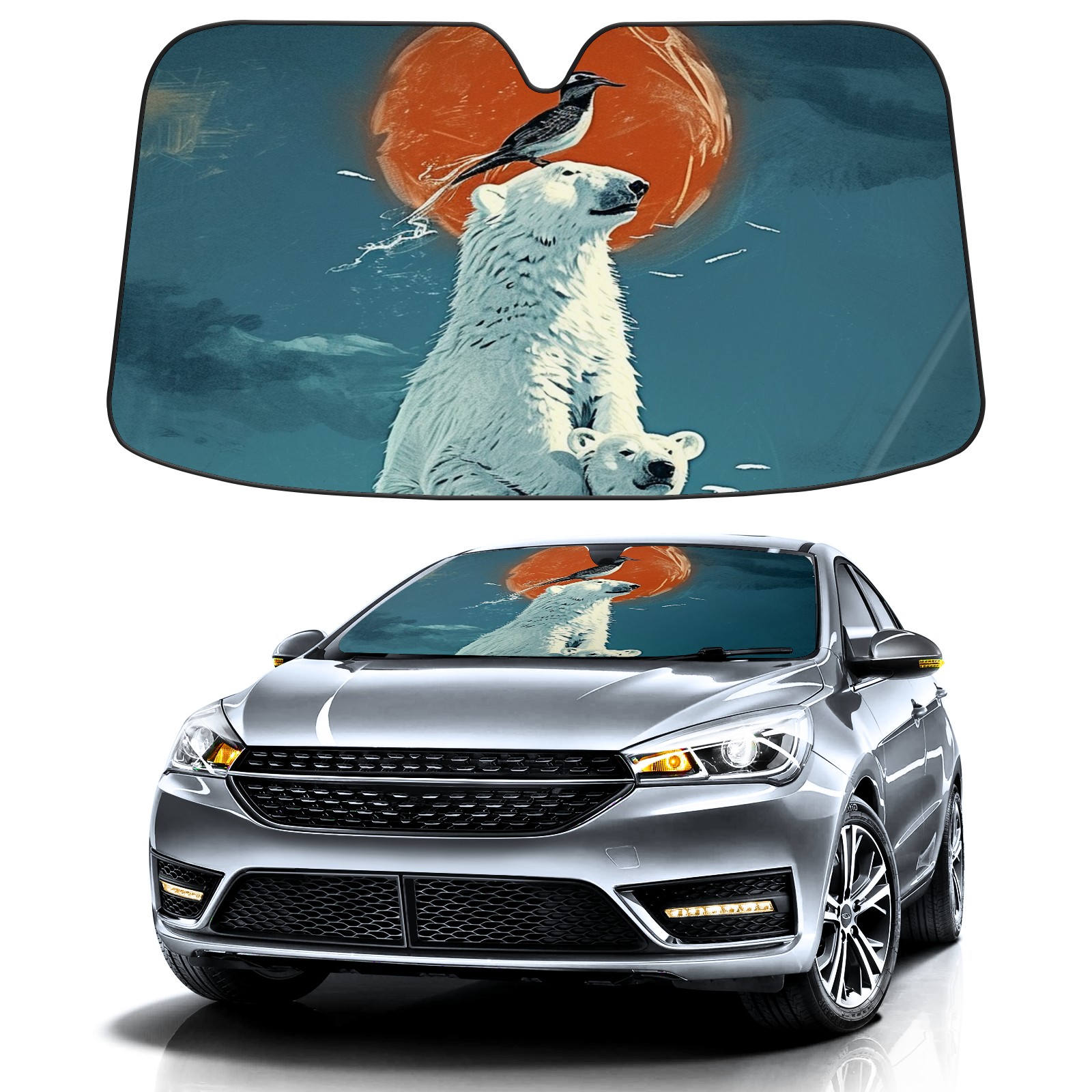 Car Windshield Sun Shade for Front Window Polar Bears (7) Foldable Vehicle Windshield Car Sun Visor Covers Automotive Window Protector Car Privacy Sun Blocker