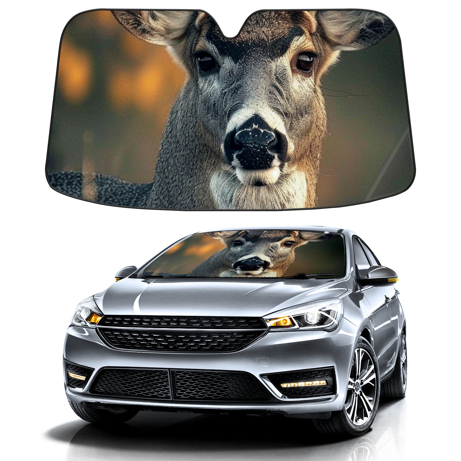 Car Windshield Sun Shade for Front Window Big Deer (7) Foldable Vehicle Windshield Car Sun Visor Covers Automotive Window Protector Car Privacy Sun Blocker