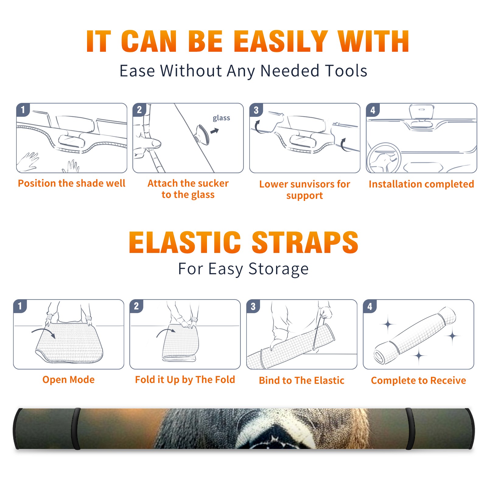 • </b>ZXIVGOQFR Foldable Premium Car Windshield Sunshade is your great solution to reduce your car’s interior temperature dramatically! This is definitely a must-have item for your summer travel! </b> <br> </b>Size: 63"L x 33.5"W </b> <br> </b>Blocking Uv Rays & Heat Insulation</b><br> Our vehicle sunshade provides effective UV, sun, and summer heat protection .Maintains dashboards by preventing fading and cracking <br> </b>Easy-To-Store Folding Design Makes Storage Convenient </b><br> ZXIVGOQFR car sunshades come with removable suction cups and elastic bands that you can install easily and quickly, and the removable suction cups will not leave any marks on your windows when removed. Within seconds, windshield visor can be installed and removed. When not in use,the front windshield can be easily and effectively placed on the door pocket or the dashboard, which is beautiful and does not take up space in the car.<br> <br> </b>PUT UP A 'PROTECTIVE UMBRELLA' FOR YOUR BELOVED CAR!</b>