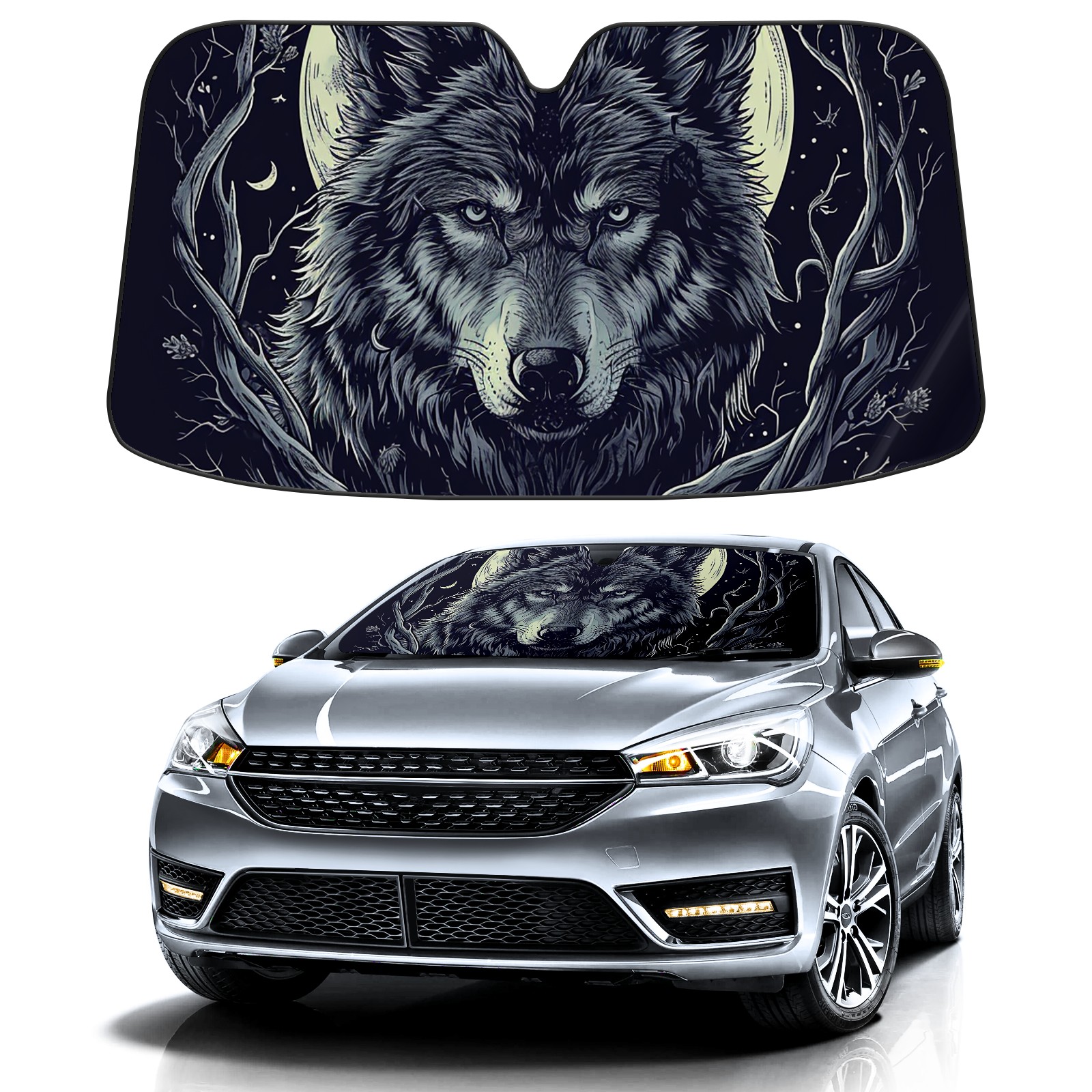 Car Windshield Sun Shade for Front Window Wolf Foldable Vehicle Windshield Car Sun Visor Covers Automotive Window Protector Car Privacy Sun Blocker