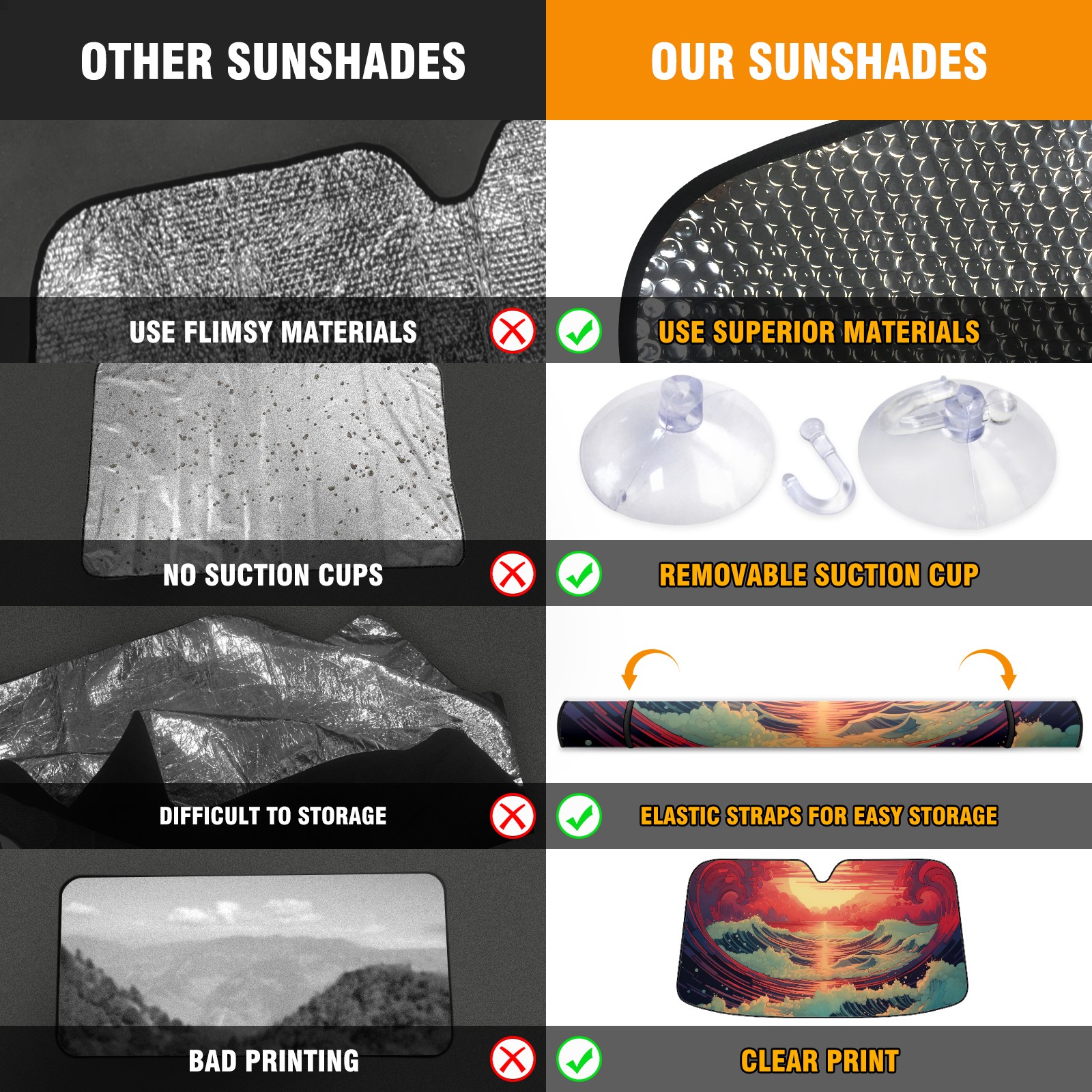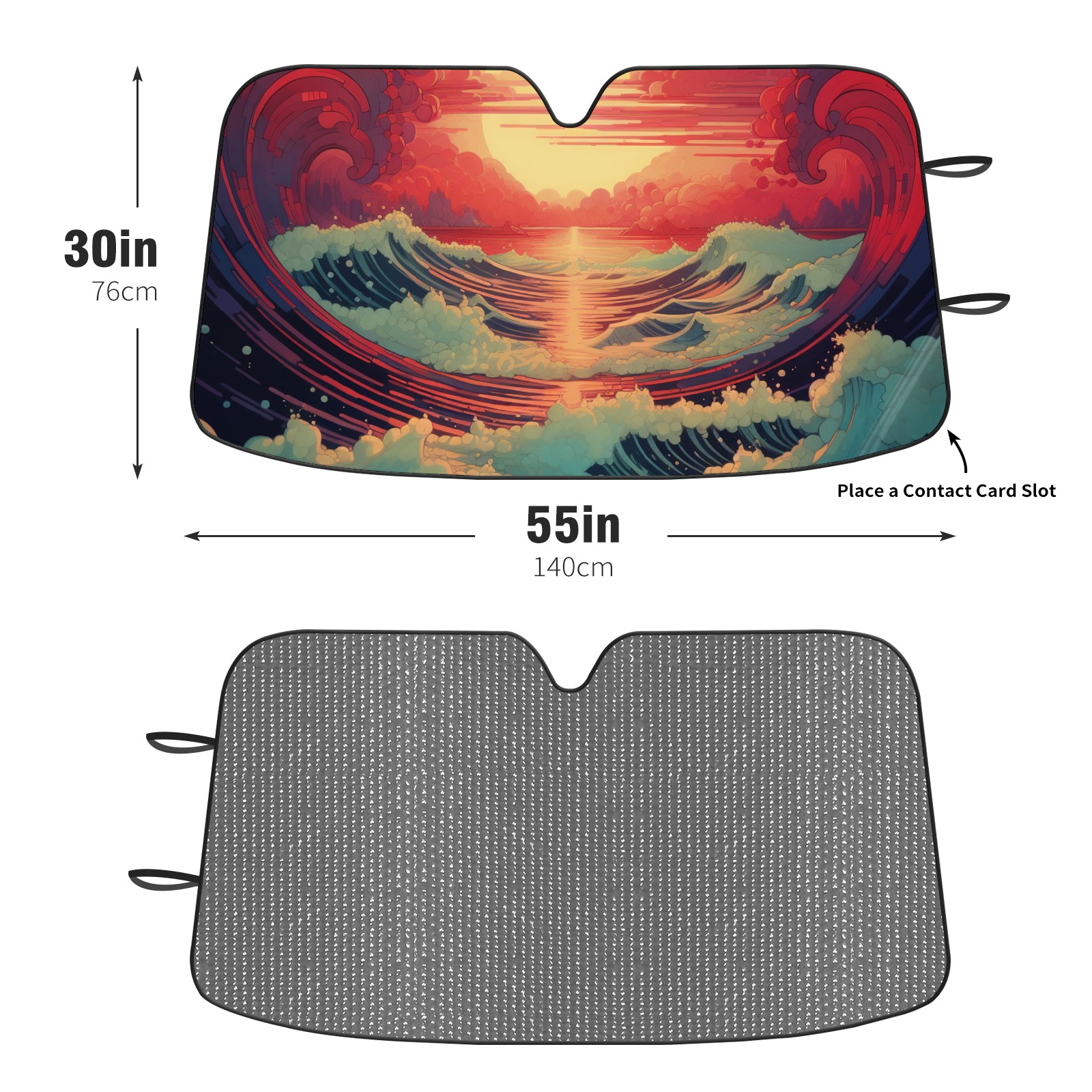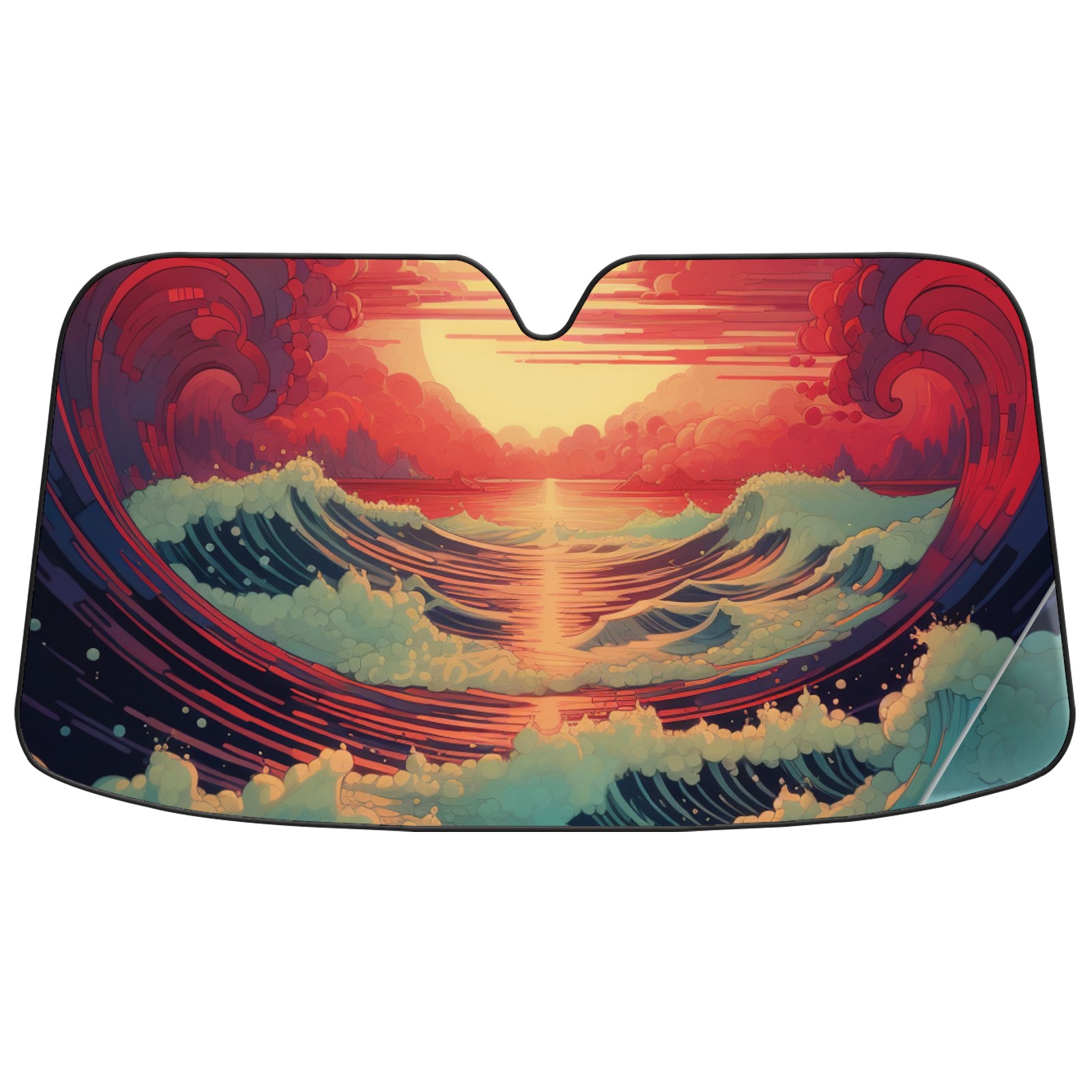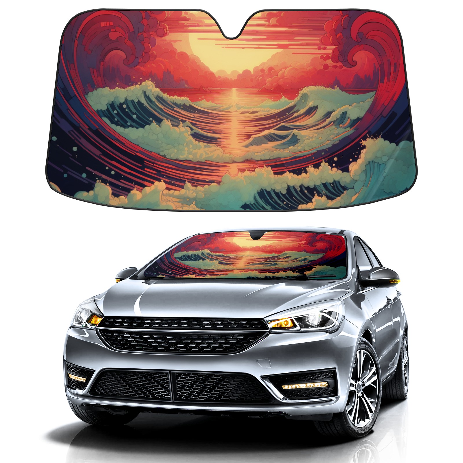 Car Windshield Sun Shade for Front Window Sunset Wave Foldable Vehicle Windshield Car Sun Visor Covers Automotive Window Protector Car Privacy Sun Blocker