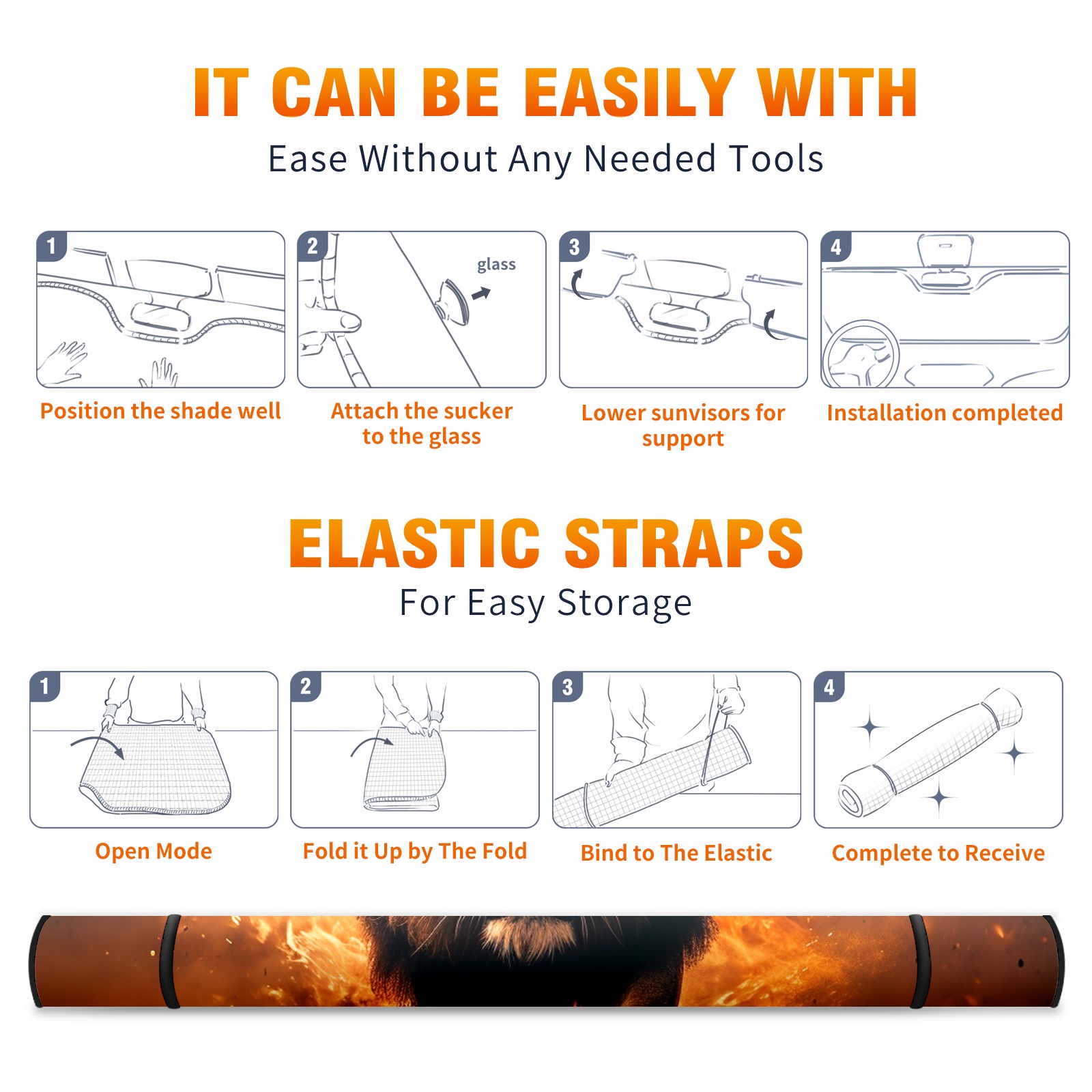 • </b>ZXIVGOQFR Foldable Premium Car Windshield Sunshade is your great solution to reduce your car’s interior temperature dramatically! This is definitely a must-have item for your summer travel! </b> <br> </b>Size: 63"L x 33.5"W </b> <br> </b>Blocking Uv Rays & Heat Insulation</b><br> Our vehicle sunshade provides effective UV, sun, and summer heat protection .Maintains dashboards by preventing fading and cracking <br> </b>Easy-To-Store Folding Design Makes Storage Convenient </b><br> ZXIVGOQFR car sunshades come with removable suction cups and elastic bands that you can install easily and quickly, and the removable suction cups will not leave any marks on your windows when removed. Within seconds, windshield visor can be installed and removed. When not in use,the front windshield can be easily and effectively placed on the door pocket or the dashboard, which is beautiful and does not take up space in the car.<br> <br> </b>PUT UP A 'PROTECTIVE UMBRELLA' FOR YOUR BELOVED CAR!</b>