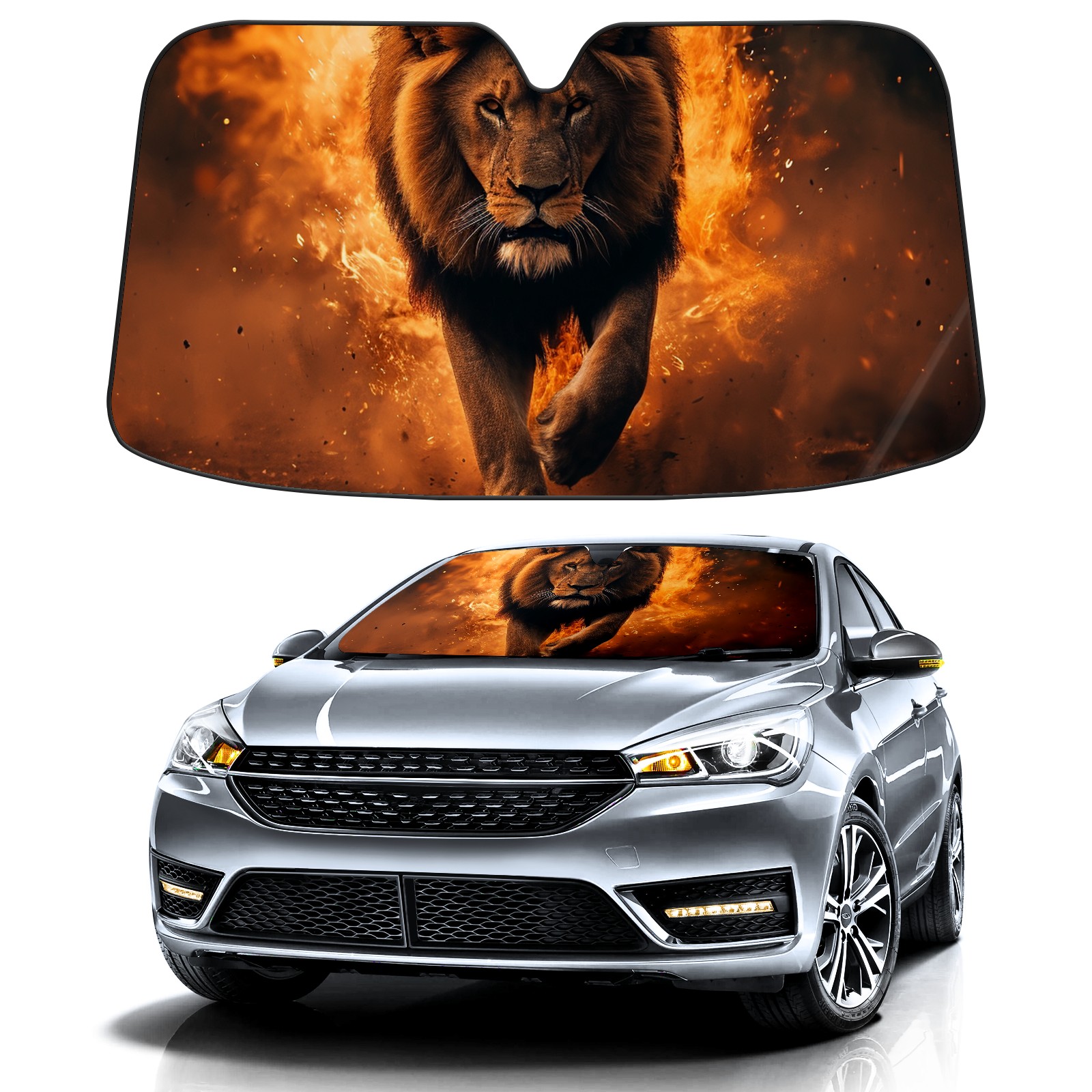 Car Windshield Sun Shade for Front Window Lion 7 Foldable Vehicle Windshield Car Sun Visor Covers Automotive Window Protector Car Privacy Sun Blocker