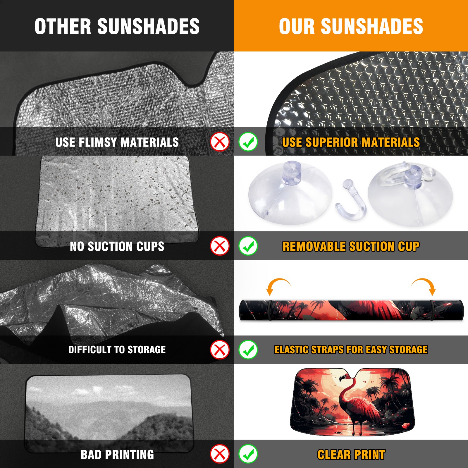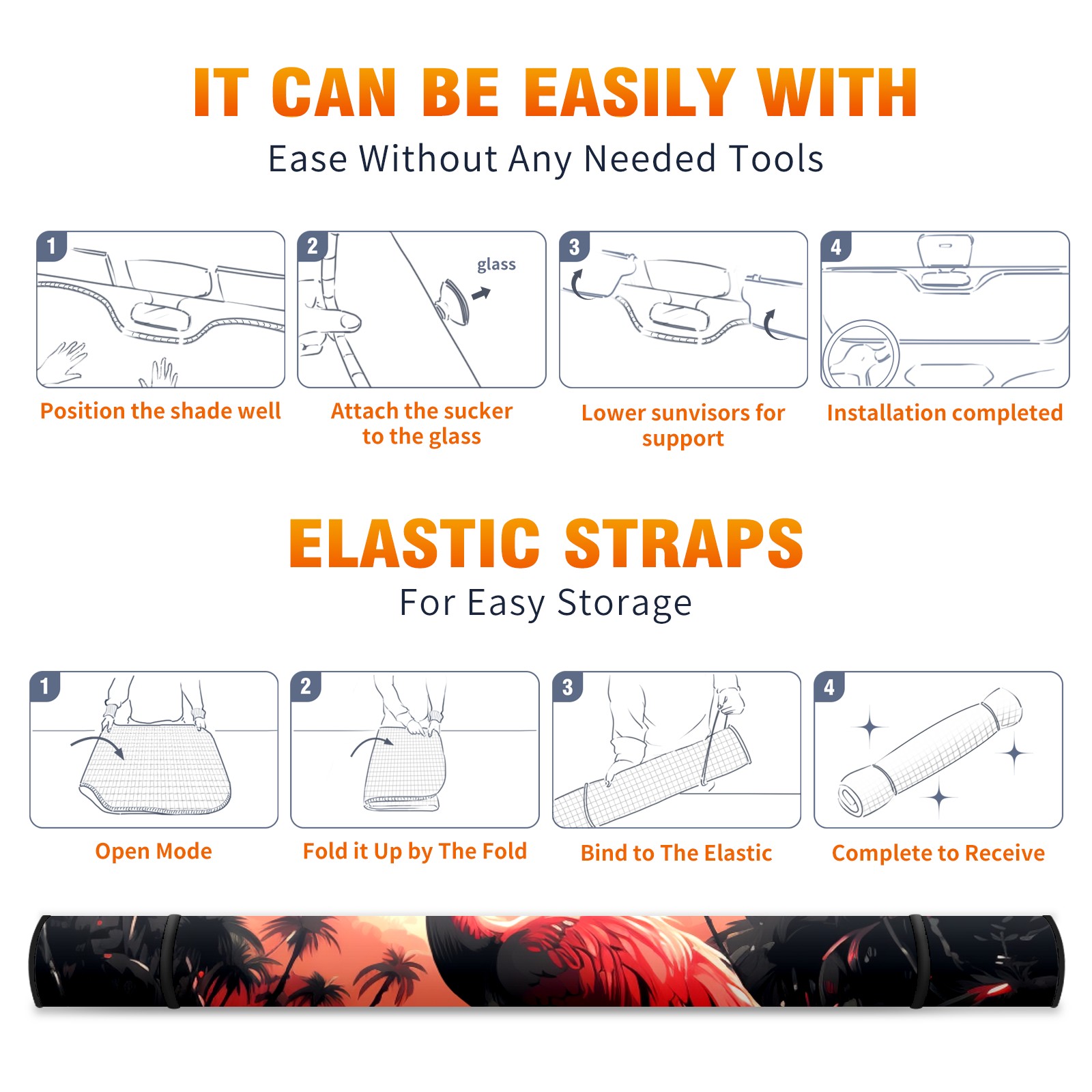 • </b>ZXIVGOQFR Foldable Premium Car Windshield Sunshade is your great solution to reduce your car’s interior temperature dramatically! This is definitely a must-have item for your summer travel! </b> <br> </b>Size: 63"L x 33.5"W </b> <br> </b>Blocking Uv Rays & Heat Insulation</b><br> Our vehicle sunshade provides effective UV, sun, and summer heat protection .Maintains dashboards by preventing fading and cracking <br> </b>Easy-To-Store Folding Design Makes Storage Convenient </b><br> ZXIVGOQFR car sunshades come with removable suction cups and elastic bands that you can install easily and quickly, and the removable suction cups will not leave any marks on your windows when removed. Within seconds, windshield visor can be installed and removed. When not in use,the front windshield can be easily and effectively placed on the door pocket or the dashboard, which is beautiful and does not take up space in the car.<br> <br> </b>PUT UP A 'PROTECTIVE UMBRELLA' FOR YOUR BELOVED CAR!</b>
