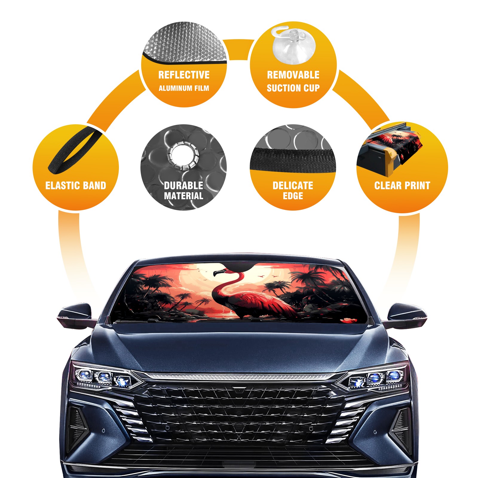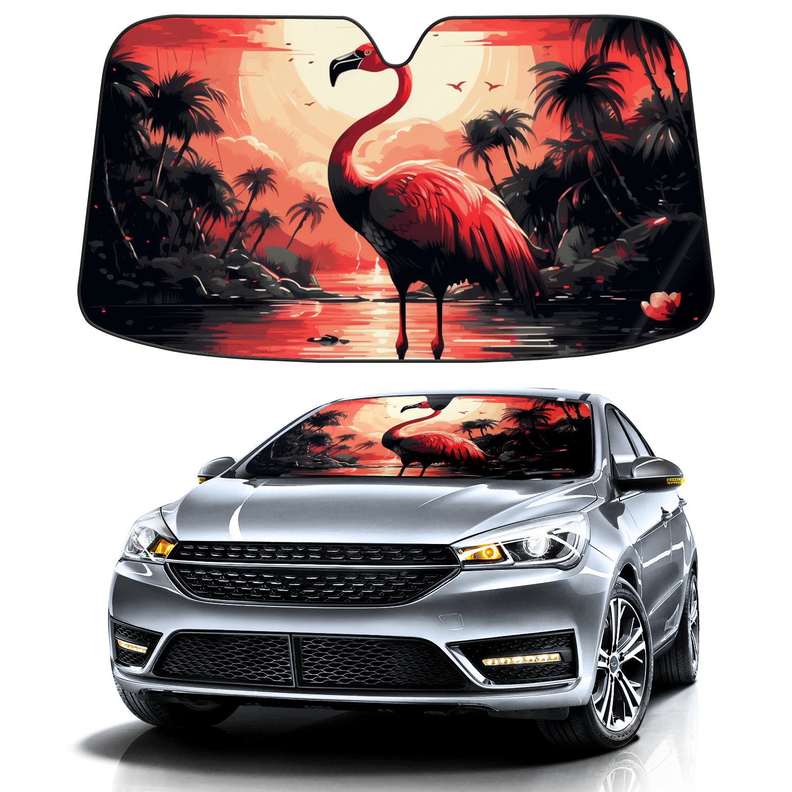 Car Windshield Sun Shade for Front Window Flamingo Foldable Vehicle Windshield Car Sun Visor Covers Automotive Window Protector Car Privacy Sun Blocker