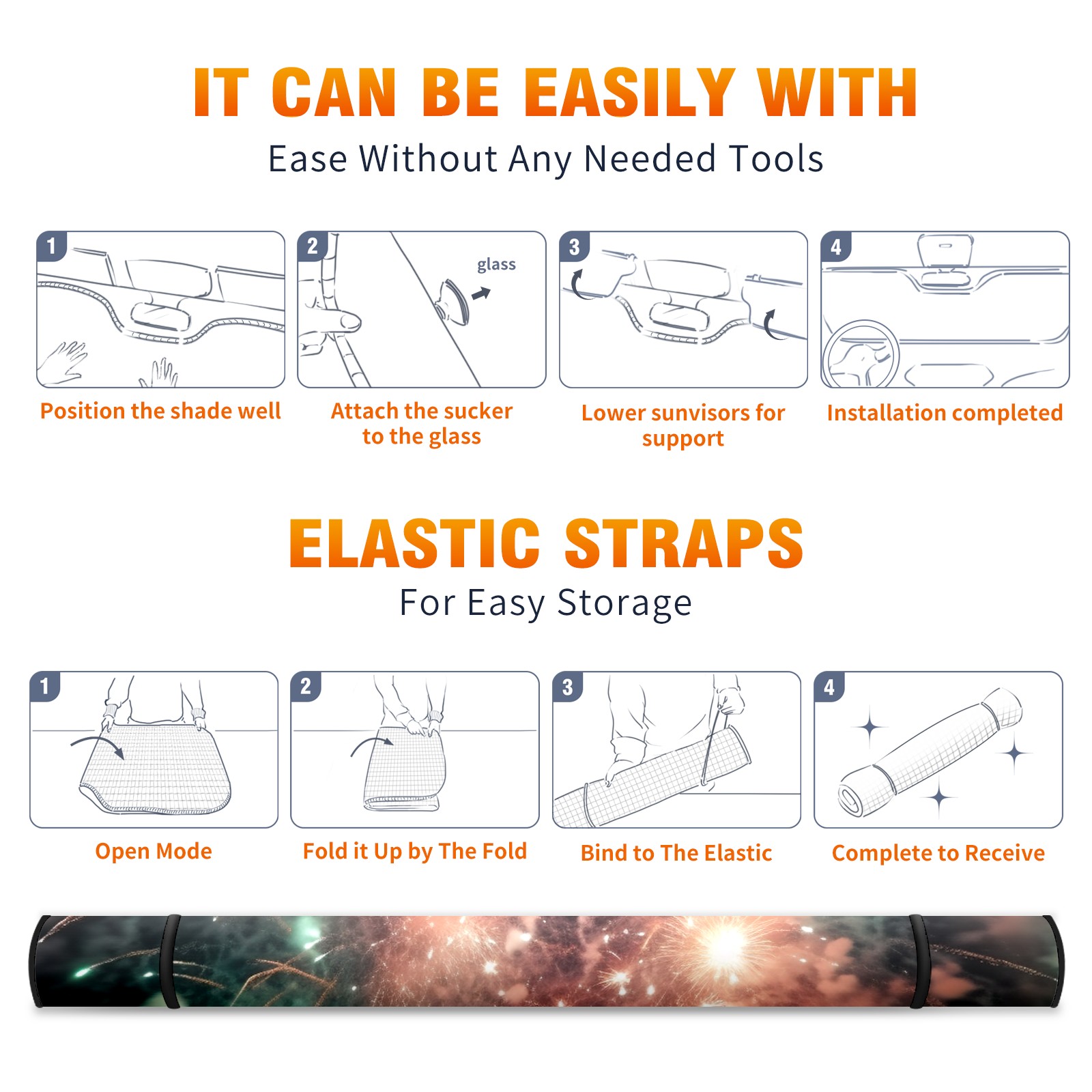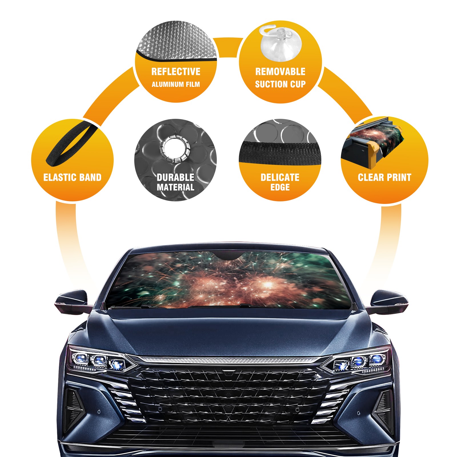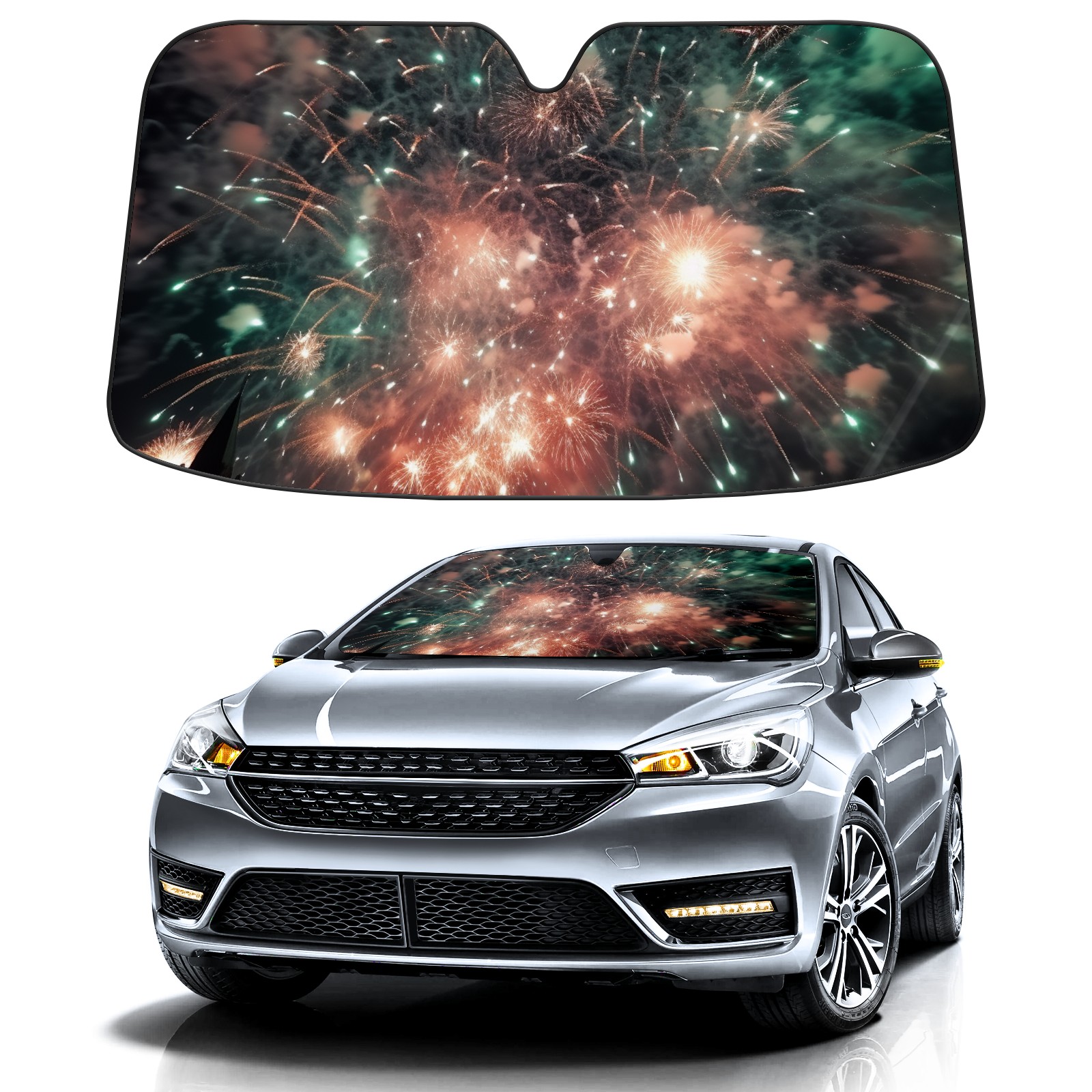 Car Windshield Sun Shade for Front Window Fireworks Foldable Vehicle Windshield Car Sun Visor Covers Automotive Window Protector Car Privacy Sun Blocker