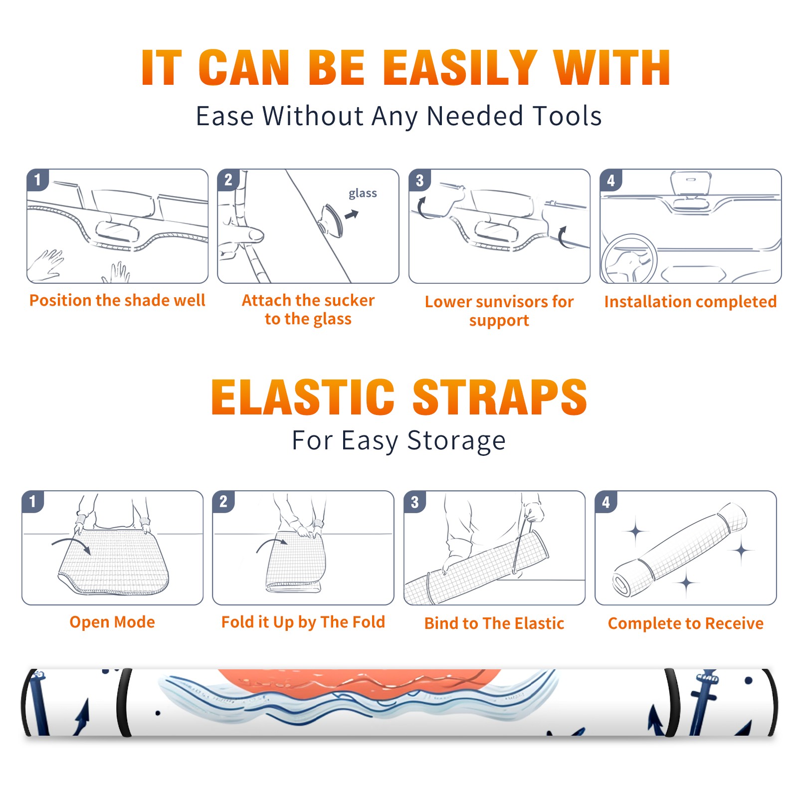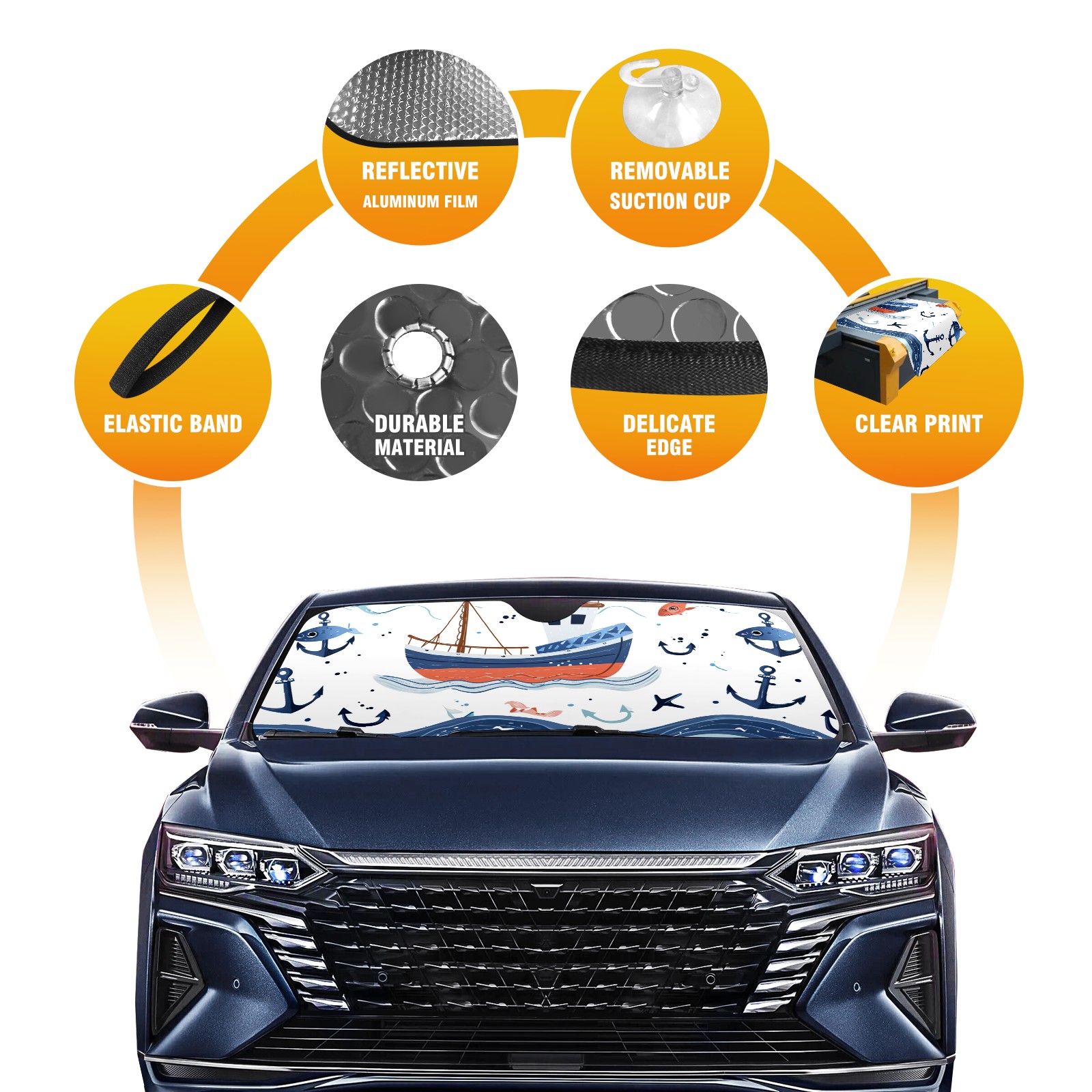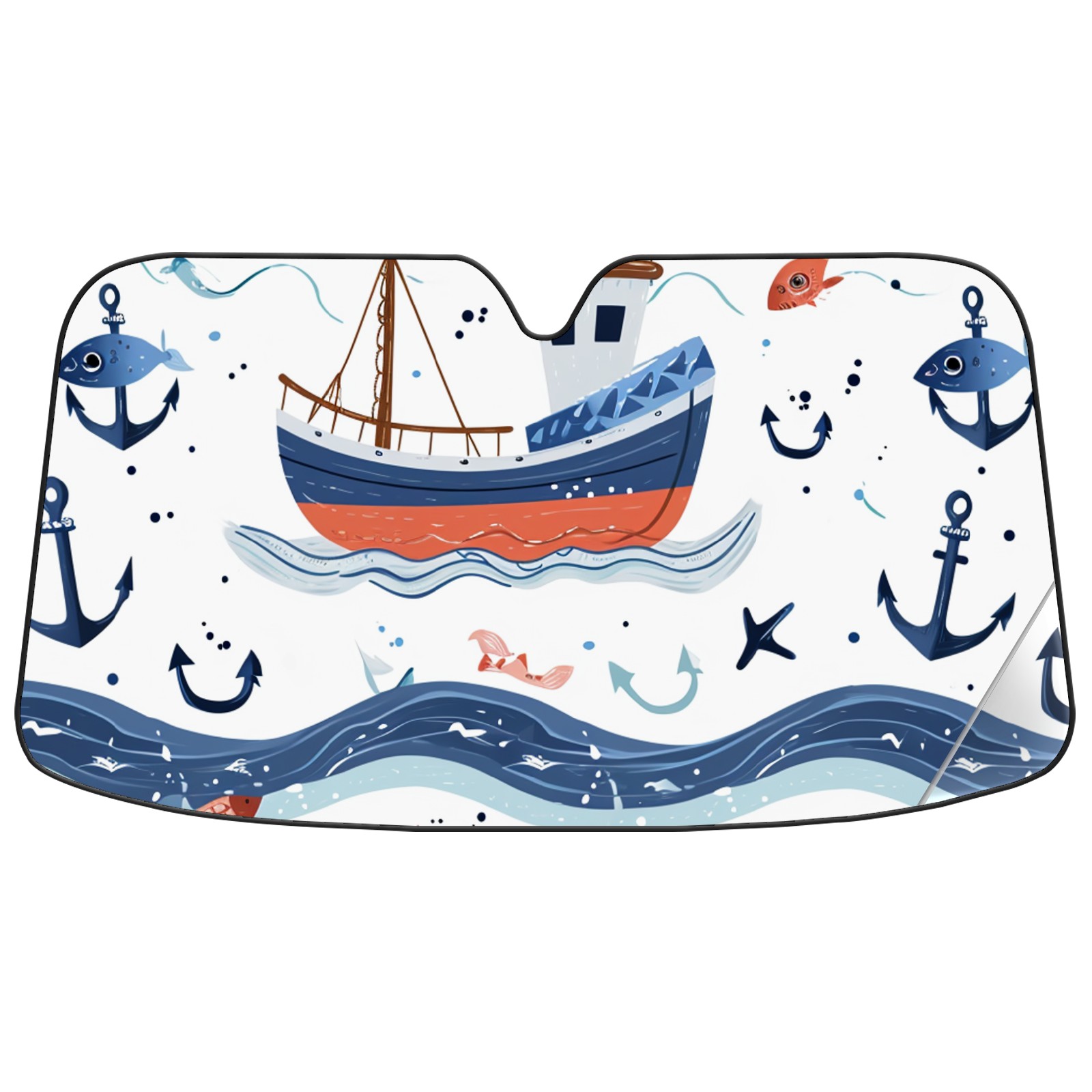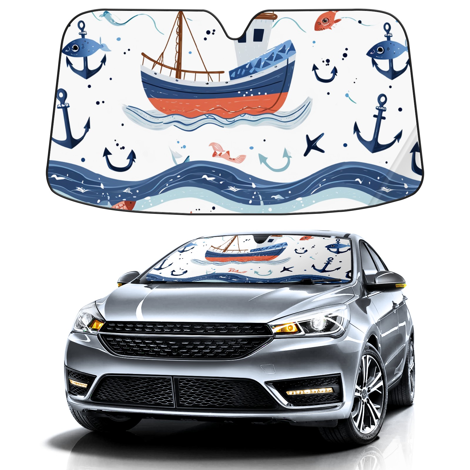 Car Windshield Sun Shade for Front Window Cute Fishing Boat Foldable Vehicle Windshield Car Sun Visor Covers Automotive Window Protector Car Privacy Sun Blocker