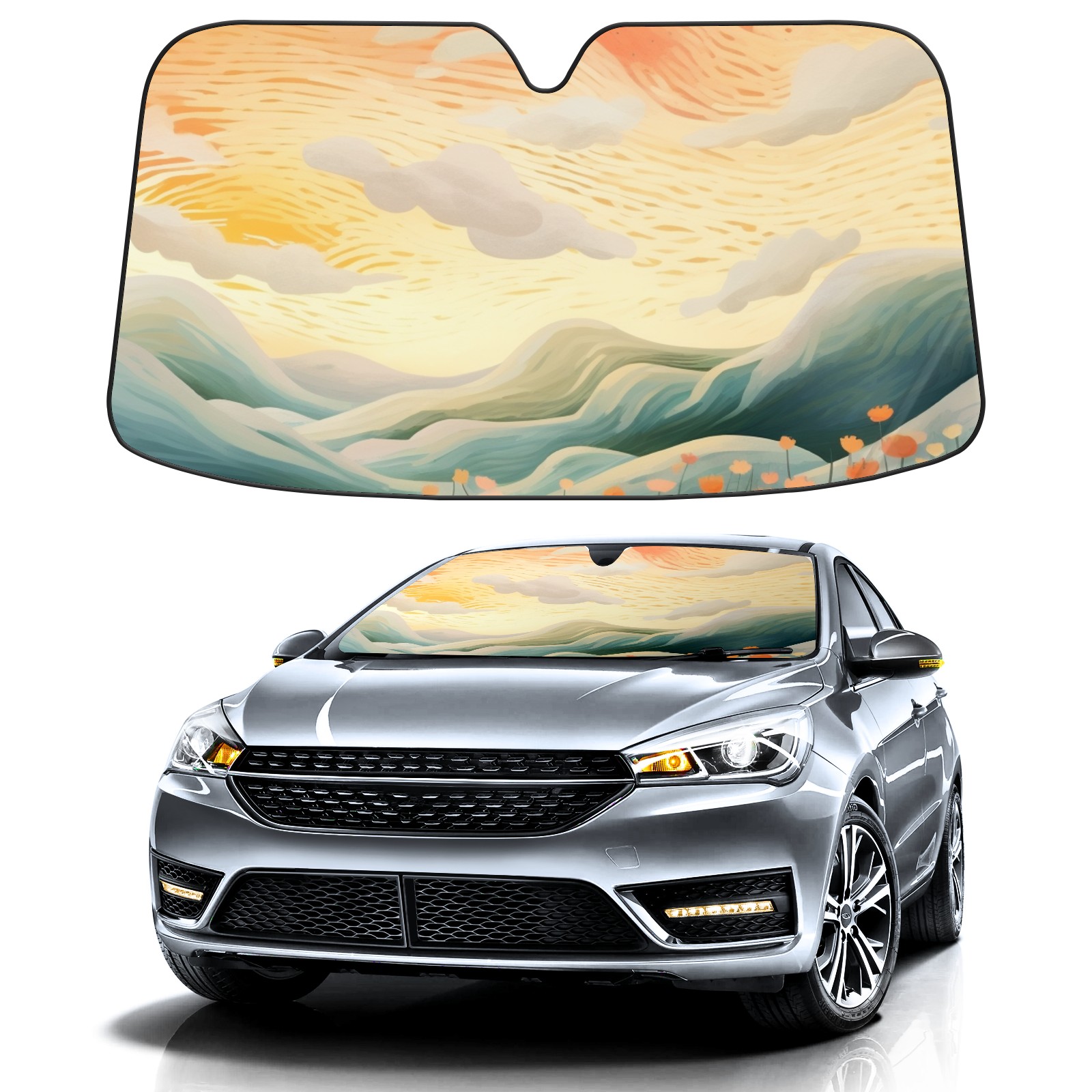 Car Windshield Sun Shade for Front Window Abstract Patterns Clouds Foldable Vehicle Windshield Car Sun Visor Covers Automotive Window Protector Car Privacy Sun Blocker