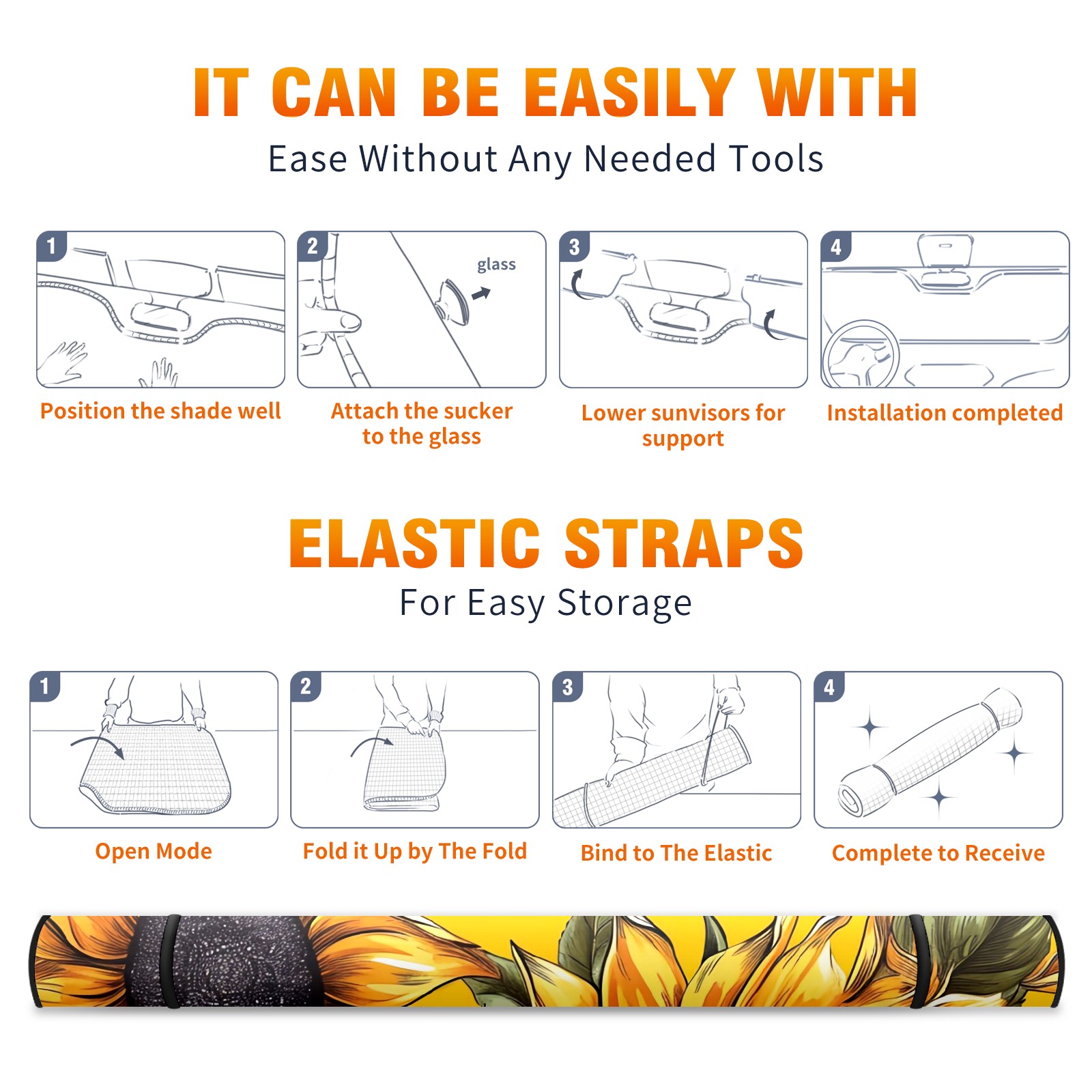 • </b>ZXIVGOQFR Foldable Premium Car Windshield Sunshade is your great solution to reduce your car’s interior temperature dramatically! This is definitely a must-have item for your summer travel! </b> <br> </b>Size: 63"L x 33.5"W </b> <br> </b>Blocking Uv Rays & Heat Insulation</b><br> Our vehicle sunshade provides effective UV, sun, and summer heat protection .Maintains dashboards by preventing fading and cracking <br> </b>Easy-To-Store Folding Design Makes Storage Convenient </b><br> ZXIVGOQFR car sunshades come with removable suction cups and elastic bands that you can install easily and quickly, and the removable suction cups will not leave any marks on your windows when removed. Within seconds, windshield visor can be installed and removed. When not in use,the front windshield can be easily and effectively placed on the door pocket or the dashboard, which is beautiful and does not take up space in the car.<br> <br> </b>PUT UP A 'PROTECTIVE UMBRELLA' FOR YOUR BELOVED CAR!</b>