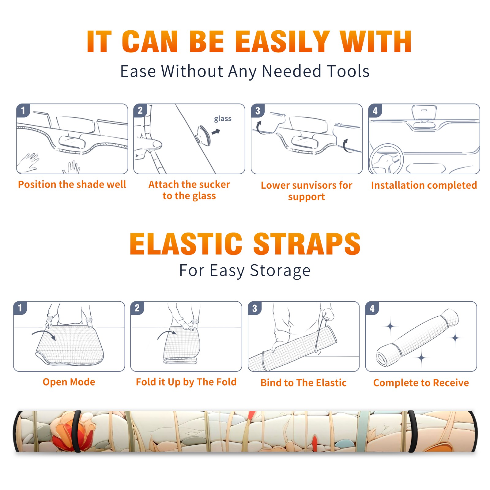 • </b>ZXIVGOQFR Foldable Premium Car Windshield Sunshade is your great solution to reduce your car’s interior temperature dramatically! This is definitely a must-have item for your summer travel! </b> <br> </b>Size: 63"L x 33.5"W </b> <br> </b>Blocking Uv Rays & Heat Insulation</b><br> Our vehicle sunshade provides effective UV, sun, and summer heat protection .Maintains dashboards by preventing fading and cracking <br> </b>Easy-To-Store Folding Design Makes Storage Convenient </b><br> ZXIVGOQFR car sunshades come with removable suction cups and elastic bands that you can install easily and quickly, and the removable suction cups will not leave any marks on your windows when removed. Within seconds, windshield visor can be installed and removed. When not in use,the front windshield can be easily and effectively placed on the door pocket or the dashboard, which is beautiful and does not take up space in the car.<br> <br> </b>PUT UP A 'PROTECTIVE UMBRELLA' FOR YOUR BELOVED CAR!</b>