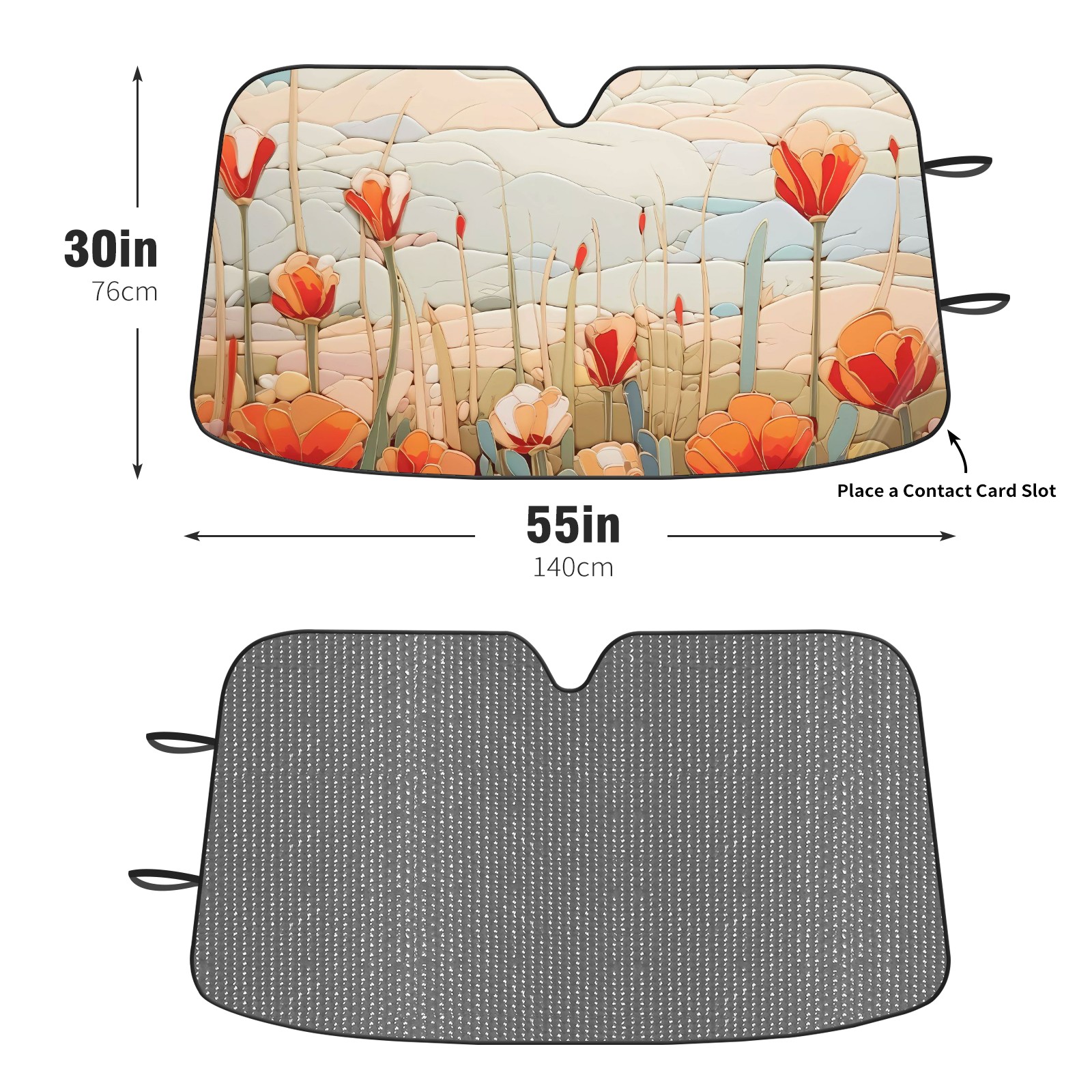 </b>ZXIVGOQFR Foldable Premium Car Windshield Sunshade is your great solution to reduce your car’s interior temperature dramatically! This is definitely a must-have item for your summer travel! </b> <br> </b>Size: 63"L x 33.5"W </b> <br> </b>Blocking Uv Rays & Heat Insulation</b><br> Our vehicle sunshade provides effective UV, sun, and summer heat protection .Maintains dashboards by preventing fading and cracking <br> </b>Easy-To-Store Folding Design Makes Storage Convenient </b><br> ZXIVGOQFR car sunshades come with removable suction cups and elastic bands that you can install easily and quickly, and the removable suction cups will not leave any marks on your windows when removed. Within seconds, windshield visor can be installed and removed. When not in use,the front windshield can be easily and effectively placed on the door pocket or the dashboard, which is beautiful and does not take up space in the car.<br> <br> </b>PUT UP A 'PROTECTIVE UMBRELLA' FOR YOUR BELOVED CAR!</b>