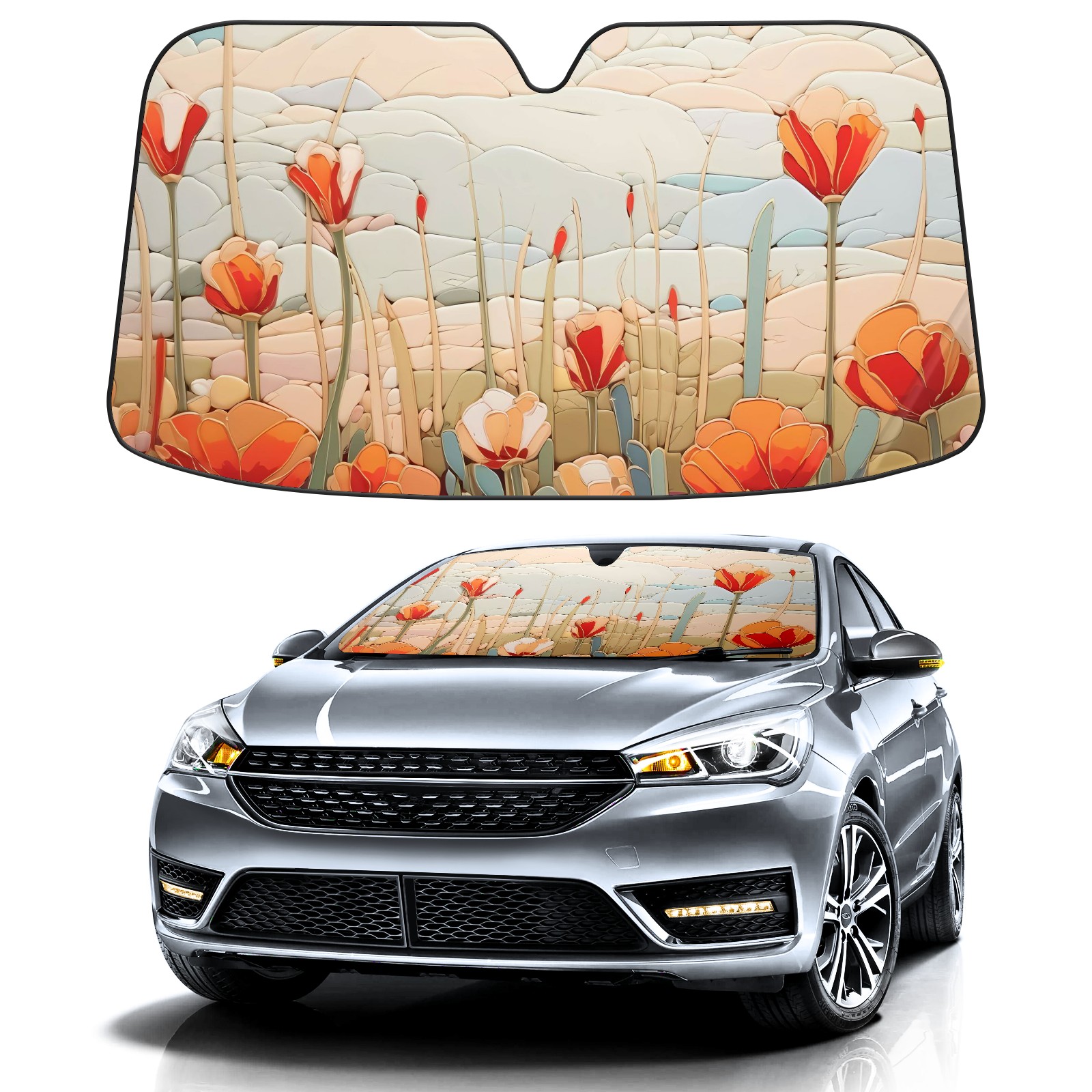 Car Windshield Sun Shade for Front Window Blooming Flowers (14) (1) Foldable Vehicle Windshield Car Sun Visor Covers Automotive Window Protector Car Privacy Sun Blocker