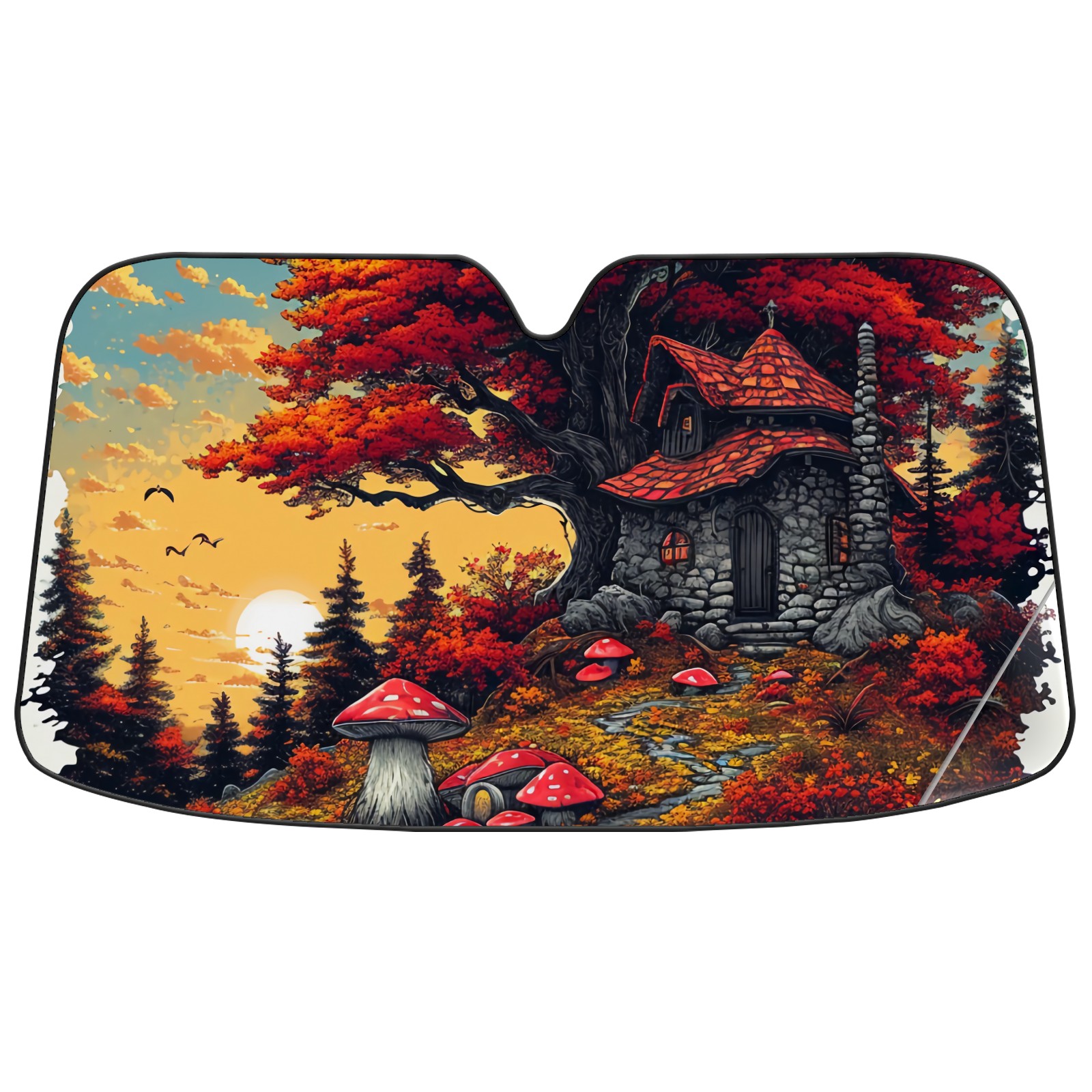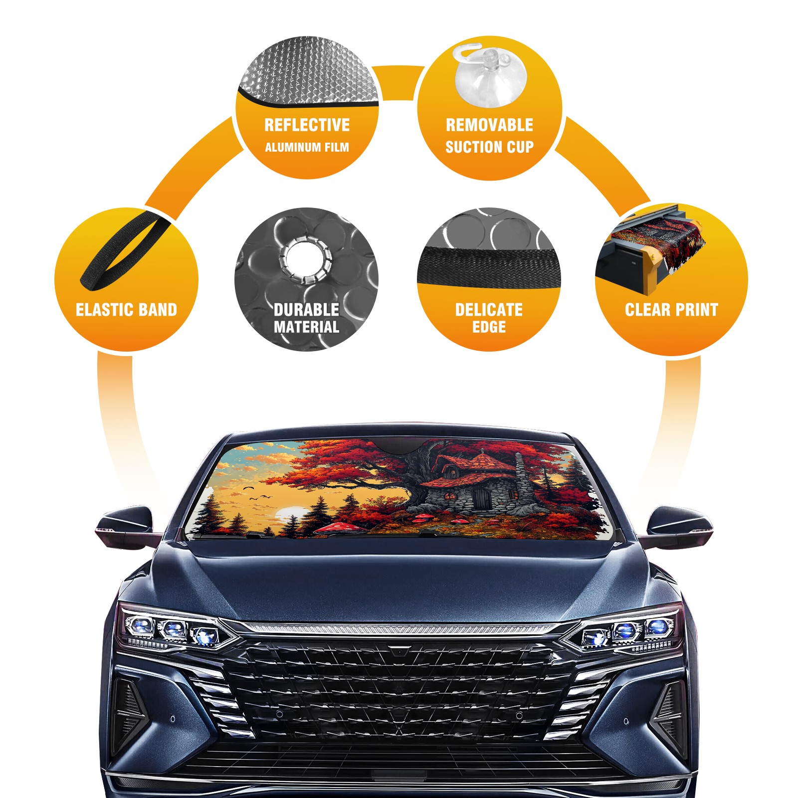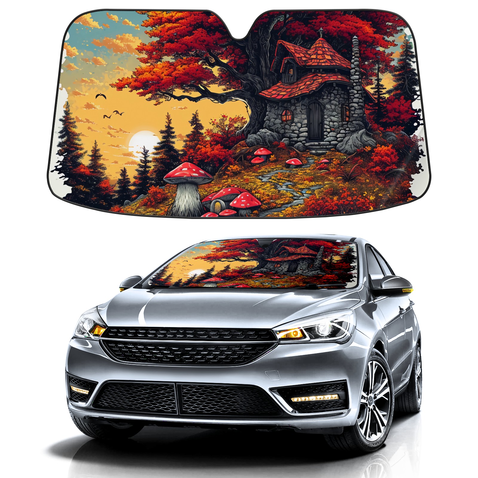 Car Windshield Sun Shade for Front Window Big Red Tree In Autumn Foldable Vehicle Windshield Car Sun Visor Covers Automotive Window Protector Car Privacy Sun Blocker