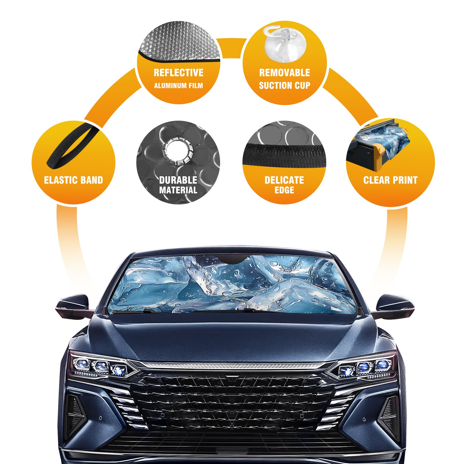 </b>ZXIVGOQFR Foldable Premium Car Windshield Sunshade is your great solution to reduce your car’s interior temperature dramatically! This is definitely a must-have item for your summer travel! </b> <br> </b>Size: 63"L x 33.5"W </b> <br> </b>Blocking Uv Rays & Heat Insulation</b><br> Our vehicle sunshade provides effective UV, sun, and summer heat protection .Maintains dashboards by preventing fading and cracking <br> </b>Easy-To-Store Folding Design Makes Storage Convenient </b><br> ZXIVGOQFR car sunshades come with removable suction cups and elastic bands that you can install easily and quickly, and the removable suction cups will not leave any marks on your windows when removed. Within seconds, windshield visor can be installed and removed. When not in use,the front windshield can be easily and effectively placed on the door pocket or the dashboard, which is beautiful and does not take up space in the car.<br> <br> </b>PUT UP A 'PROTECTIVE UMBRELLA' FOR YOUR BELOVED CAR!</b>