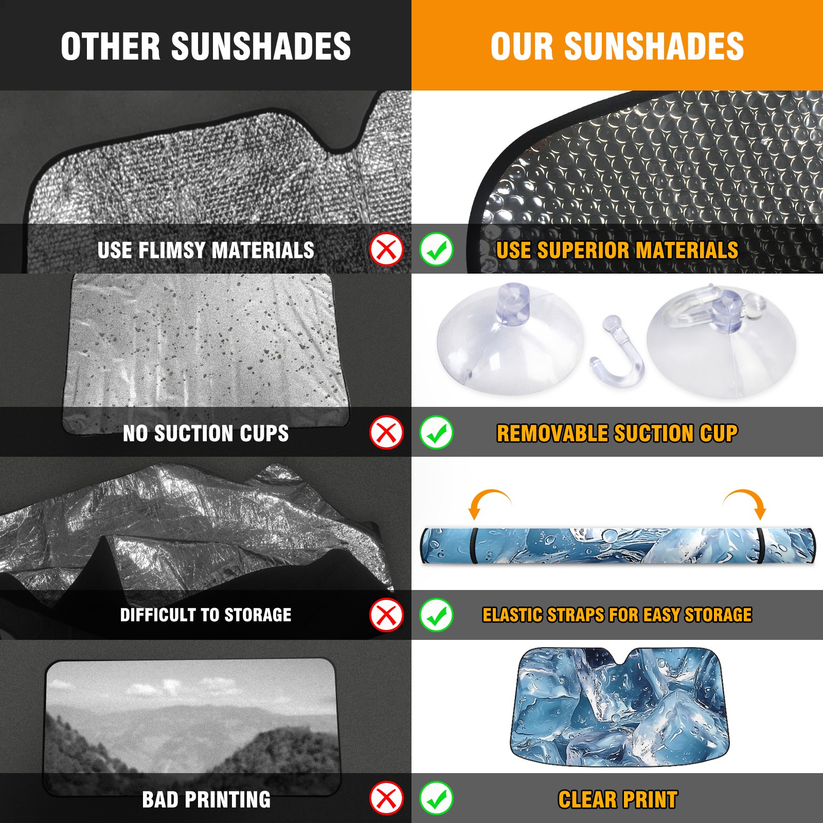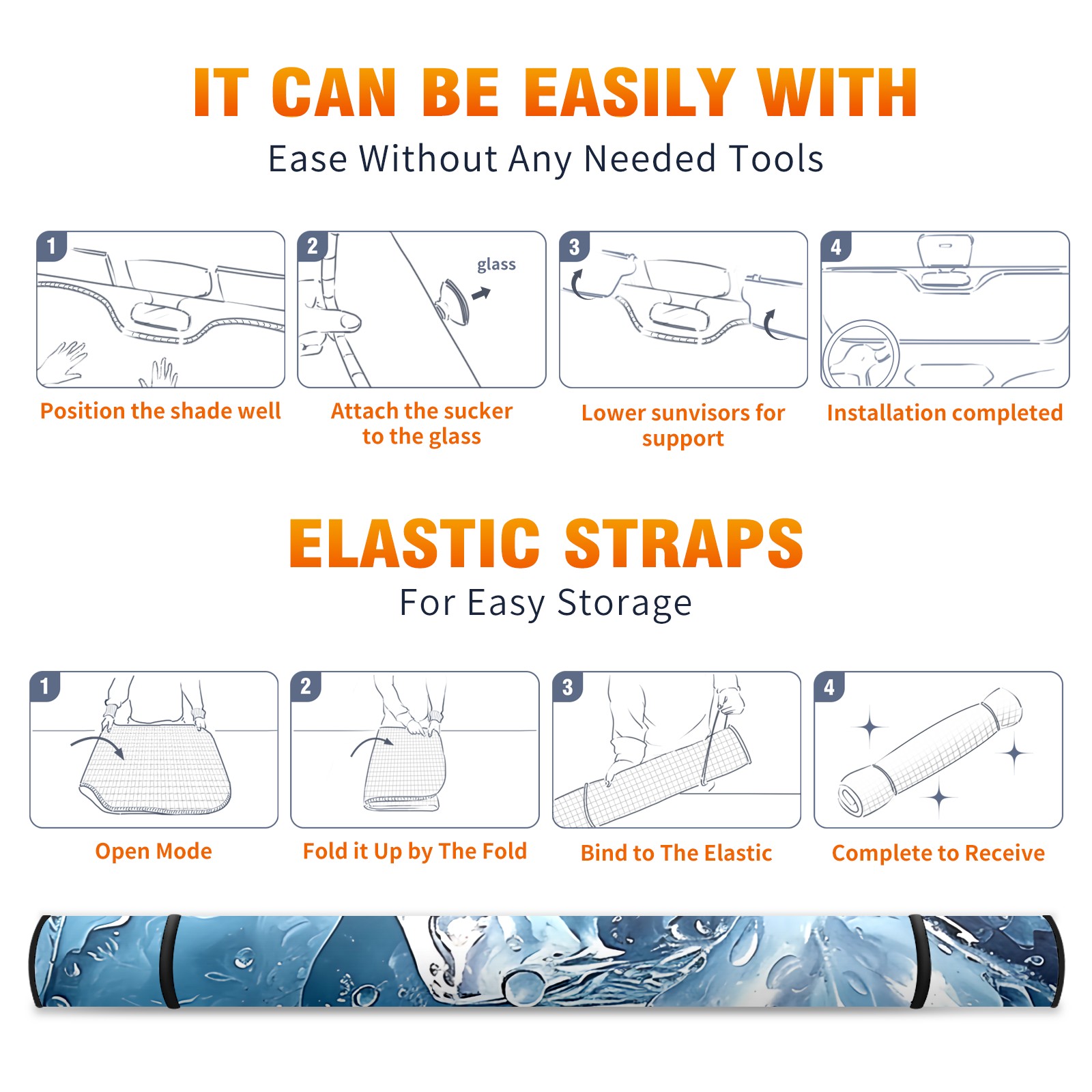 • </b>ZXIVGOQFR Foldable Premium Car Windshield Sunshade is your great solution to reduce your car’s interior temperature dramatically! This is definitely a must-have item for your summer travel! </b> <br> </b>Size: 63"L x 33.5"W </b> <br> </b>Blocking Uv Rays & Heat Insulation</b><br> Our vehicle sunshade provides effective UV, sun, and summer heat protection .Maintains dashboards by preventing fading and cracking <br> </b>Easy-To-Store Folding Design Makes Storage Convenient </b><br> ZXIVGOQFR car sunshades come with removable suction cups and elastic bands that you can install easily and quickly, and the removable suction cups will not leave any marks on your windows when removed. Within seconds, windshield visor can be installed and removed. When not in use,the front windshield can be easily and effectively placed on the door pocket or the dashboard, which is beautiful and does not take up space in the car.<br> <br> </b>PUT UP A 'PROTECTIVE UMBRELLA' FOR YOUR BELOVED CAR!</b>