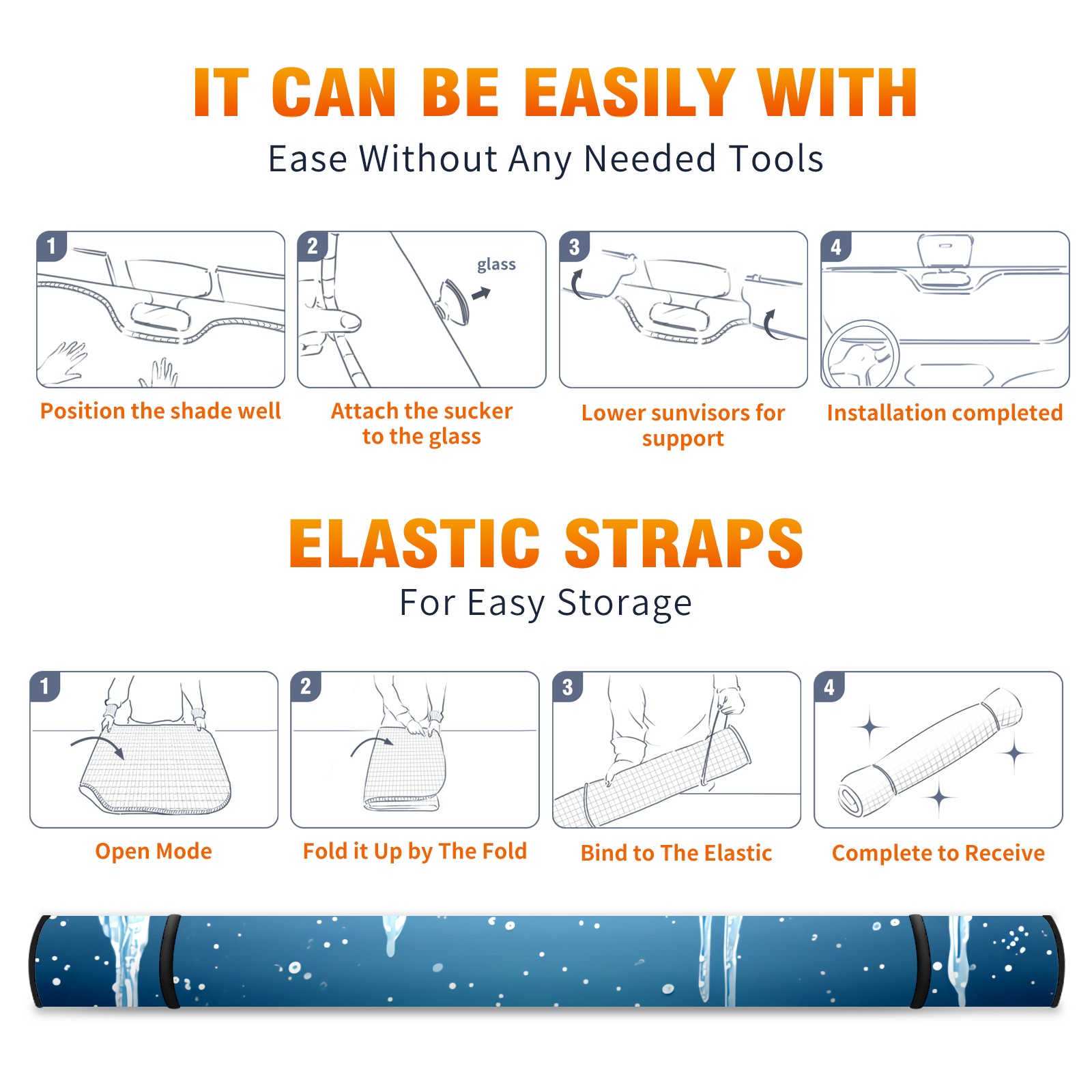 • </b>ZXIVGOQFR Foldable Premium Car Windshield Sunshade is your great solution to reduce your car’s interior temperature dramatically! This is definitely a must-have item for your summer travel! </b> <br> </b>Size: 63"L x 33.5"W </b> <br> </b>Blocking Uv Rays & Heat Insulation</b><br> Our vehicle sunshade provides effective UV, sun, and summer heat protection .Maintains dashboards by preventing fading and cracking <br> </b>Easy-To-Store Folding Design Makes Storage Convenient </b><br> ZXIVGOQFR car sunshades come with removable suction cups and elastic bands that you can install easily and quickly, and the removable suction cups will not leave any marks on your windows when removed. Within seconds, windshield visor can be installed and removed. When not in use,the front windshield can be easily and effectively placed on the door pocket or the dashboard, which is beautiful and does not take up space in the car.<br> <br> </b>PUT UP A 'PROTECTIVE UMBRELLA' FOR YOUR BELOVED CAR!</b>