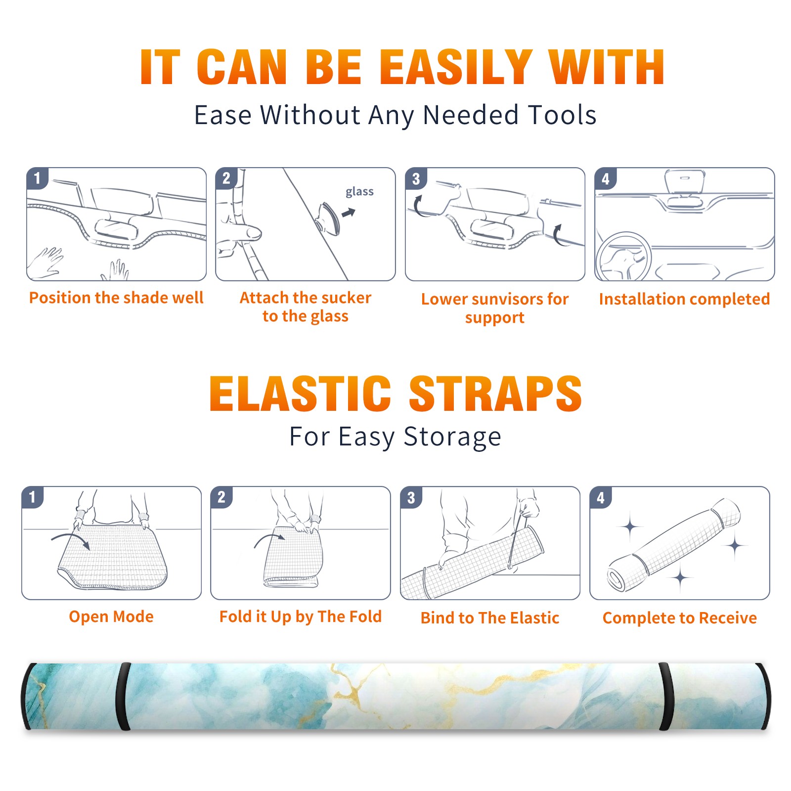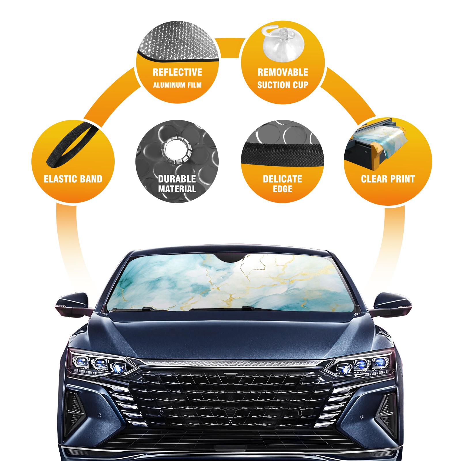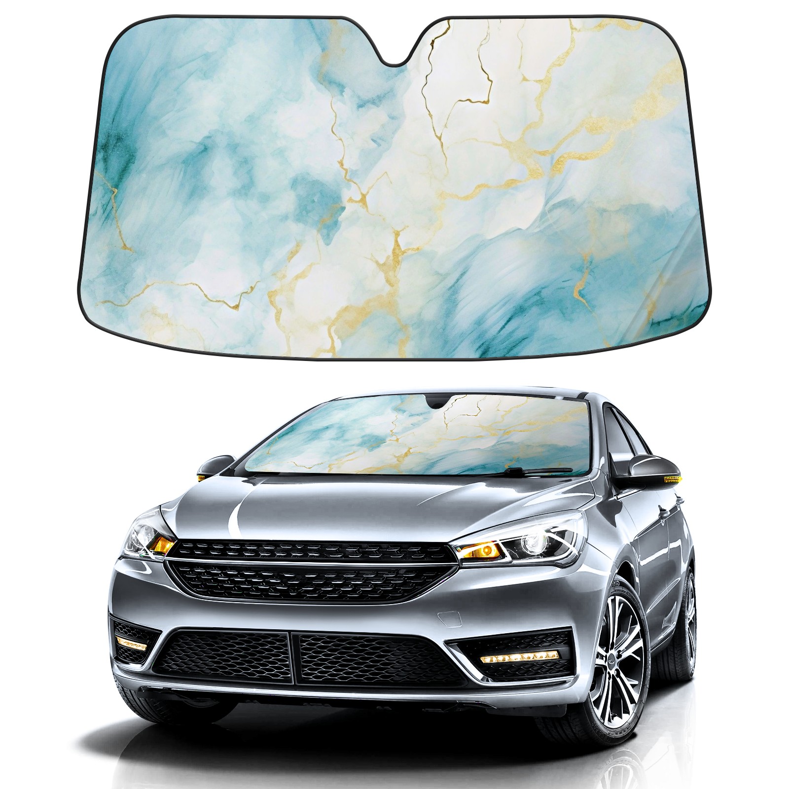 Car Windshield Sun Shade for Front Window Marble Grain Foldable Vehicle Windshield Car Sun Visor Covers Automotive Window Protector Car Privacy Sun Blocker