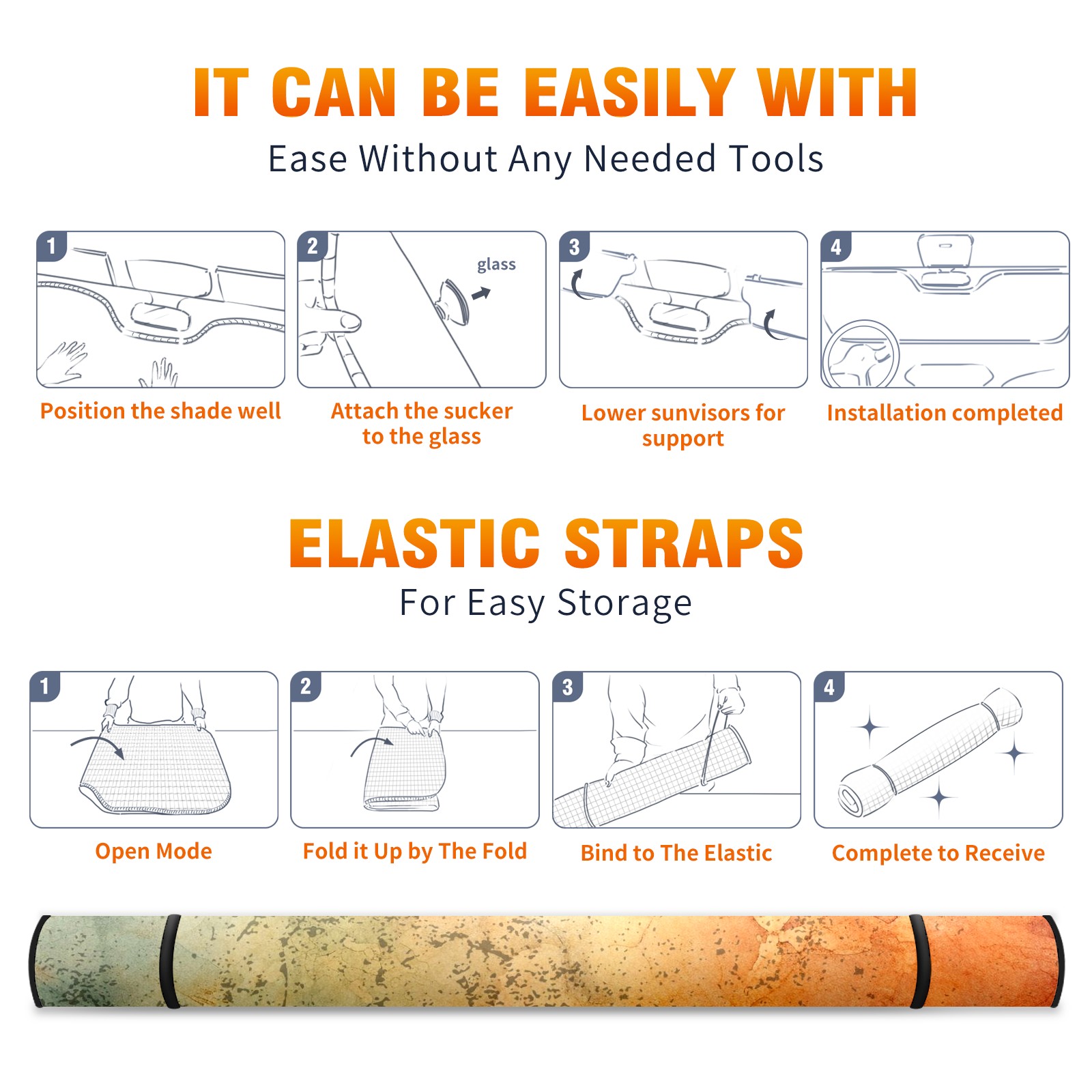 • </b>ZXIVGOQFR Foldable Premium Car Windshield Sunshade is your great solution to reduce your car’s interior temperature dramatically! This is definitely a must-have item for your summer travel! </b> <br> </b>Size: 63"L x 33.5"W </b> <br> </b>Blocking Uv Rays & Heat Insulation</b><br> Our vehicle sunshade provides effective UV, sun, and summer heat protection .Maintains dashboards by preventing fading and cracking <br> </b>Easy-To-Store Folding Design Makes Storage Convenient </b><br> ZXIVGOQFR car sunshades come with removable suction cups and elastic bands that you can install easily and quickly, and the removable suction cups will not leave any marks on your windows when removed. Within seconds, windshield visor can be installed and removed. When not in use,the front windshield can be easily and effectively placed on the door pocket or the dashboard, which is beautiful and does not take up space in the car.<br> <br> </b>PUT UP A 'PROTECTIVE UMBRELLA' FOR YOUR BELOVED CAR!</b>
