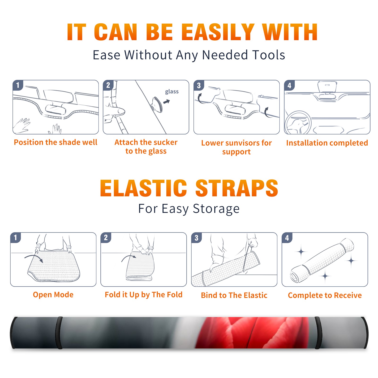 • </b>ZXIVGOQFR Foldable Premium Car Windshield Sunshade is your great solution to reduce your car’s interior temperature dramatically! This is definitely a must-have item for your summer travel! </b> <br> </b>Size: 63"L x 33.5"W </b> <br> </b>Blocking Uv Rays & Heat Insulation</b><br> Our vehicle sunshade provides effective UV, sun, and summer heat protection .Maintains dashboards by preventing fading and cracking <br> </b>Easy-To-Store Folding Design Makes Storage Convenient </b><br> ZXIVGOQFR car sunshades come with removable suction cups and elastic bands that you can install easily and quickly, and the removable suction cups will not leave any marks on your windows when removed. Within seconds, windshield visor can be installed and removed. When not in use,the front windshield can be easily and effectively placed on the door pocket or the dashboard, which is beautiful and does not take up space in the car.<br> <br> </b>PUT UP A 'PROTECTIVE UMBRELLA' FOR YOUR BELOVED CAR!</b>