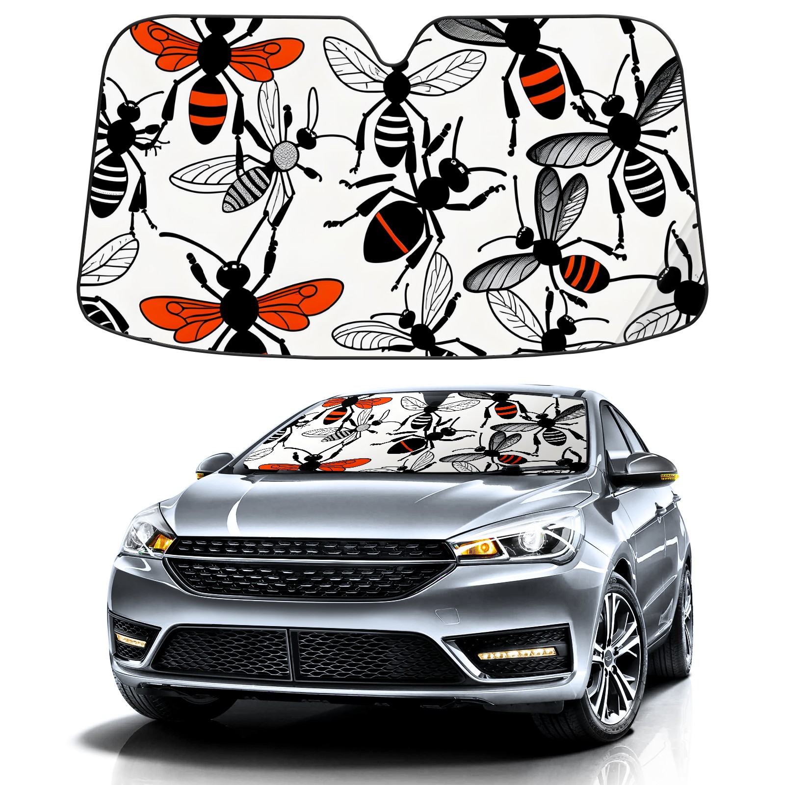 Car Windshield Sun Shade for Front Window Bee Foldable Vehicle Windshield Car Sun Visor Covers Automotive Window Protector Car Privacy Sun Blocker