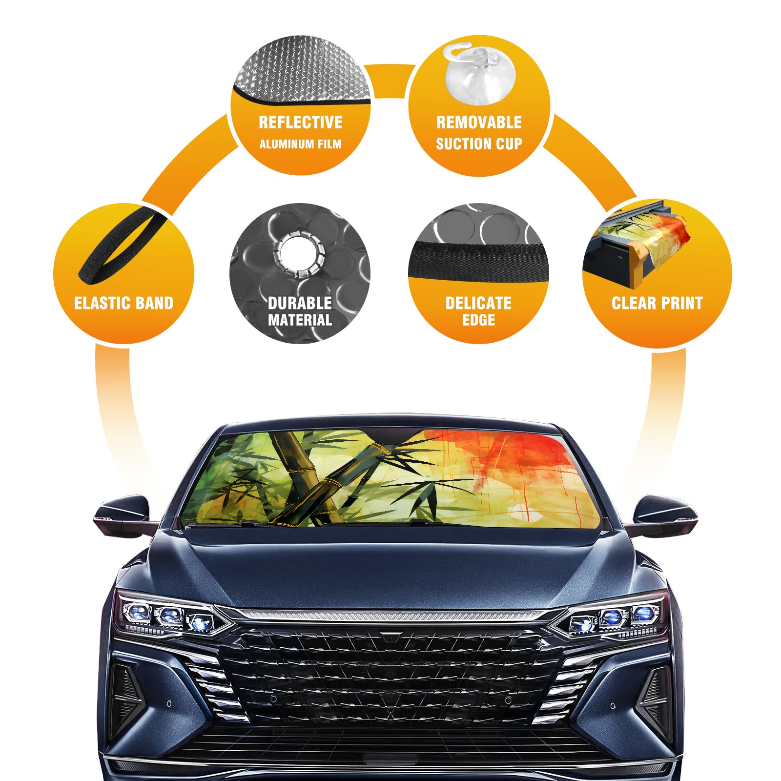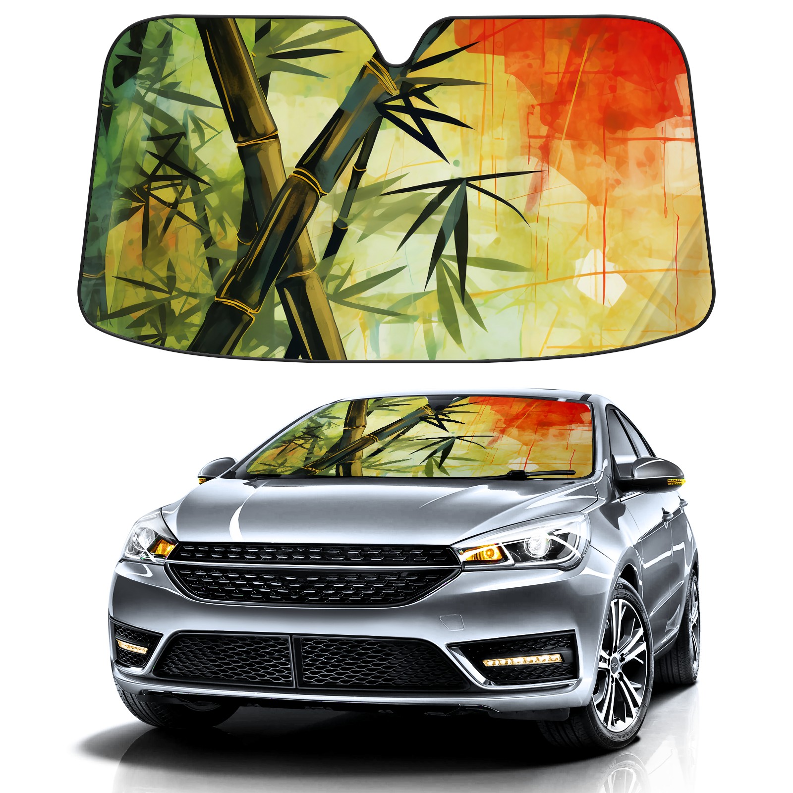 Car Windshield Sun Shade for Front Window Bamboo Foldable Vehicle Windshield Car Sun Visor Covers Automotive Window Protector Car Privacy Sun Blocker