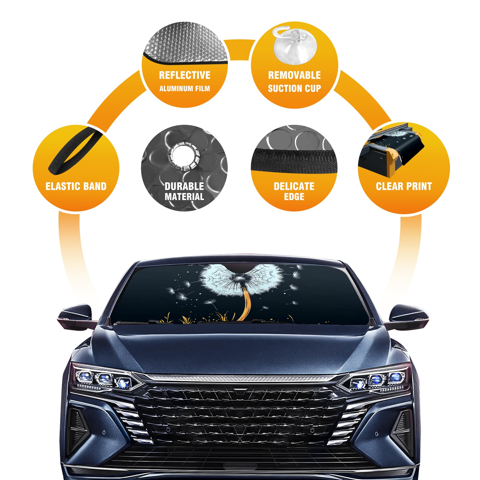 Car Windshield Sun Shade for Front Window Dandelion Foldable Vehicle Windshield Car Sun Visor Covers Automotive Window Protector Car Privacy Sun Blocker