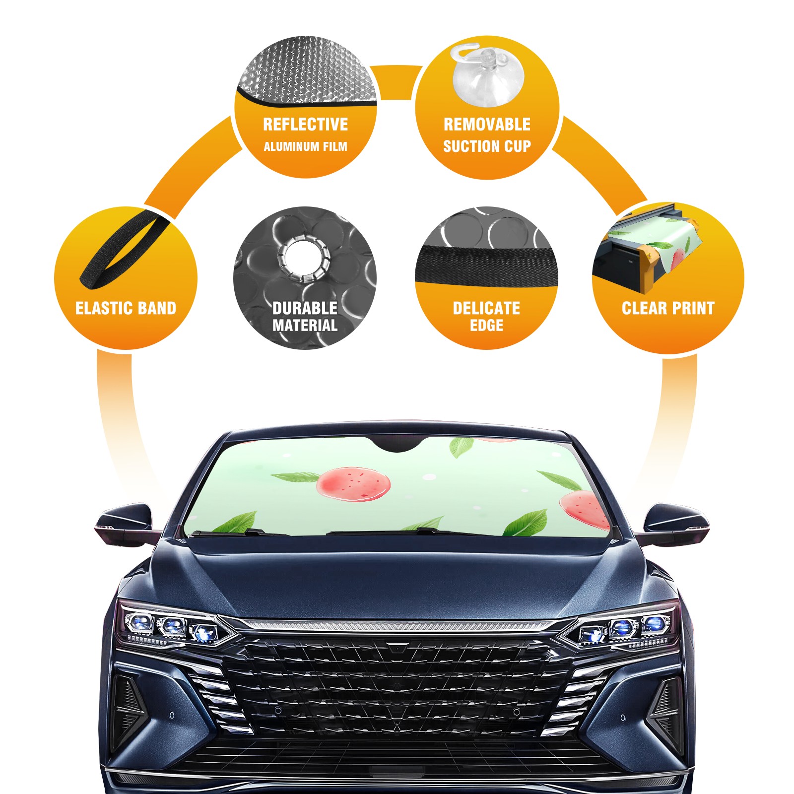 • </b>ZXIVGOQFR Foldable Premium Car Windshield Sunshade is your great solution to reduce your car’s interior temperature dramatically! This is definitely a must-have item for your summer travel! </b> <br> </b>Size: 63"L x 33.5"W </b> <br> </b>Blocking Uv Rays & Heat Insulation</b><br> Our vehicle sunshade provides effective UV, sun, and summer heat protection .Maintains dashboards by preventing fading and cracking <br> </b>Easy-To-Store Folding Design Makes Storage Convenient </b><br> ZXIVGOQFR car sunshades come with removable suction cups and elastic bands that you can install easily and quickly, and the removable suction cups will not leave any marks on your windows when removed. Within seconds, windshield visor can be installed and removed. When not in use,the front windshield can be easily and effectively placed on the door pocket or the dashboard, which is beautiful and does not take up space in the car.<br> <br> </b>PUT UP A 'PROTECTIVE UMBRELLA' FOR YOUR BELOVED CAR!</b>