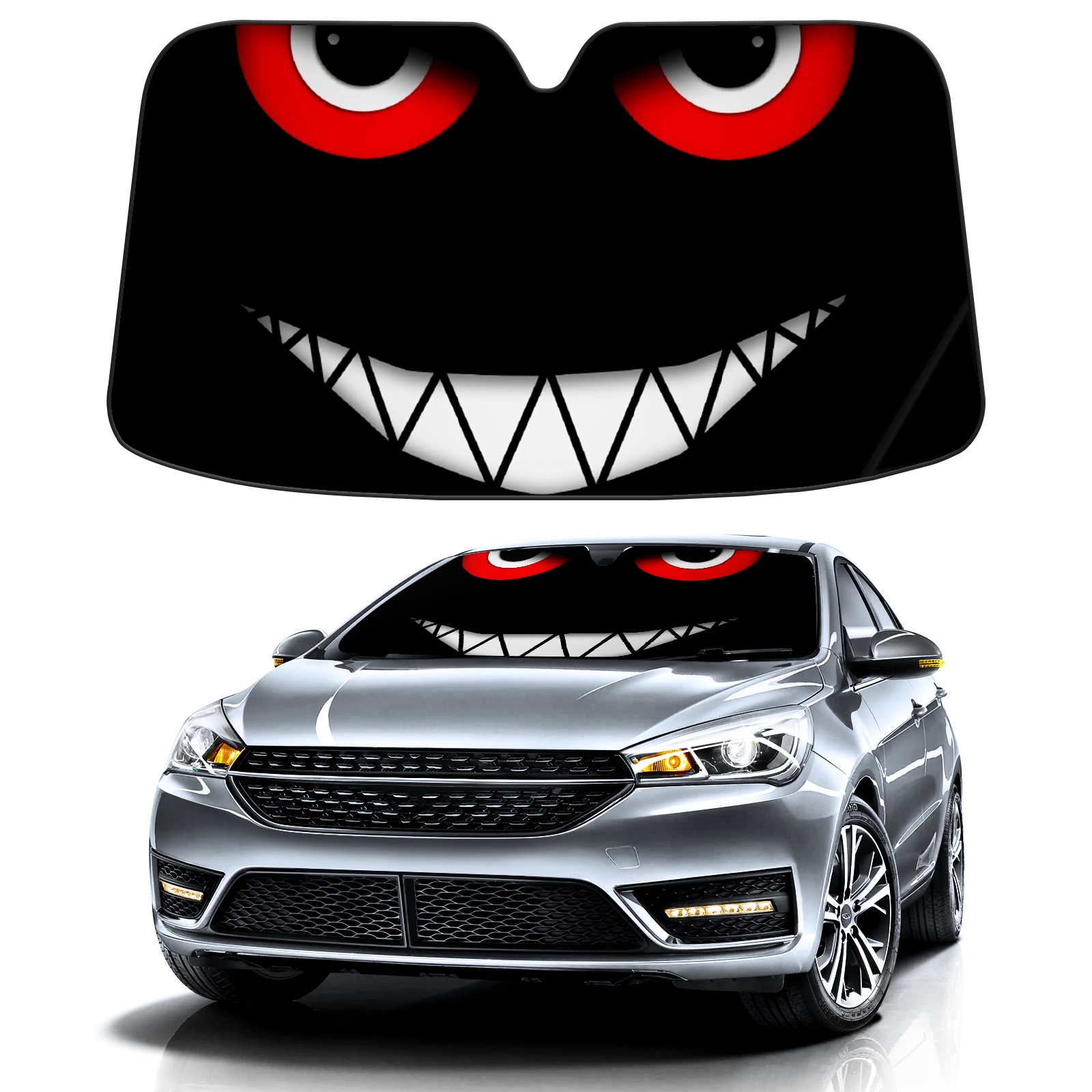 Car Windshield Sun Shade for Front Window Red Cartoon Eyes Foldable Vehicle Windshield Car Sun Visor Covers Automotive Window Protector Car Privacy Sun Blocker