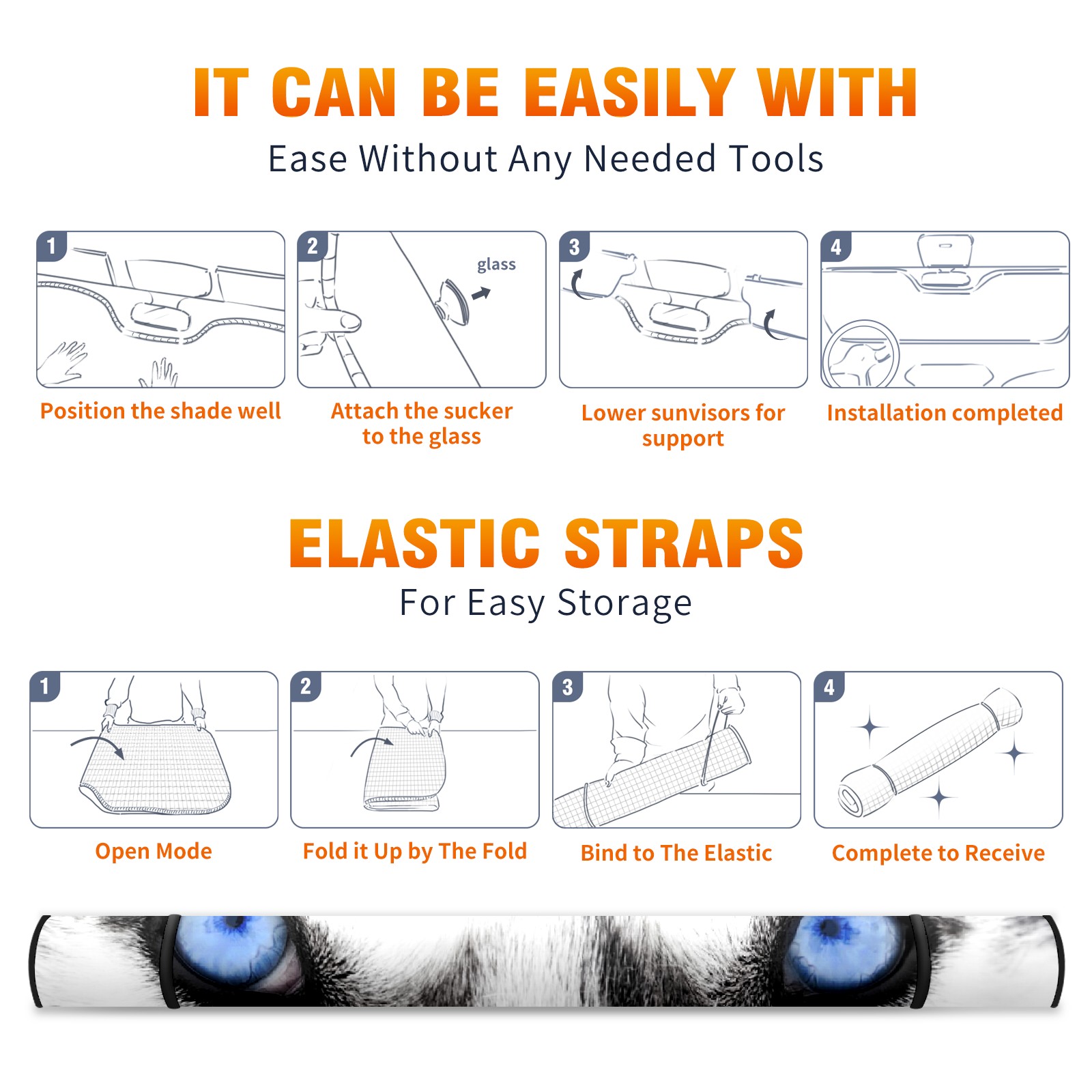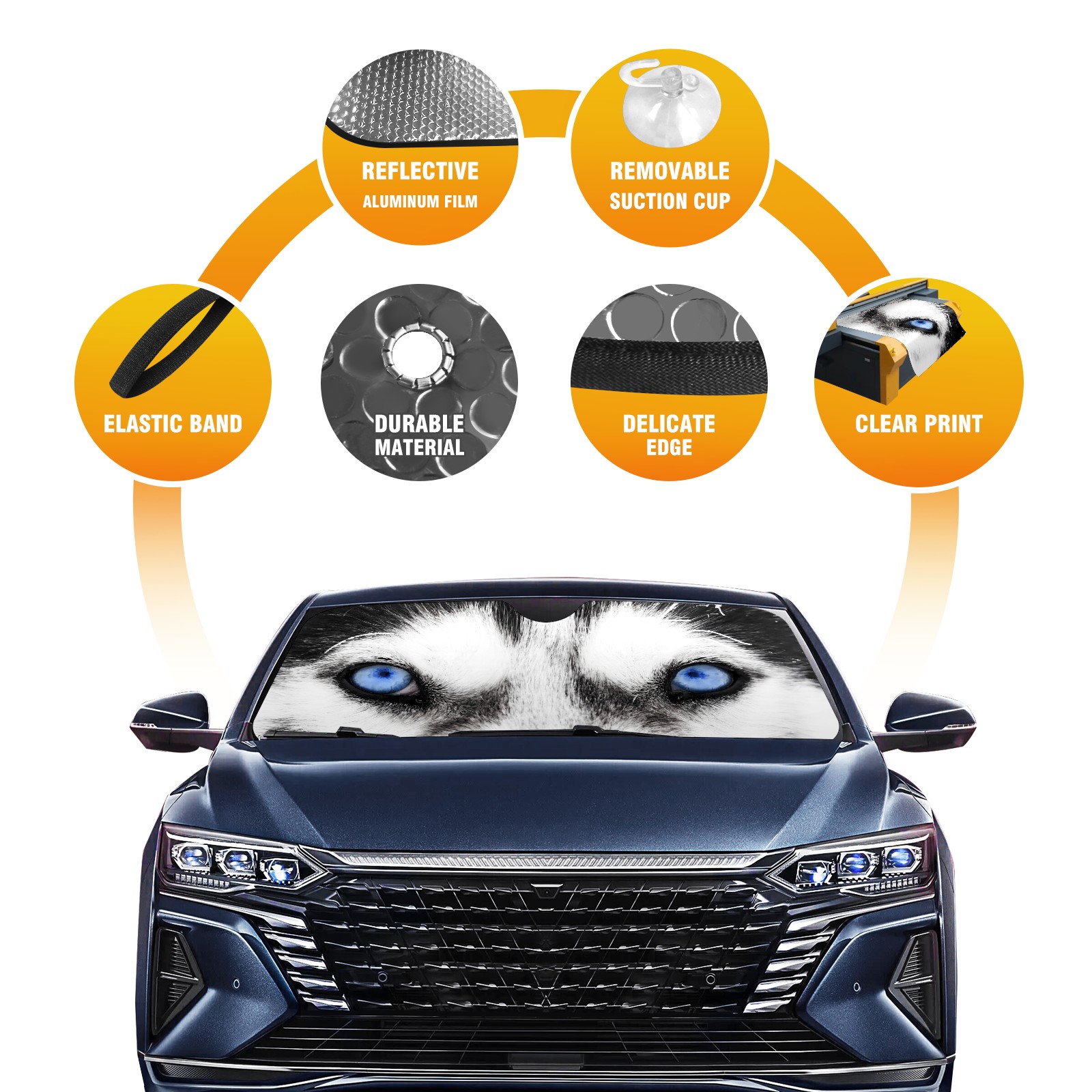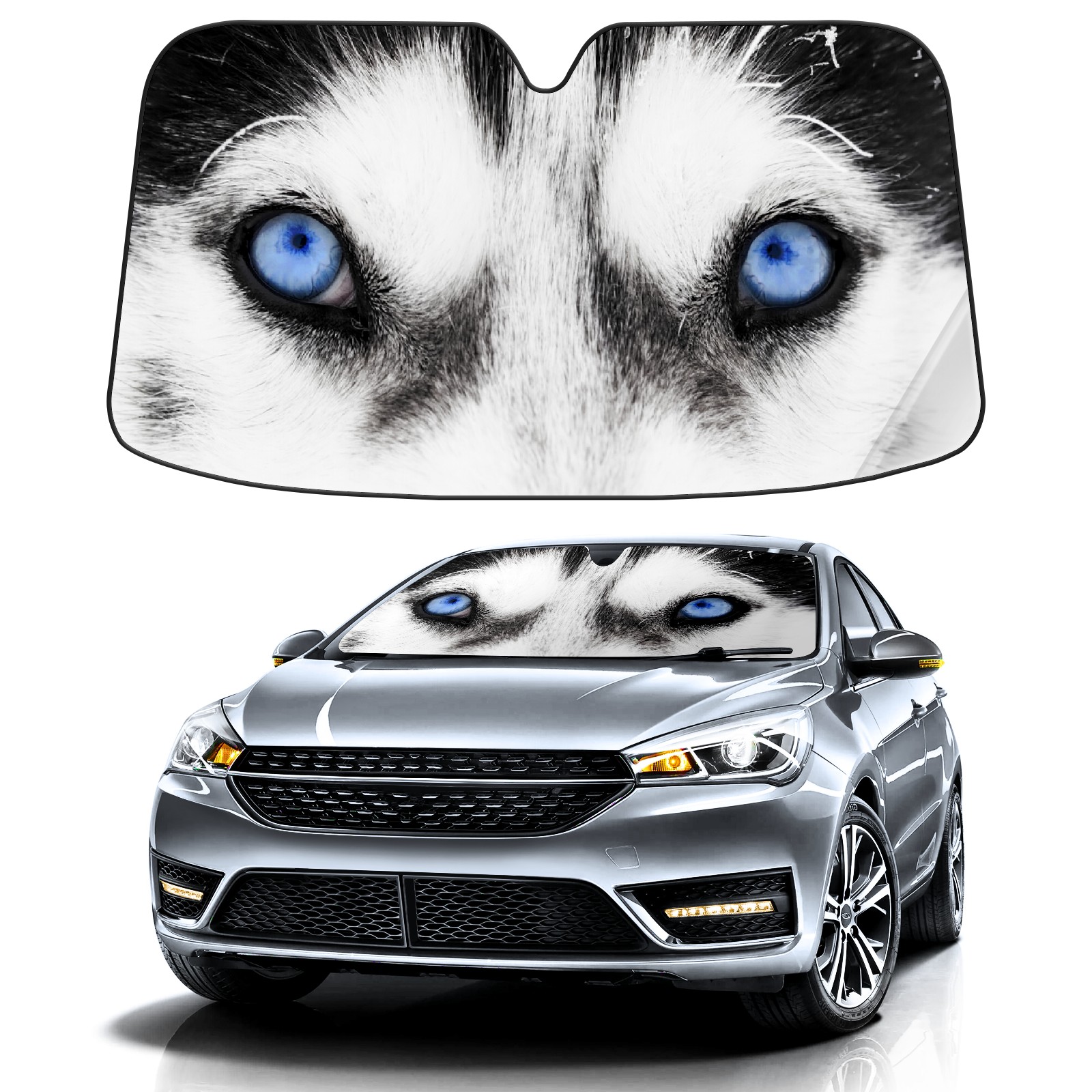 Car Windshield Sun Shade for Front Window Blue Husky Dog Eyes Foldable Vehicle Windshield Car Sun Visor Covers Automotive Window Protector Car Privacy Sun Blocker