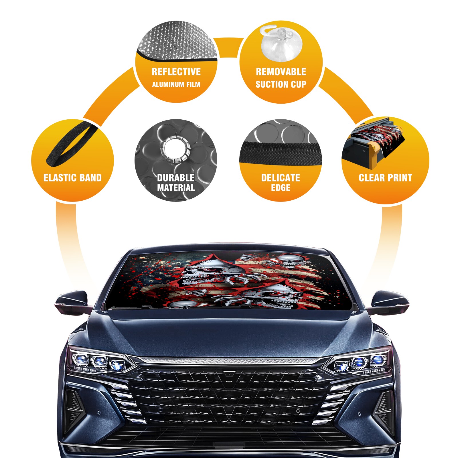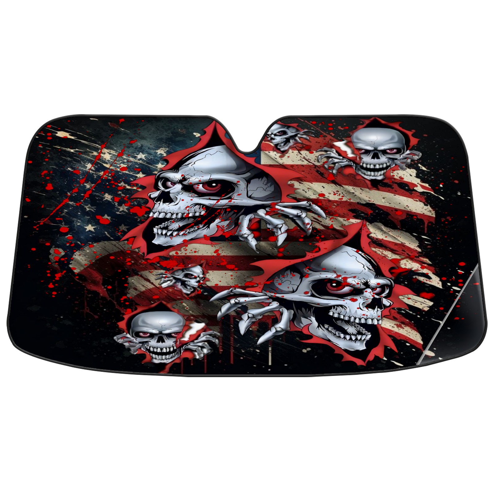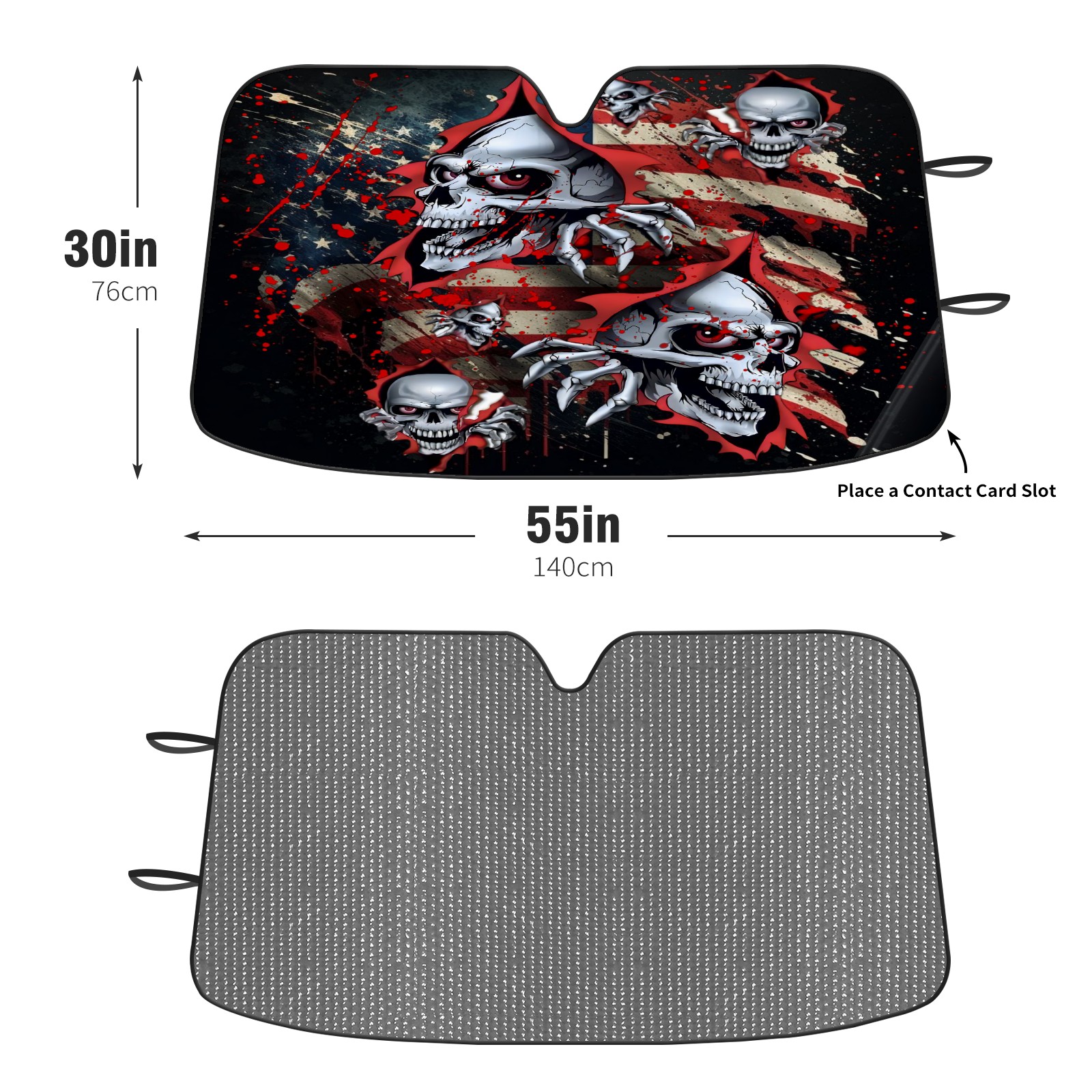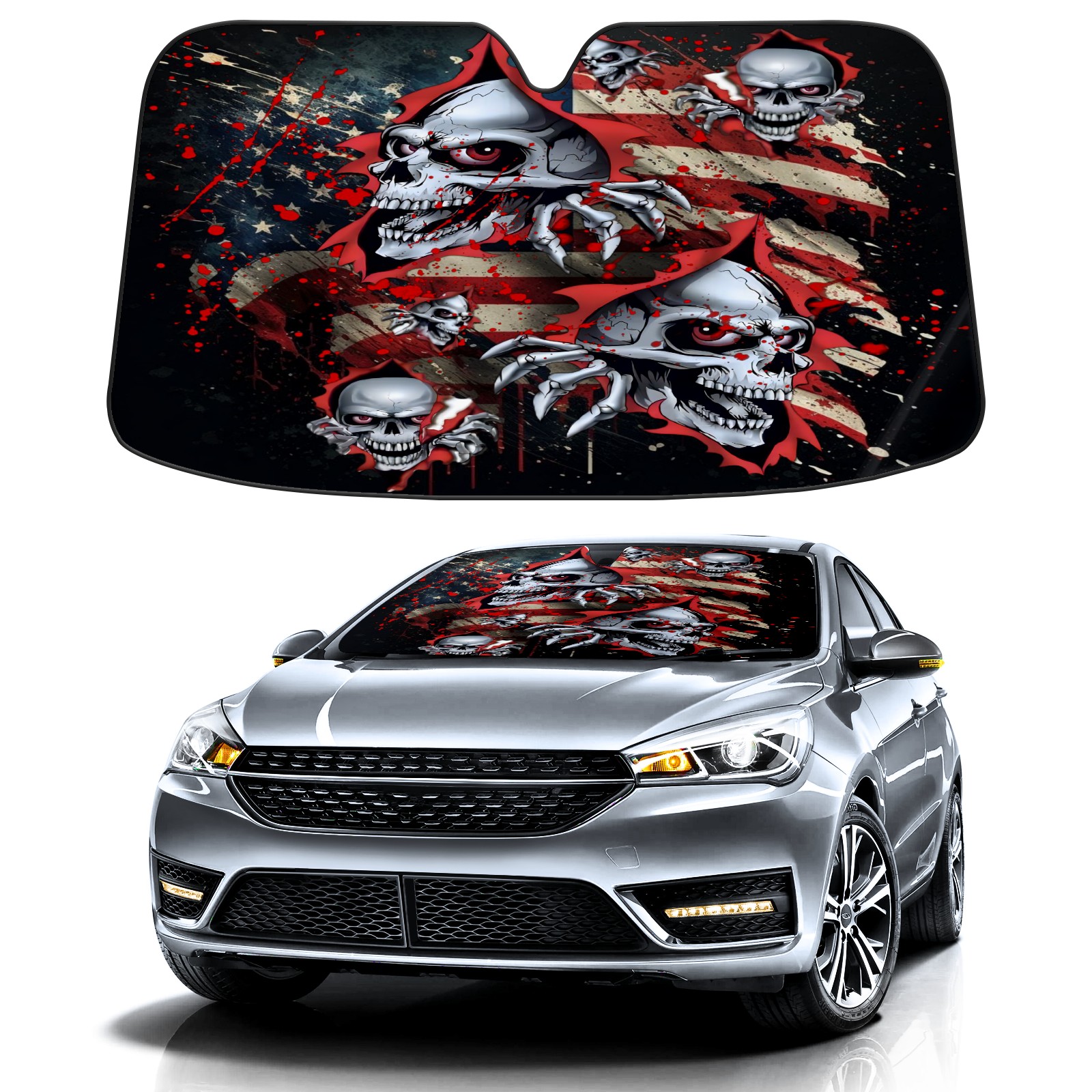 Car Windshield Sun Shade for Front Window American Flag Skull Foldable Vehicle Windshield Car Sun Visor Covers Automotive Window Protector Car Privacy Sun Blocker