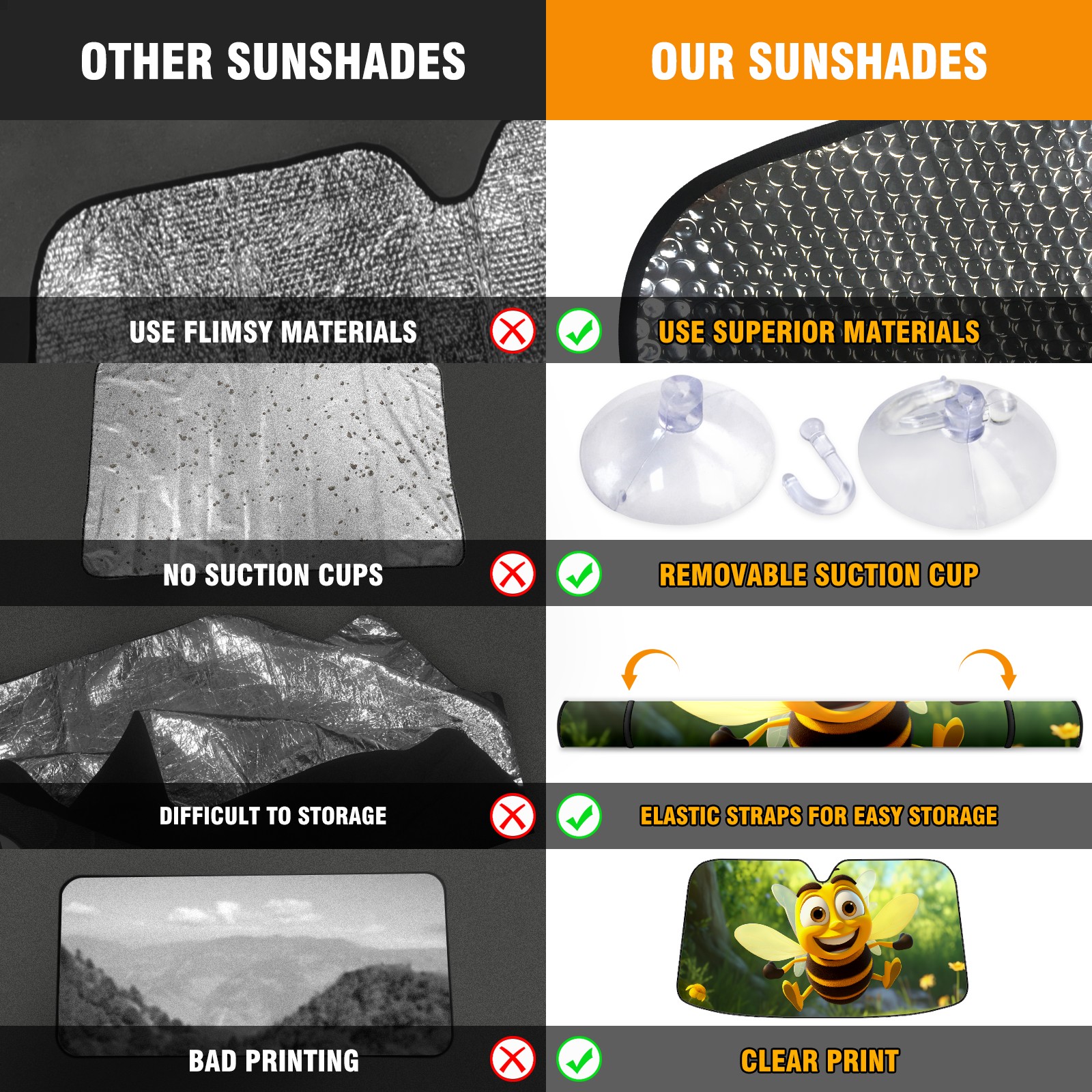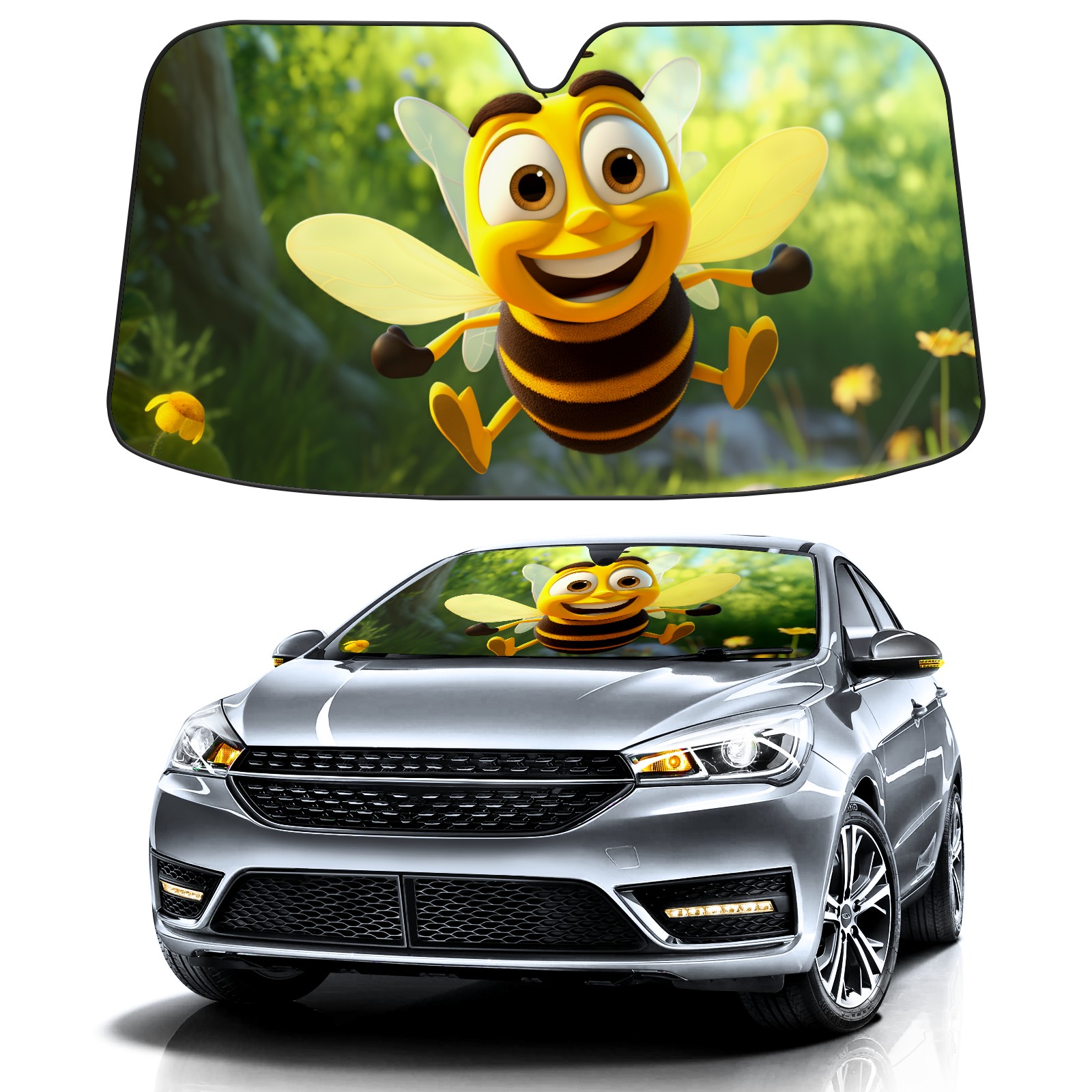 Car Windshield Sun Shade for Front Window Honeybee Foldable Vehicle Windshield Car Sun Visor Covers Automotive Window Protector Car Privacy Sun Blocker