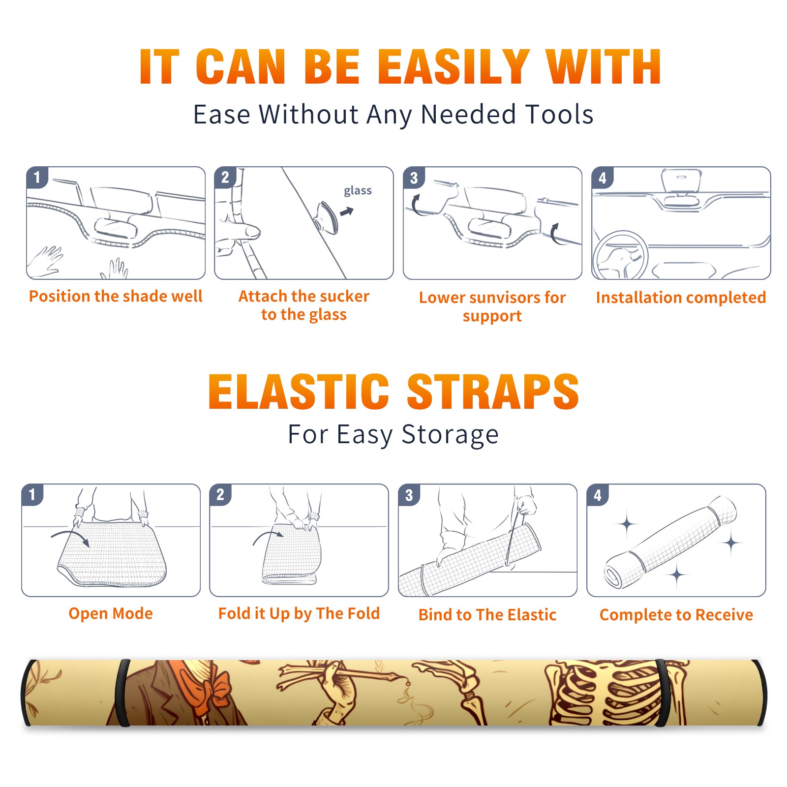 Car Windshield Sun Shade for Front Window Skull Foldable Vehicle Windshield Car Sun Visor Covers Automotive Window Protector Car Privacy Sun Blocker