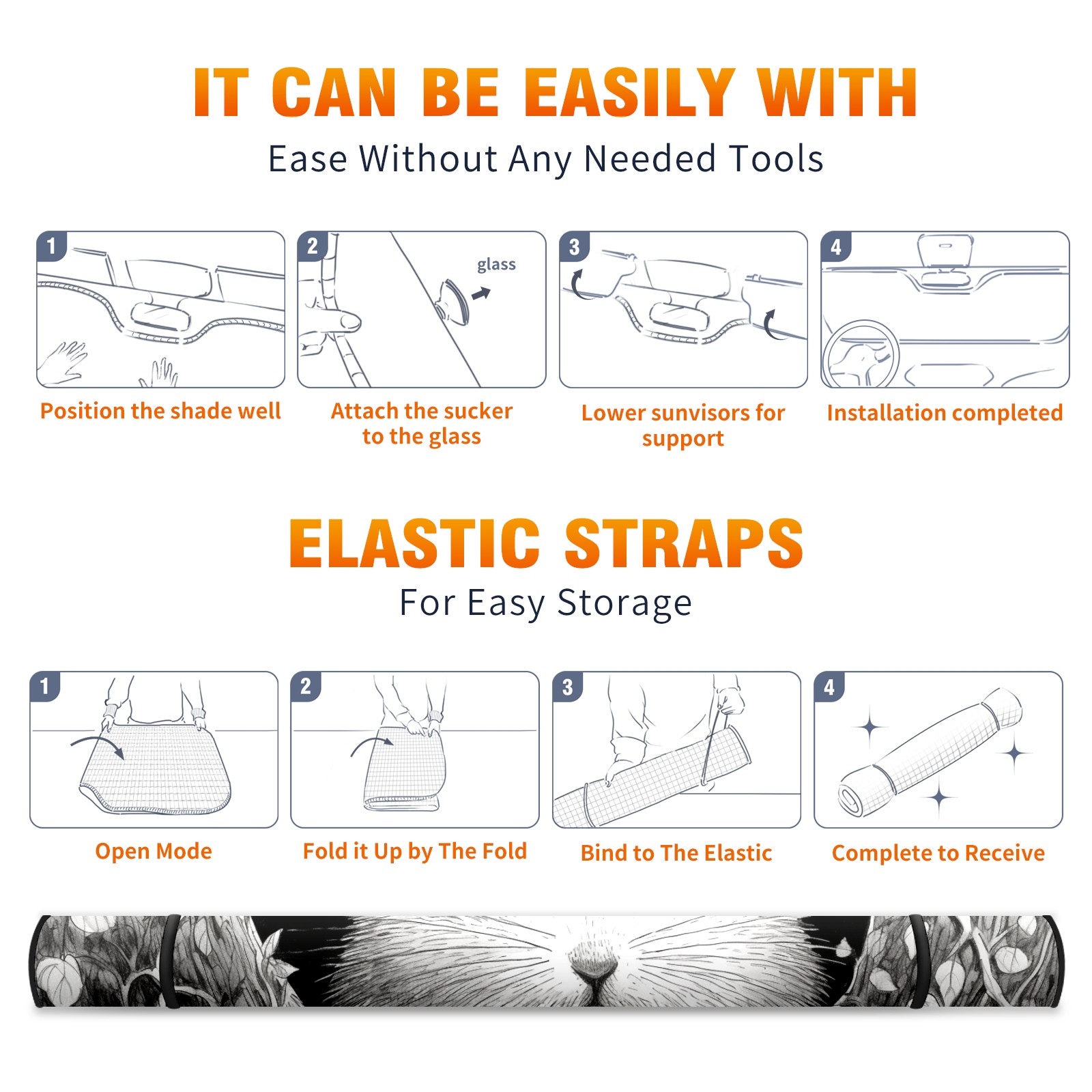 • </b>ZXIVGOQFR Foldable Premium Car Windshield Sunshade is your great solution to reduce your car’s interior temperature dramatically! This is definitely a must-have item for your summer travel! </b> <br> ●</b>Size: 63"L x 33.5"W </b> <br> ●</b>Blocking Uv Rays & Heat Insulation</b><br> Our vehicle sunshade provides effective UV, sun, and summer heat protection .Maintains dashboards by preventing fading and cracking <br> ●</b>Easy-To-Store Folding Design Makes Storage Convenient </b><br> ZXIVGOQFR car sunshades come with removable suction cups and elastic bands that you can install easily and quickly, and the removable suction cups will not leave any marks on your windows when removed. Within seconds, windshield visor can be installed and removed. When not in use,the front windshield can be easily and effectively placed on the door pocket or the dashboard, which is beautiful and does not take up space in the car.<br> <br> </b>PUT UP A 'PROTECTIVE UMBRELLA' FOR YOUR BELOVED CAR!</b>