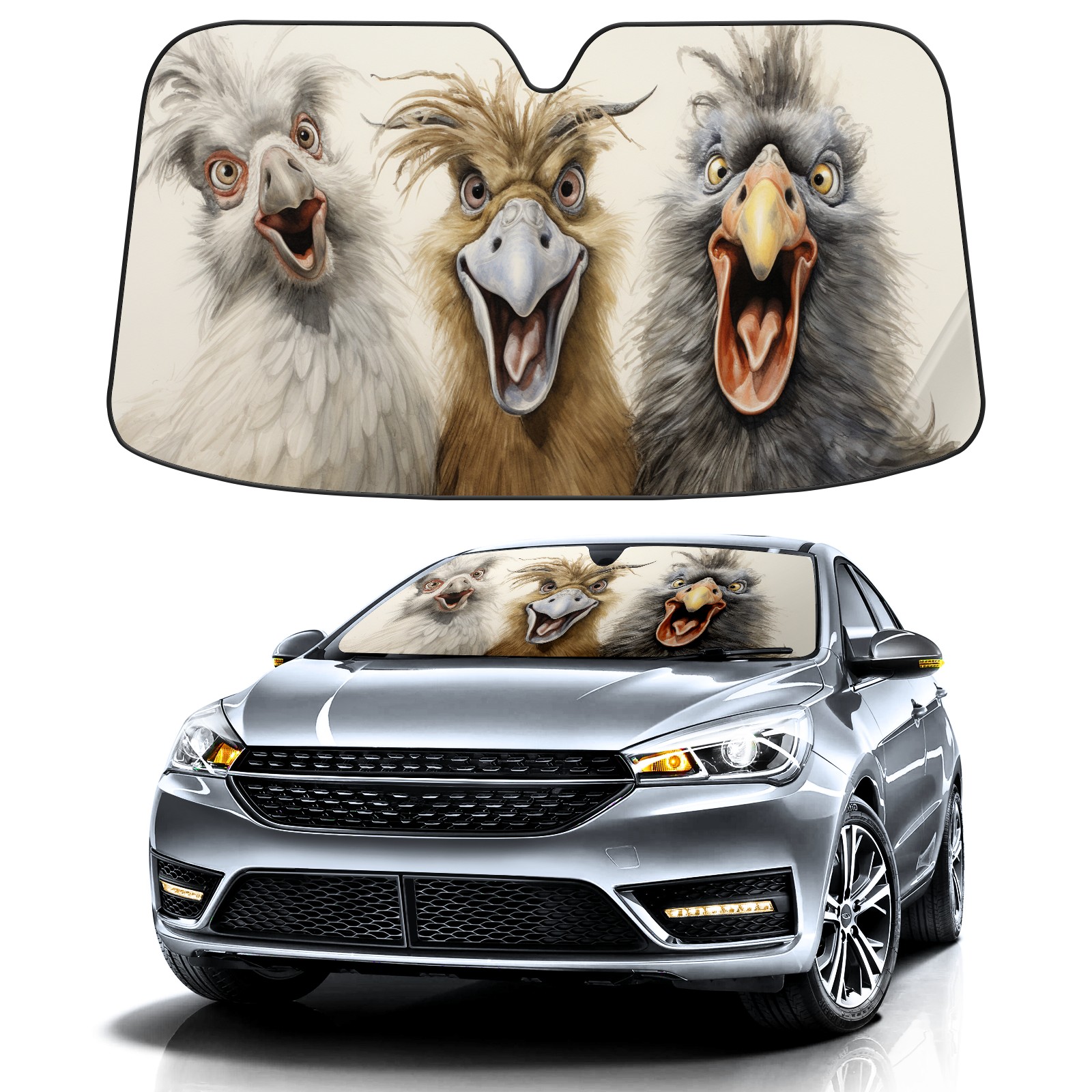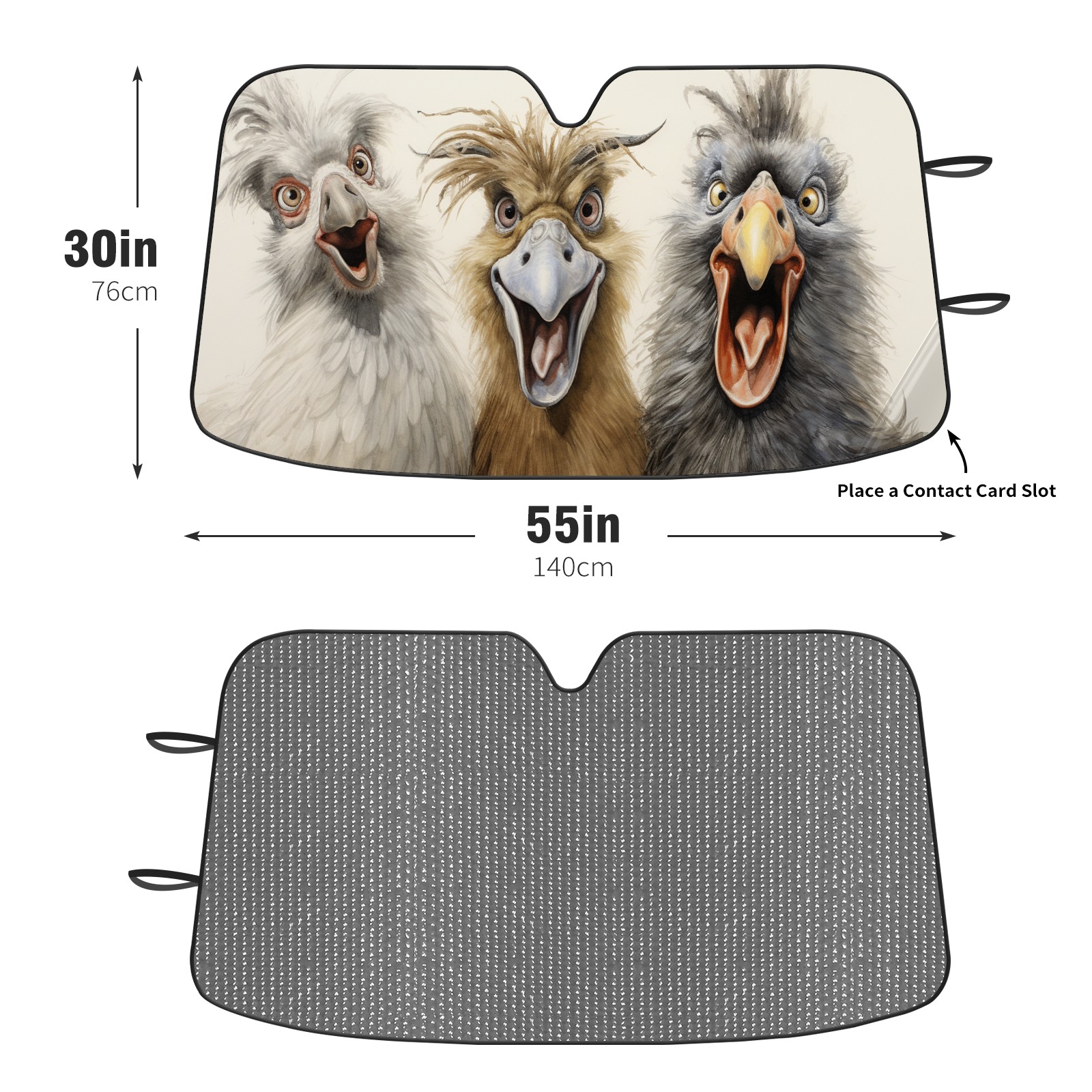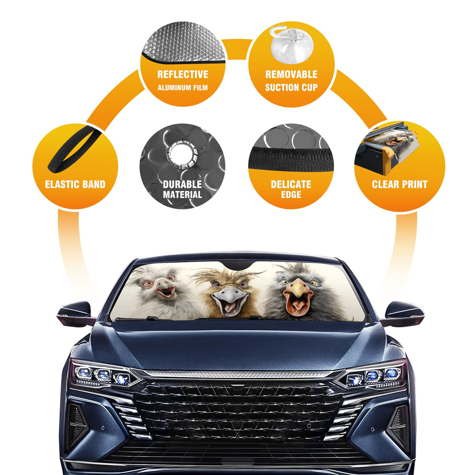 </b>ZXIVGOQFR Foldable Premium Car Windshield Sunshade is your great solution to reduce your car’s interior temperature dramatically! This is definitely a must-have item for your summer travel! </b> <br> ●</b>Size: 63"L x 33.5"W </b> <br> ●</b>Blocking Uv Rays & Heat Insulation</b><br> Our vehicle sunshade provides effective UV, sun, and summer heat protection .Maintains dashboards by preventing fading and cracking <br> ●</b>Easy-To-Store Folding Design Makes Storage Convenient </b><br> ZXIVGOQFR car sunshades come with removable suction cups and elastic bands that you can install easily and quickly, and the removable suction cups will not leave any marks on your windows when removed. Within seconds, windshield visor can be installed and removed. When not in use,the front windshield can be easily and effectively placed on the door pocket or the dashboard, which is beautiful and does not take up space in the car.<br> <br> </b>PUT UP A 'PROTECTIVE UMBRELLA' FOR YOUR BELOVED CAR!</b>