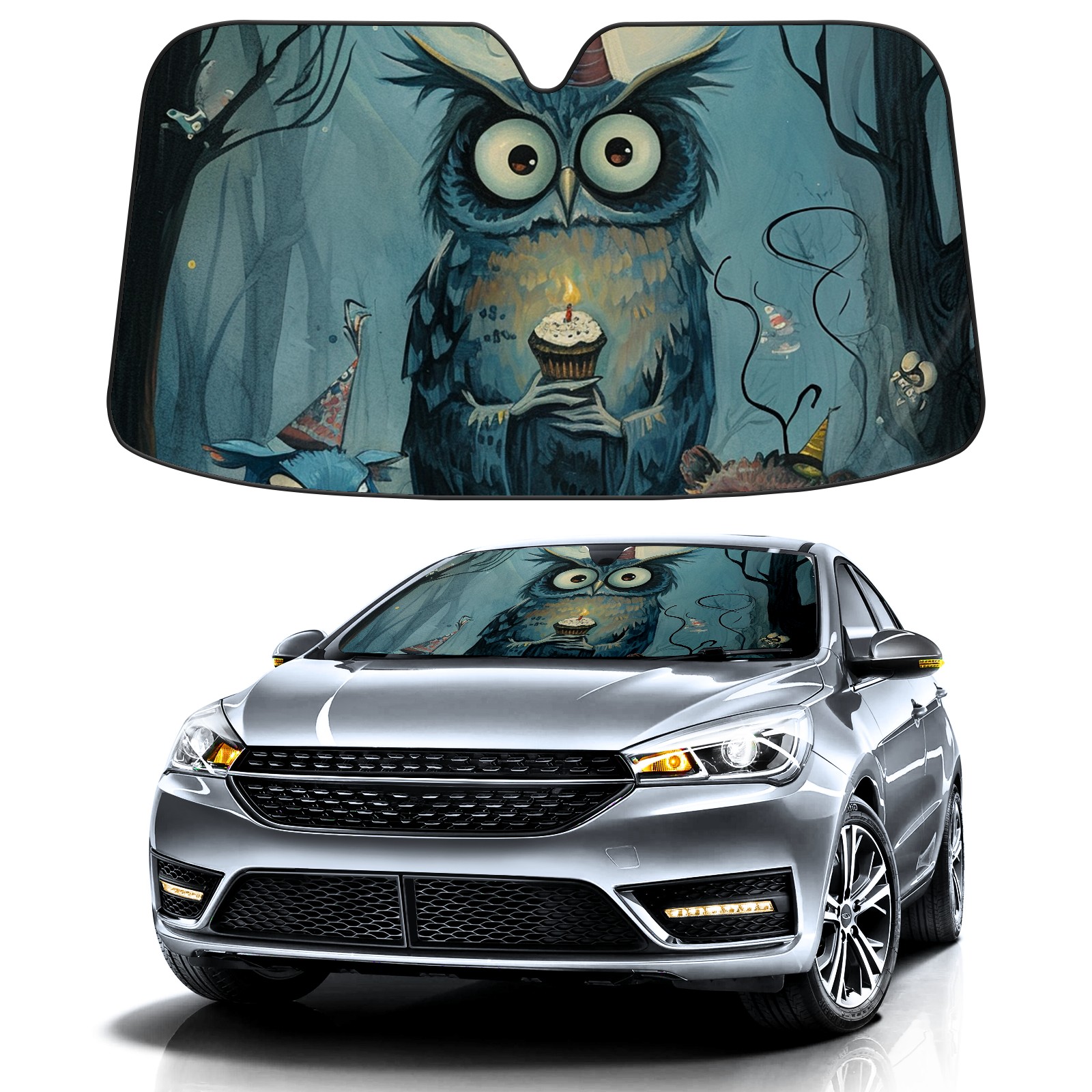 Car Windshield Sun Shade for Front Window Owl Foldable Vehicle Windshield Car Sun Visor Covers Automotive Window Protector Car Privacy Sun Blocker