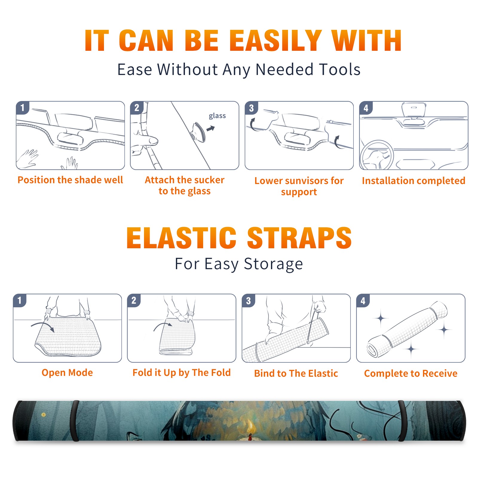 • </b>ZXIVGOQFR Foldable Premium Car Windshield Sunshade is your great solution to reduce your car’s interior temperature dramatically! This is definitely a must-have item for your summer travel! </b> <br> ●</b>Size: 63"L x 33.5"W </b> <br> ●</b>Blocking Uv Rays & Heat Insulation</b><br> Our vehicle sunshade provides effective UV, sun, and summer heat protection .Maintains dashboards by preventing fading and cracking <br> ●</b>Easy-To-Store Folding Design Makes Storage Convenient </b><br> ZXIVGOQFR car sunshades come with removable suction cups and elastic bands that you can install easily and quickly, and the removable suction cups will not leave any marks on your windows when removed. Within seconds, windshield visor can be installed and removed. When not in use,the front windshield can be easily and effectively placed on the door pocket or the dashboard, which is beautiful and does not take up space in the car.<br> <br> </b>PUT UP A 'PROTECTIVE UMBRELLA' FOR YOUR BELOVED CAR!</b>
